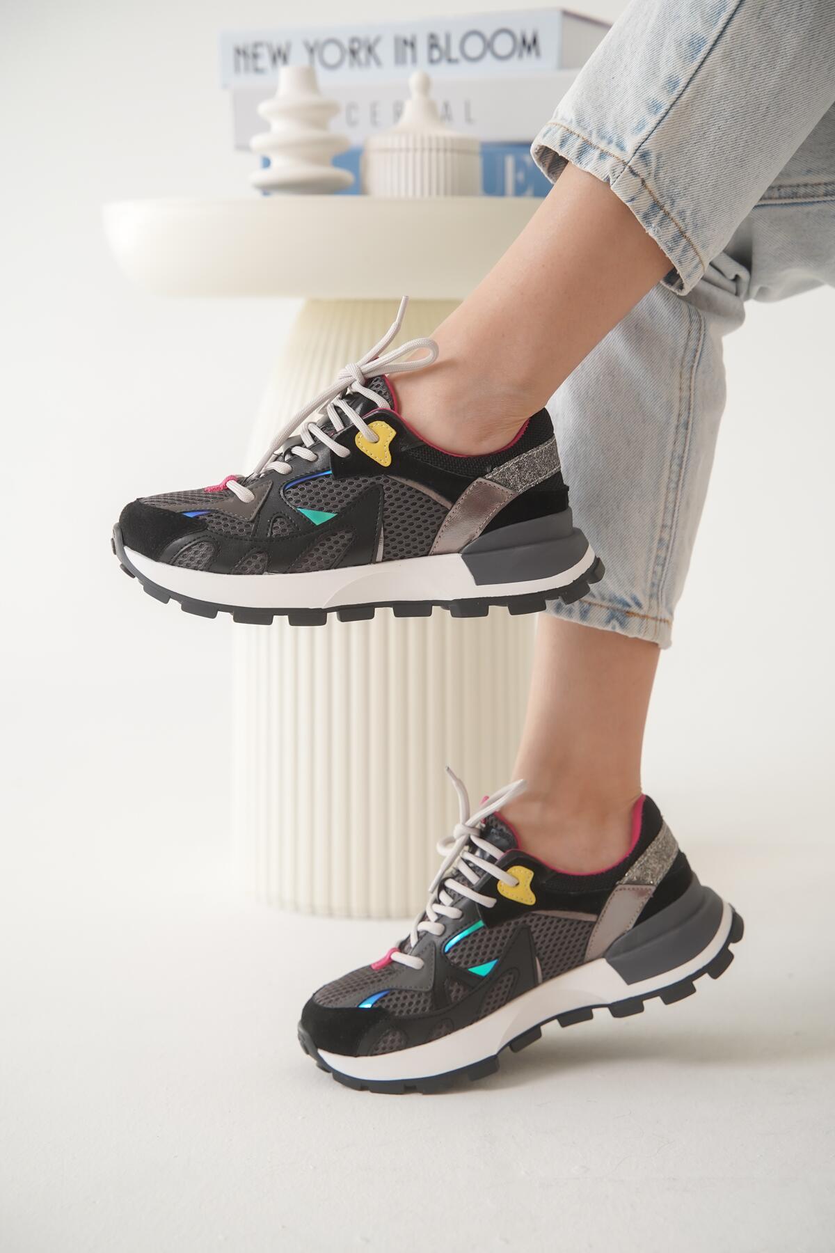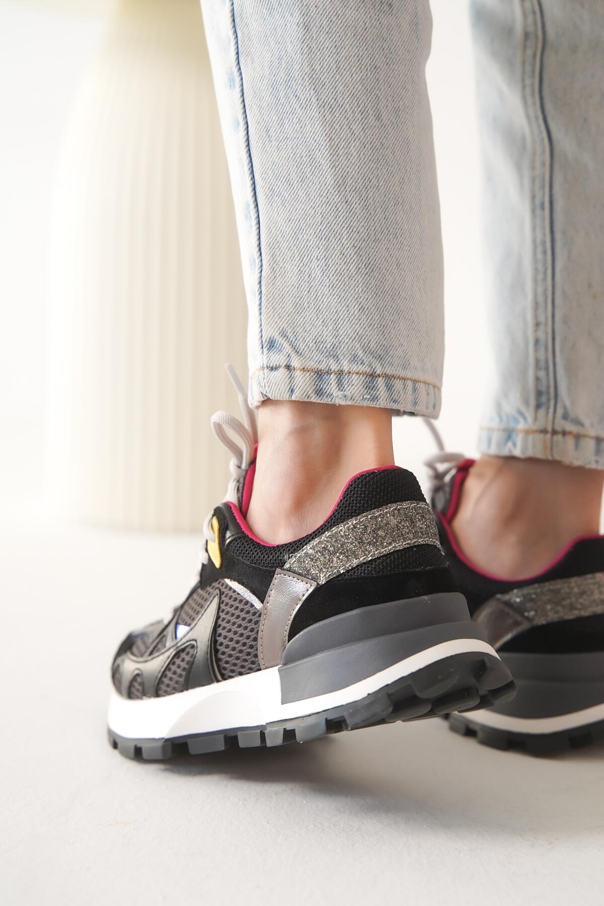 Kadın Bağcıklı Fileli Tasarım Taban Sneaker Orion Siyah