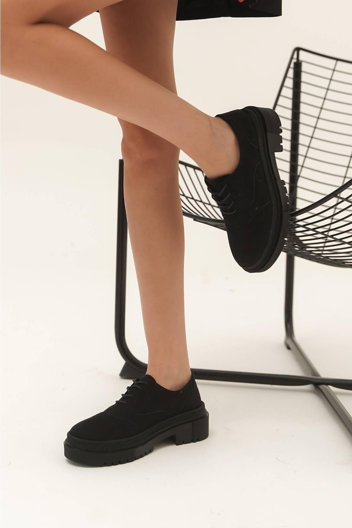 Kadın Bağcıklı Tasarım Loafer Konie Siyah Süet