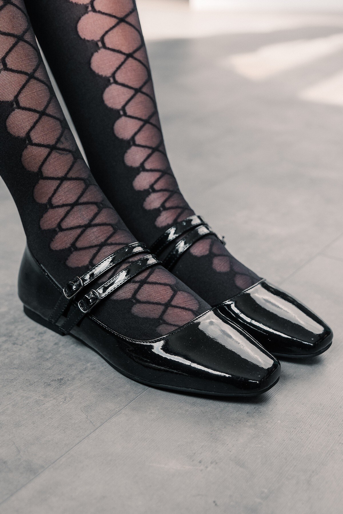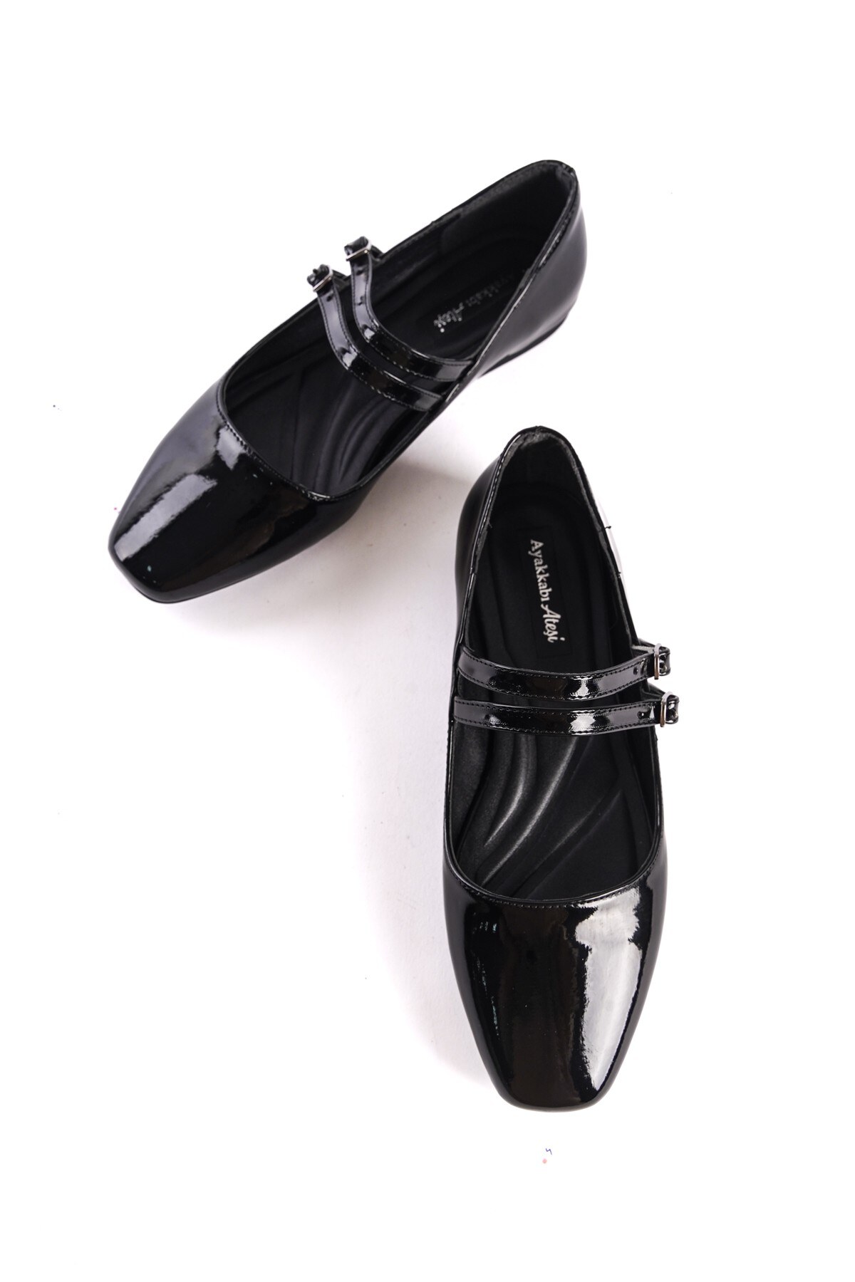 Kadın Çift Bantlı Düz Babet Almina Siyah