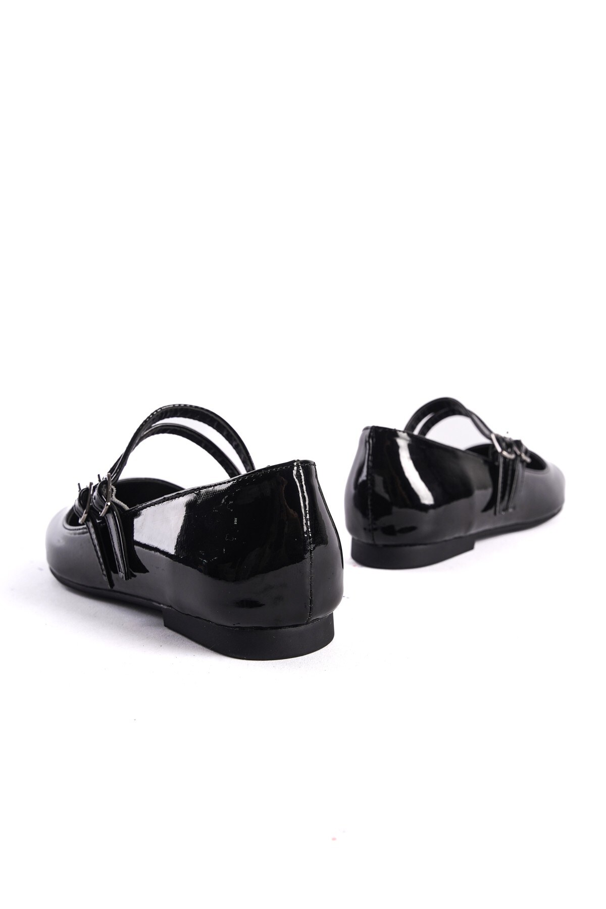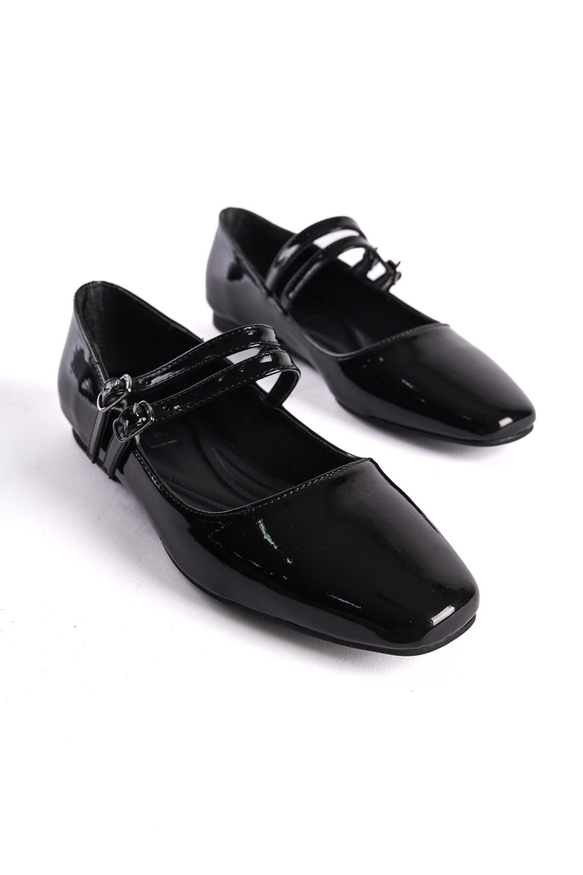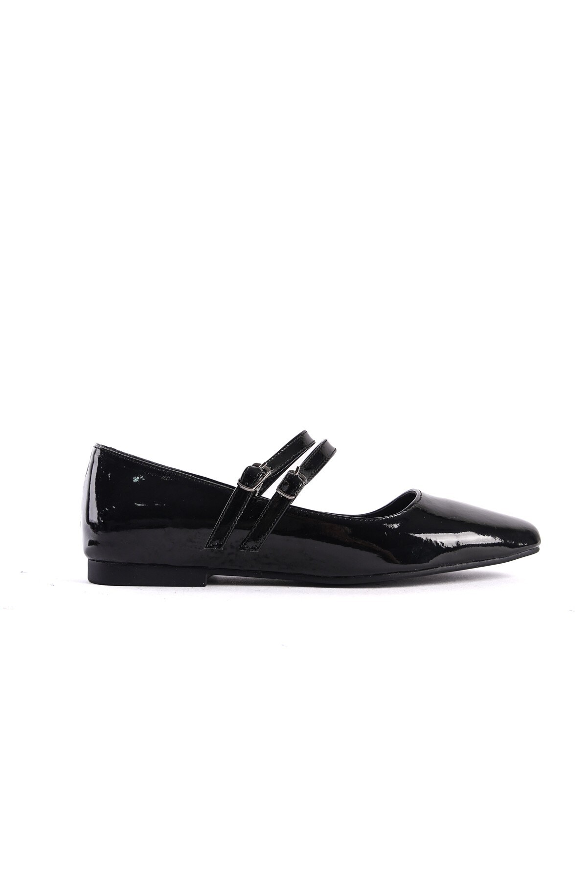 Kadın Çift Bantlı Düz Babet Almina Siyah