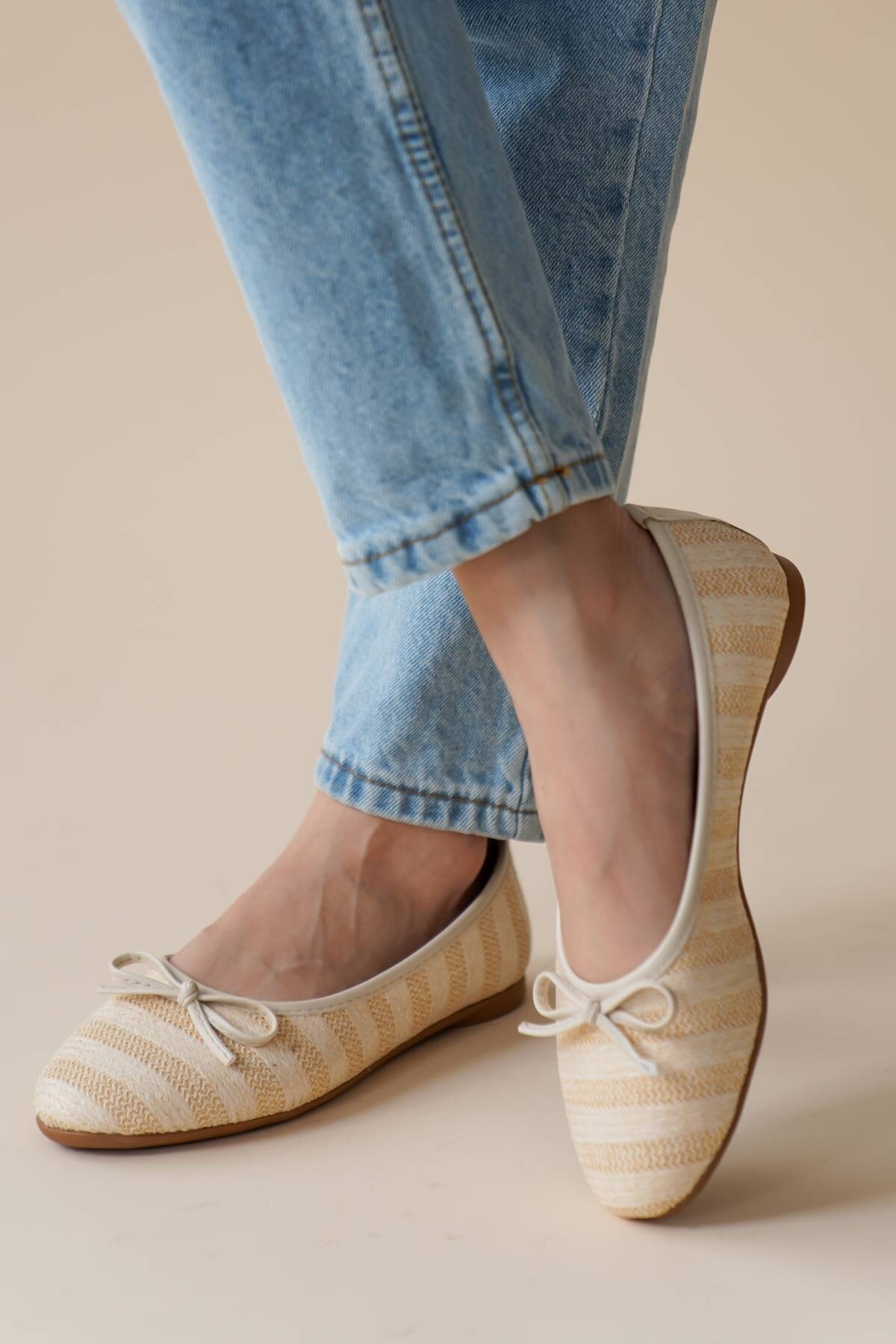 Kadın Düz Hasır Babet Giorna Bej