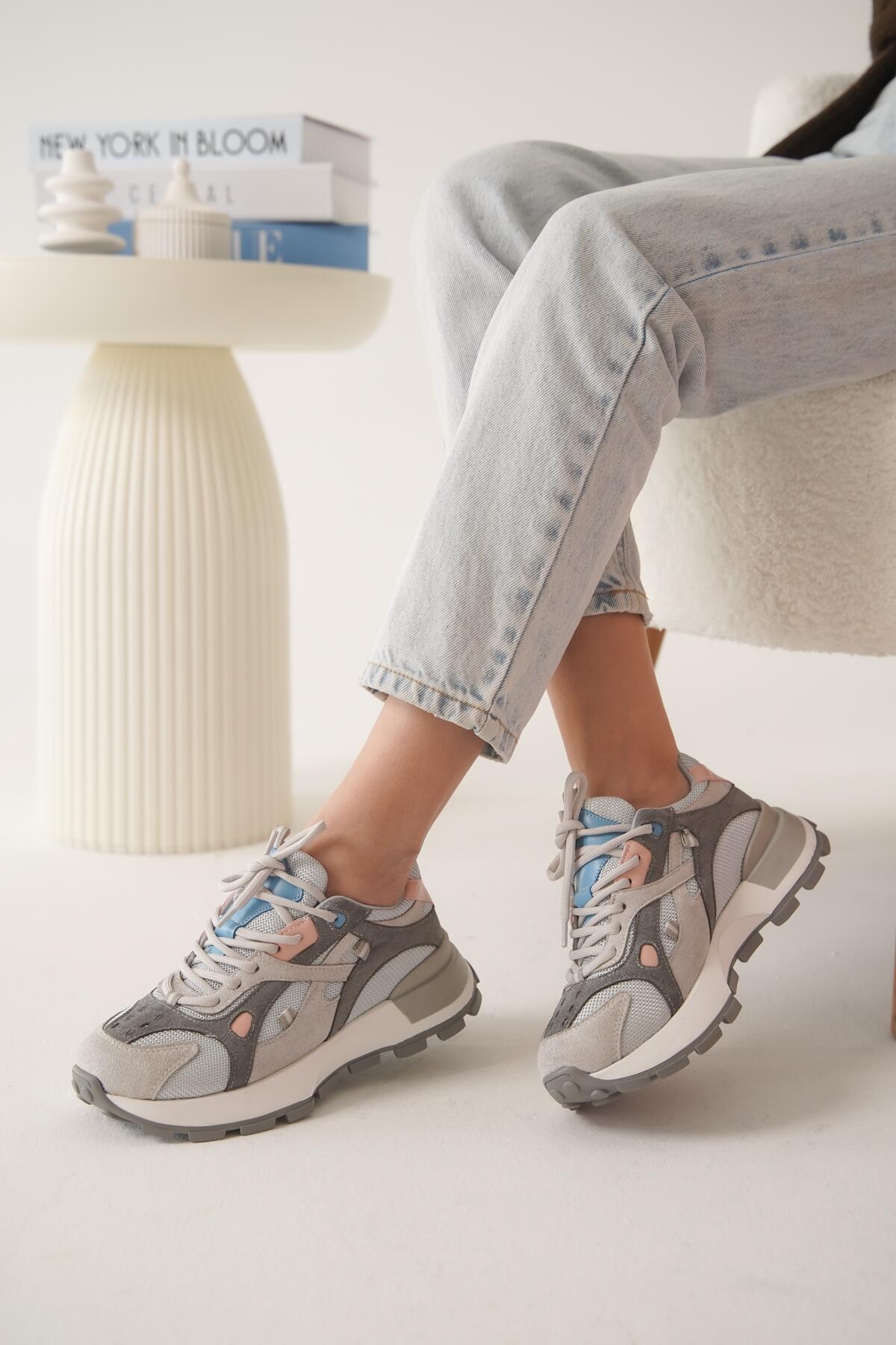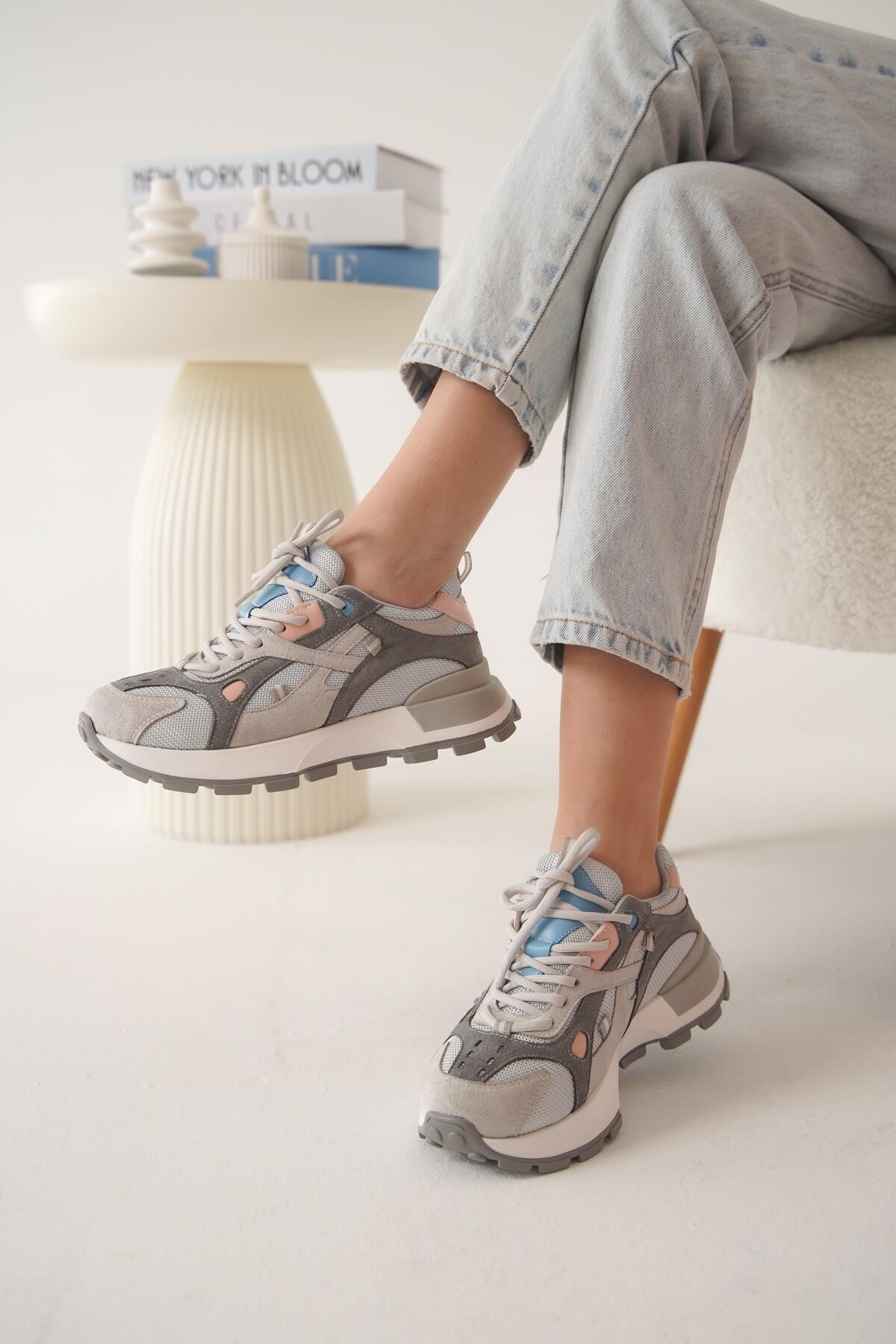 Kadın Fileli Kalın Taban Sneaker Crio Gri