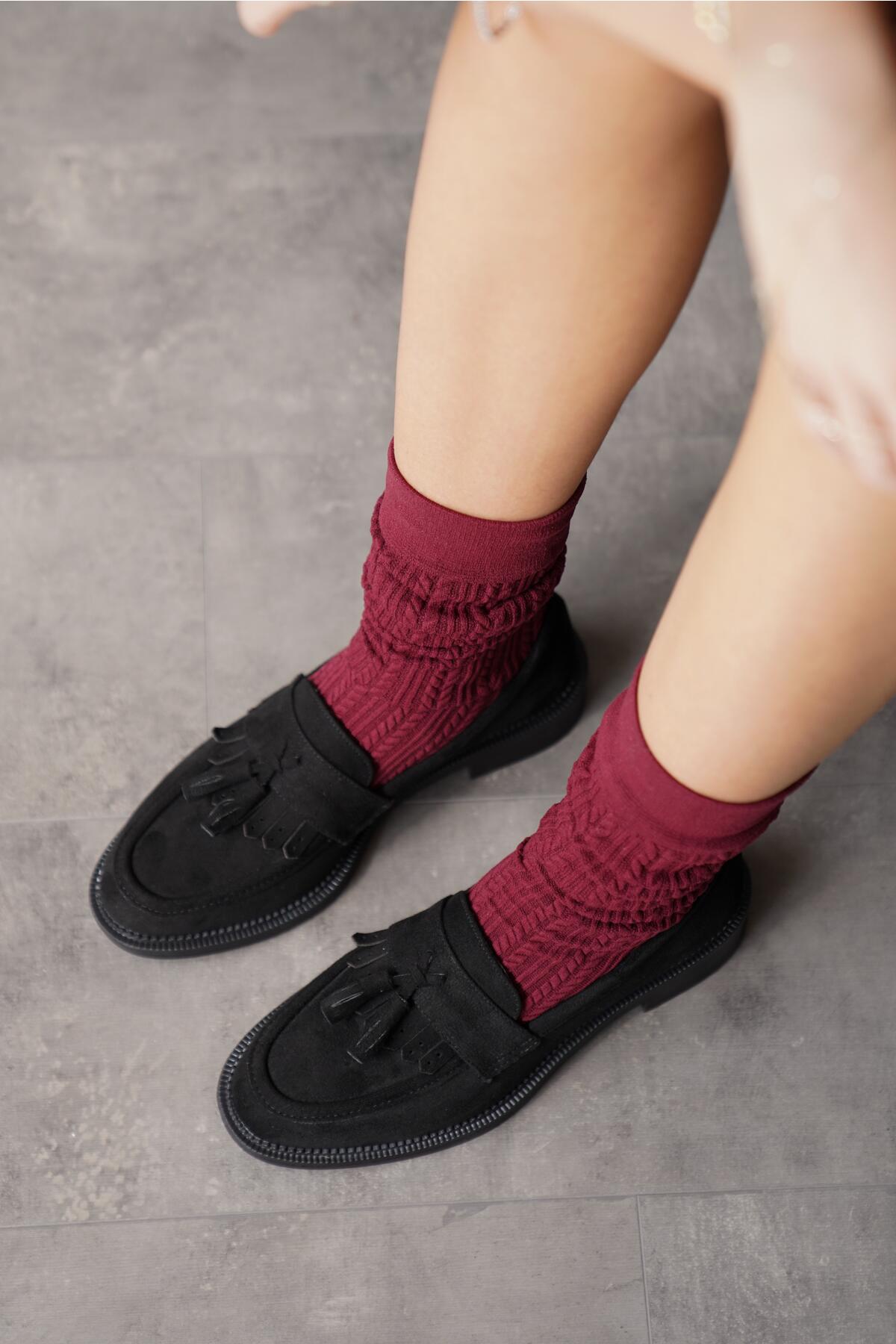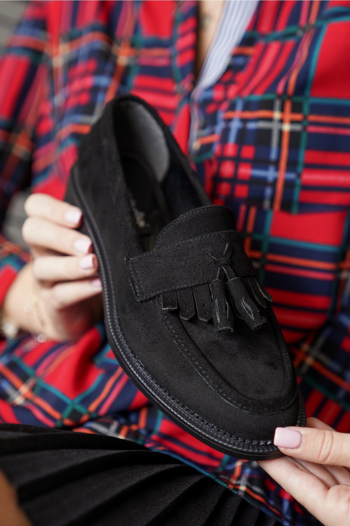 Kadın Püskül Tokalı Loafer Günlük Ayakkabı Livora Siyah Süet