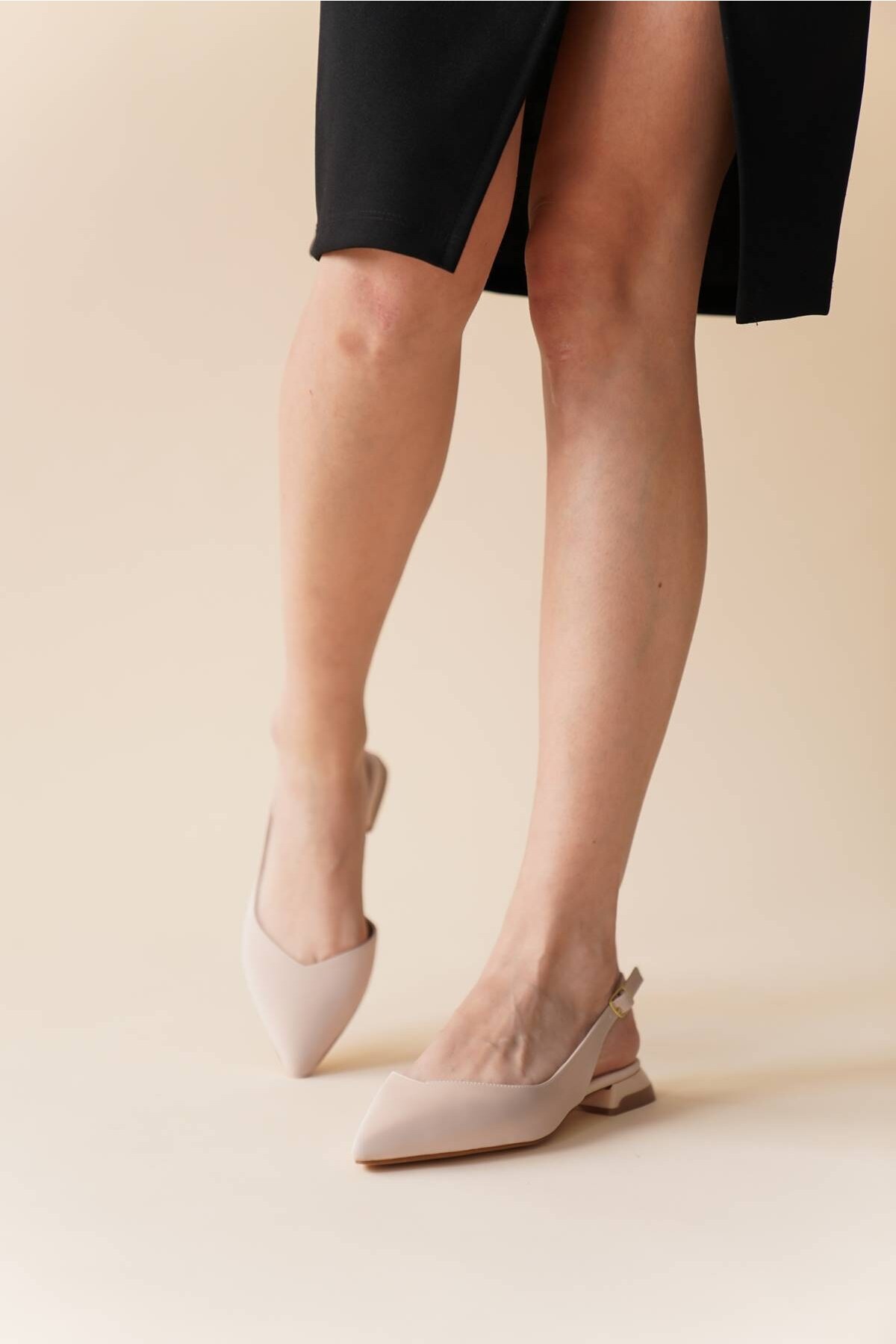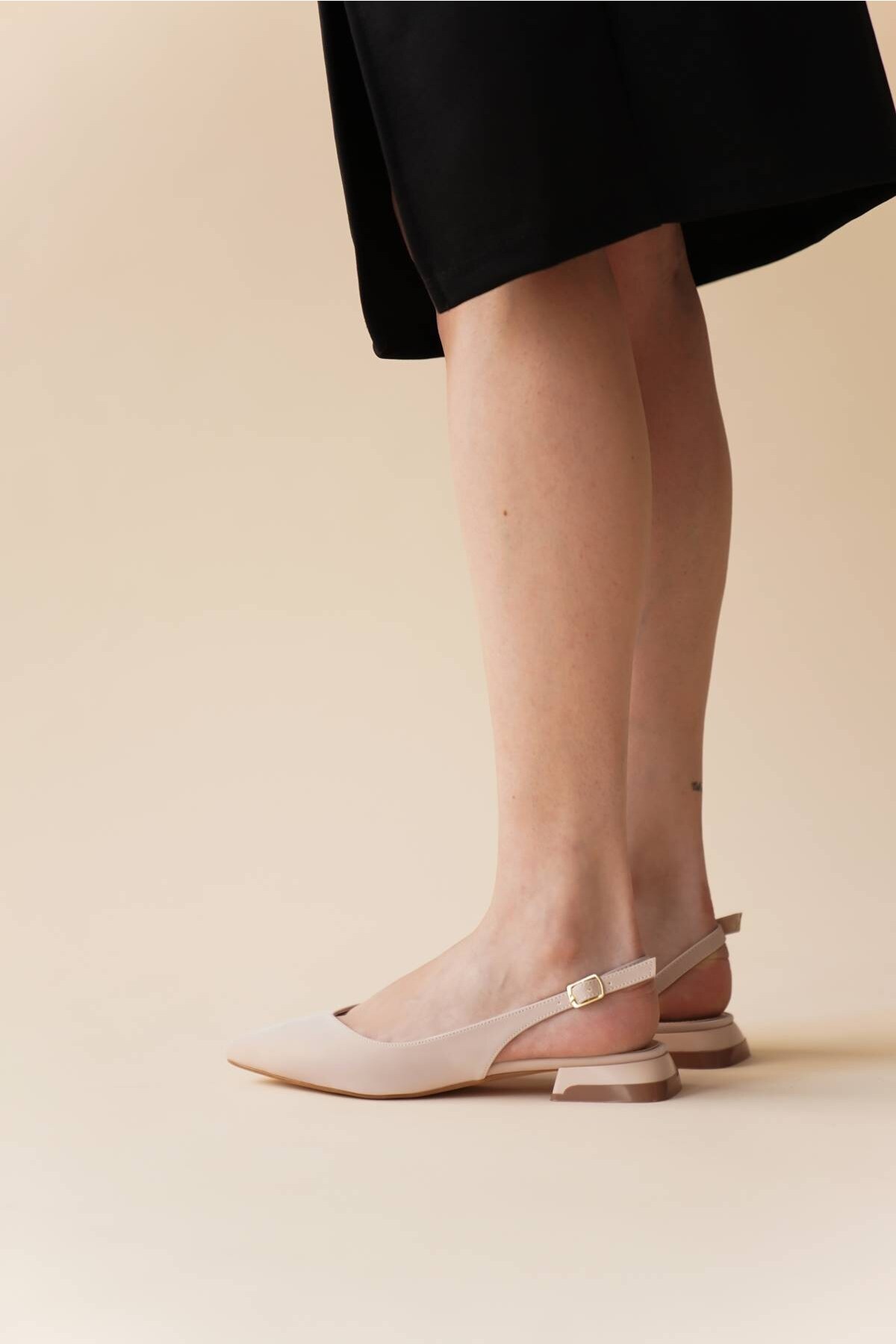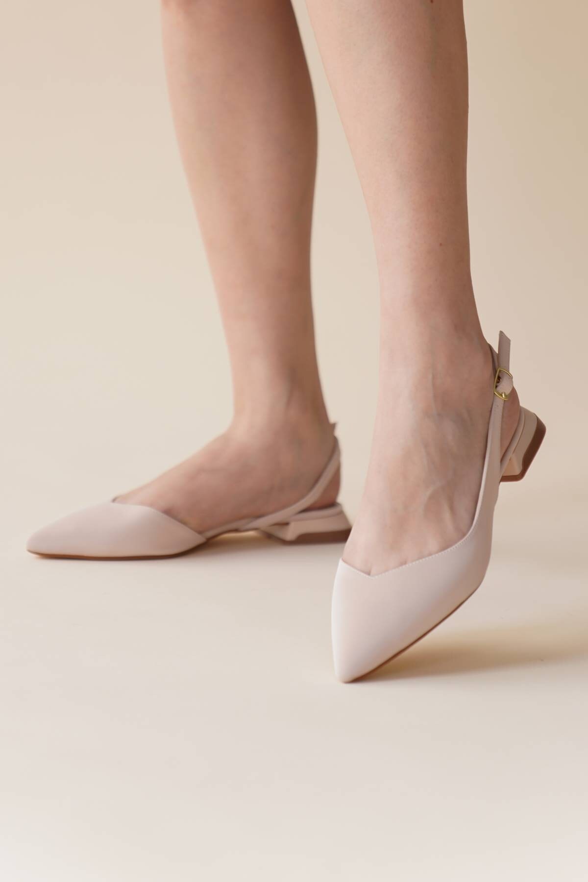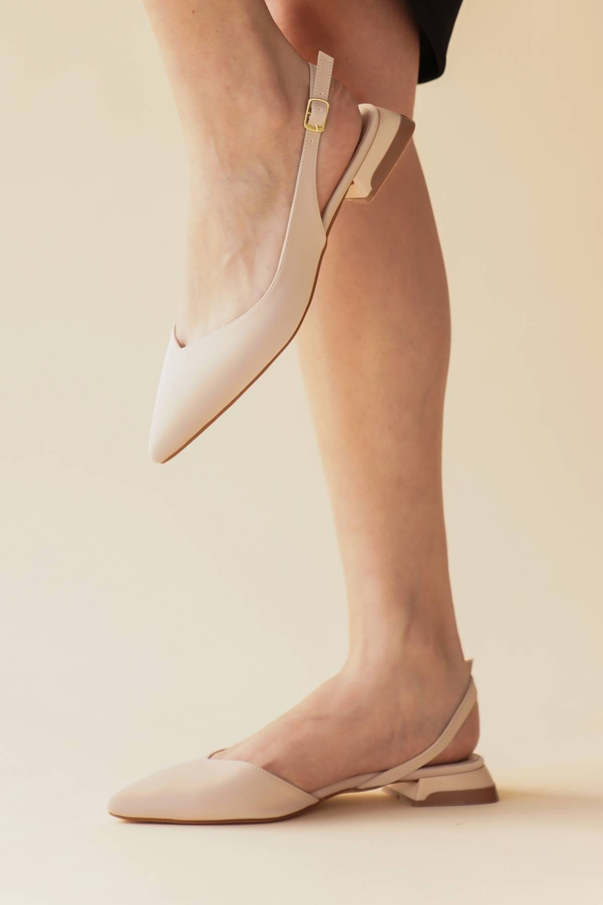 Kadın Sivri Burun Kısa Topuklu Babet Viyana Bej