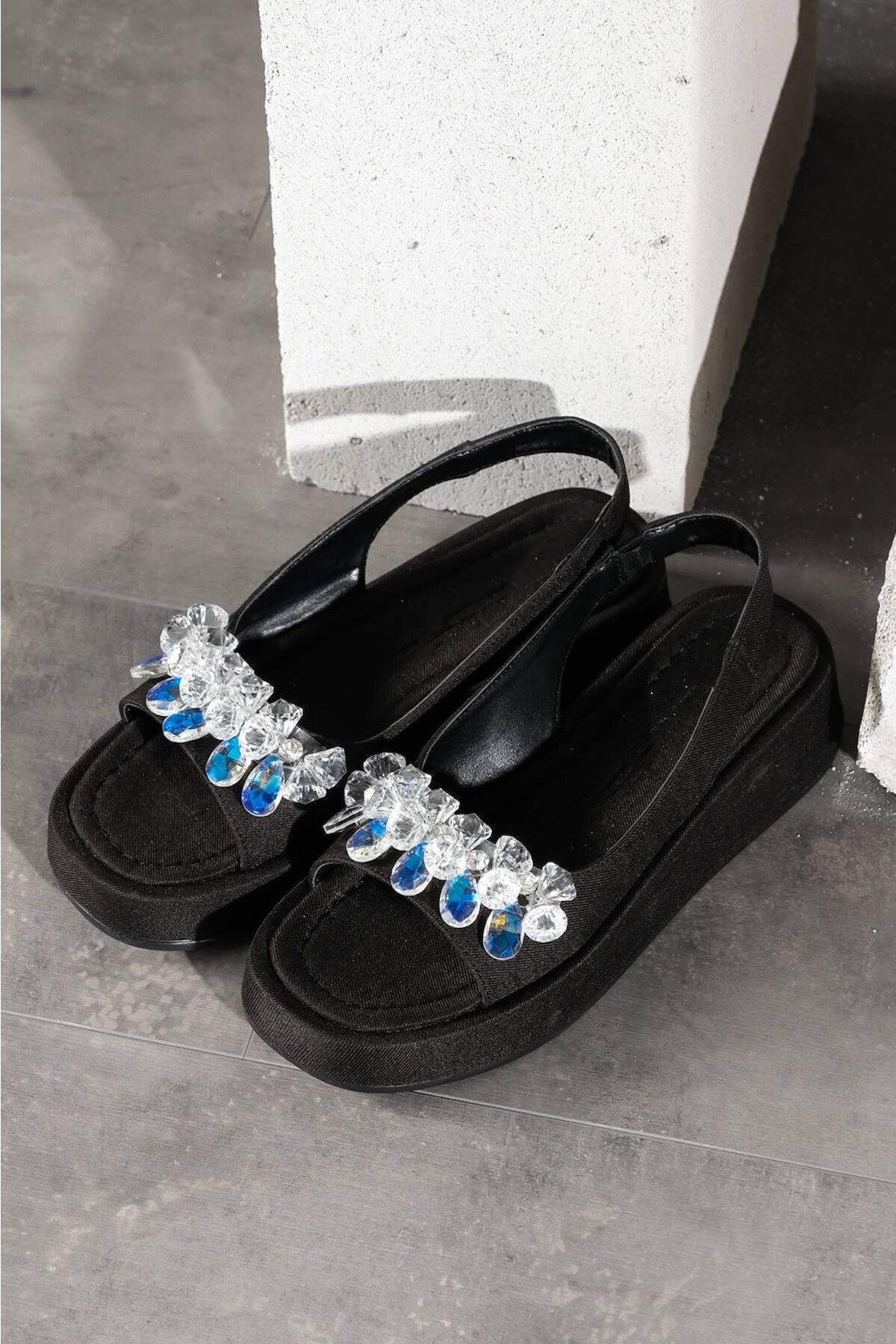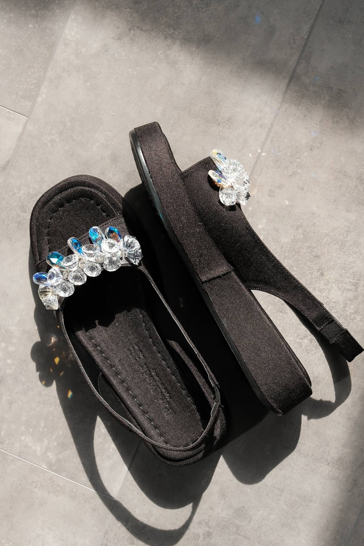 Kadın Taşlı Yumuşak Taban Sandalet Siyah