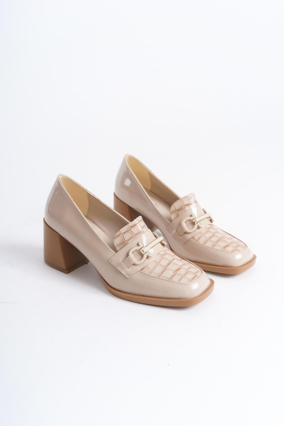 Kadın Toka Detay Kalın Topuklu Loafer Loarne Bej