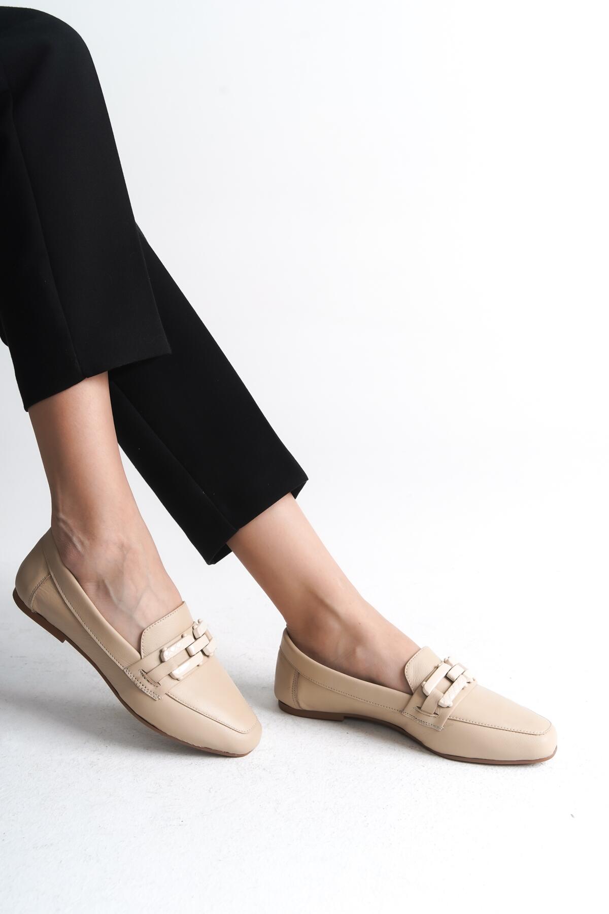 Kadın Tokalı Hakiki Deri Babet Roina Bej