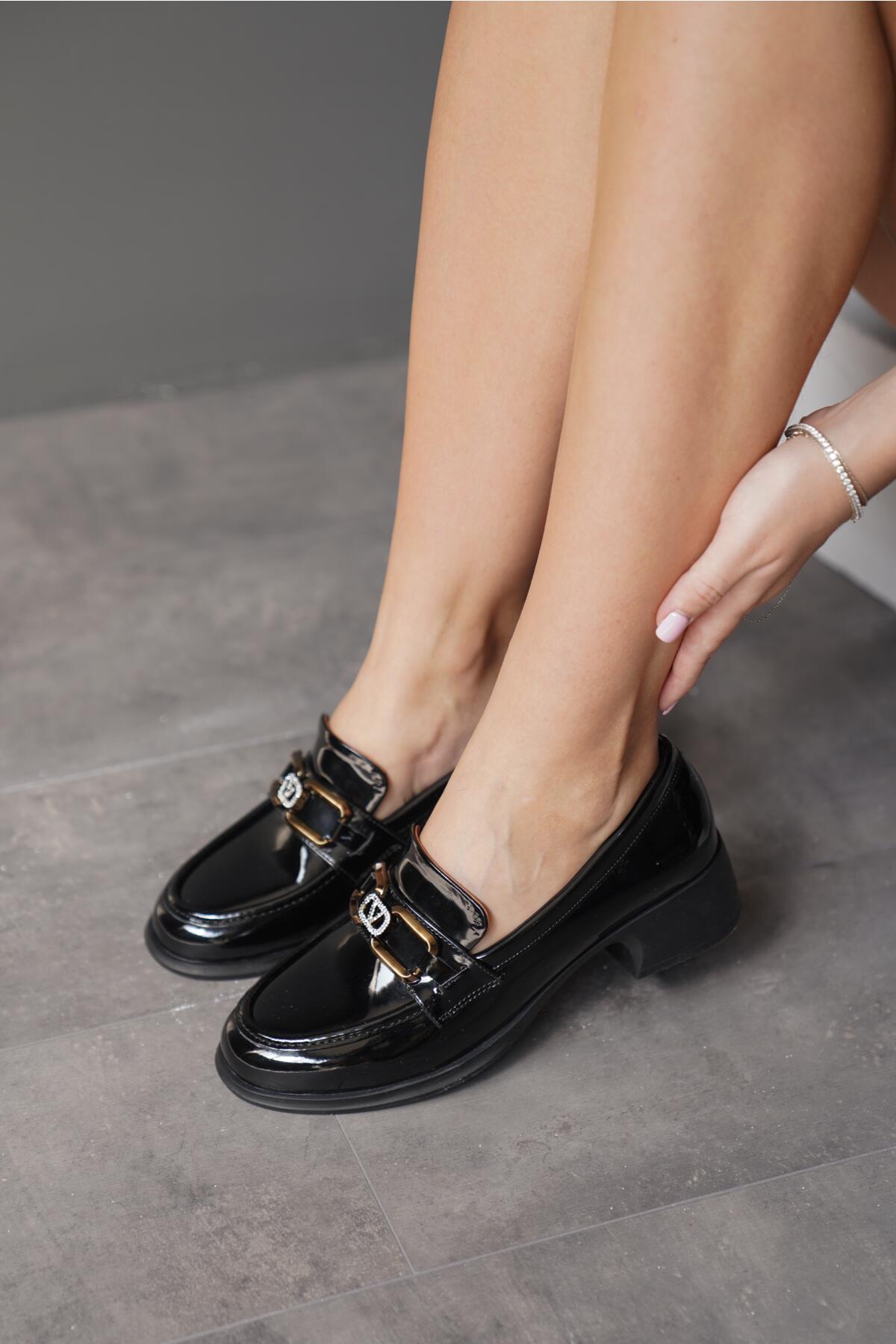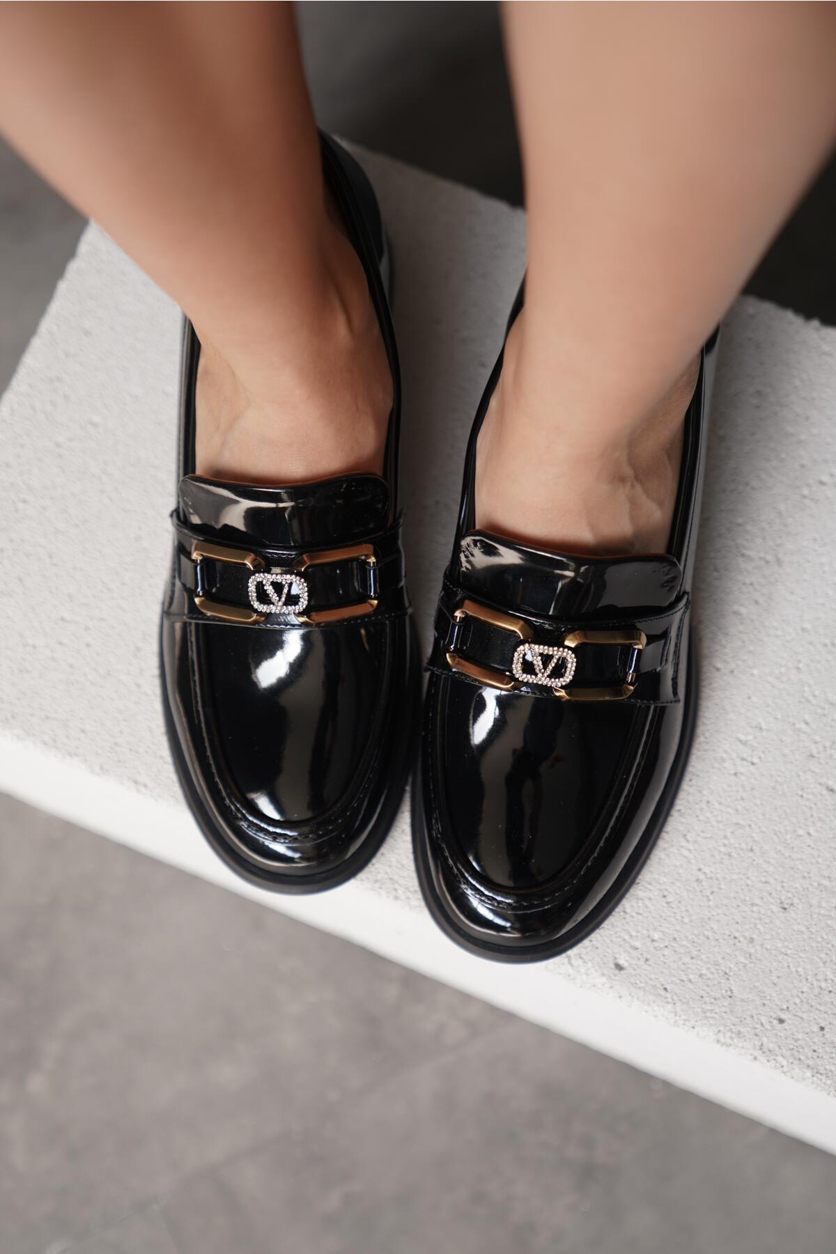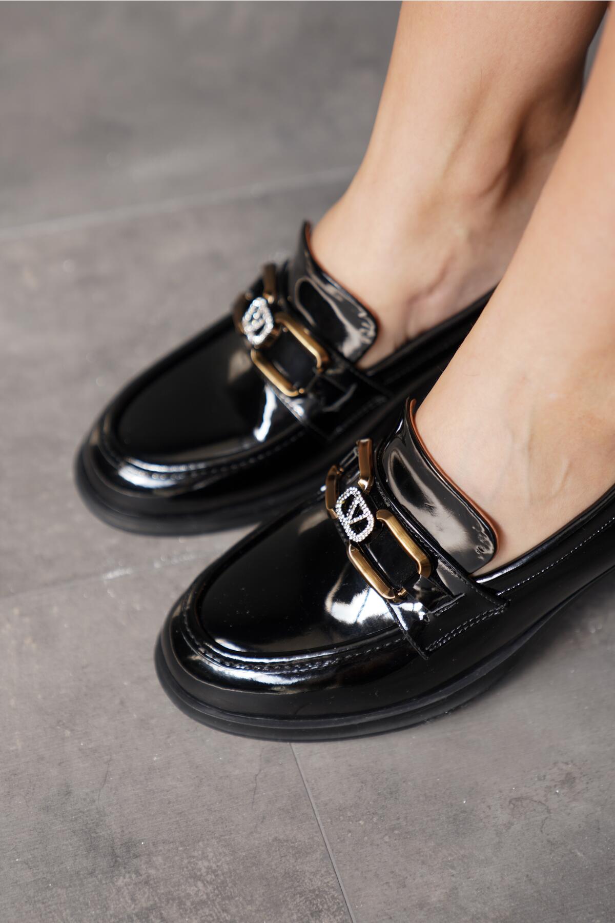 Kadın V Toka Loafer Günlük Ayakkabı Lorance Siyah Rugan