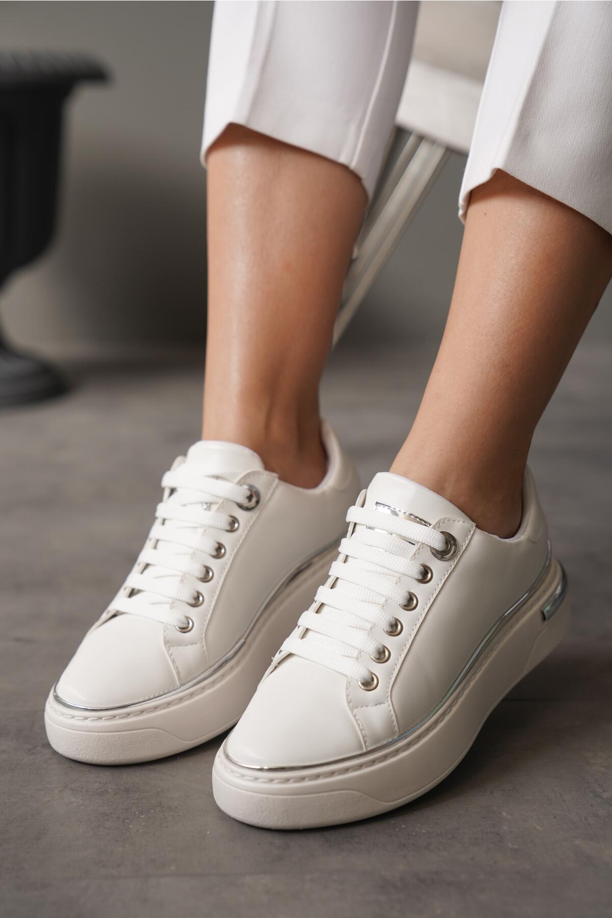 Kadın Yumuşak Taban Bağcıklı Sneaker Ramza Beyaz