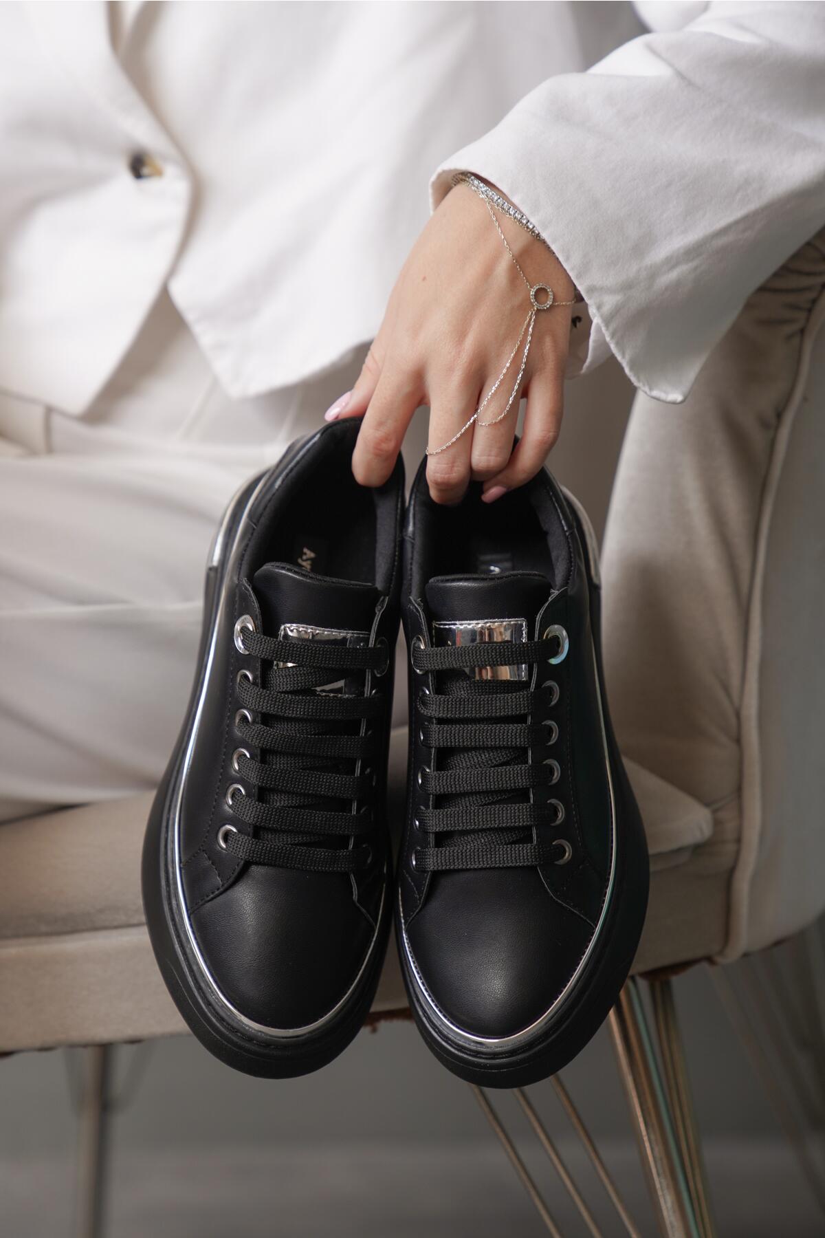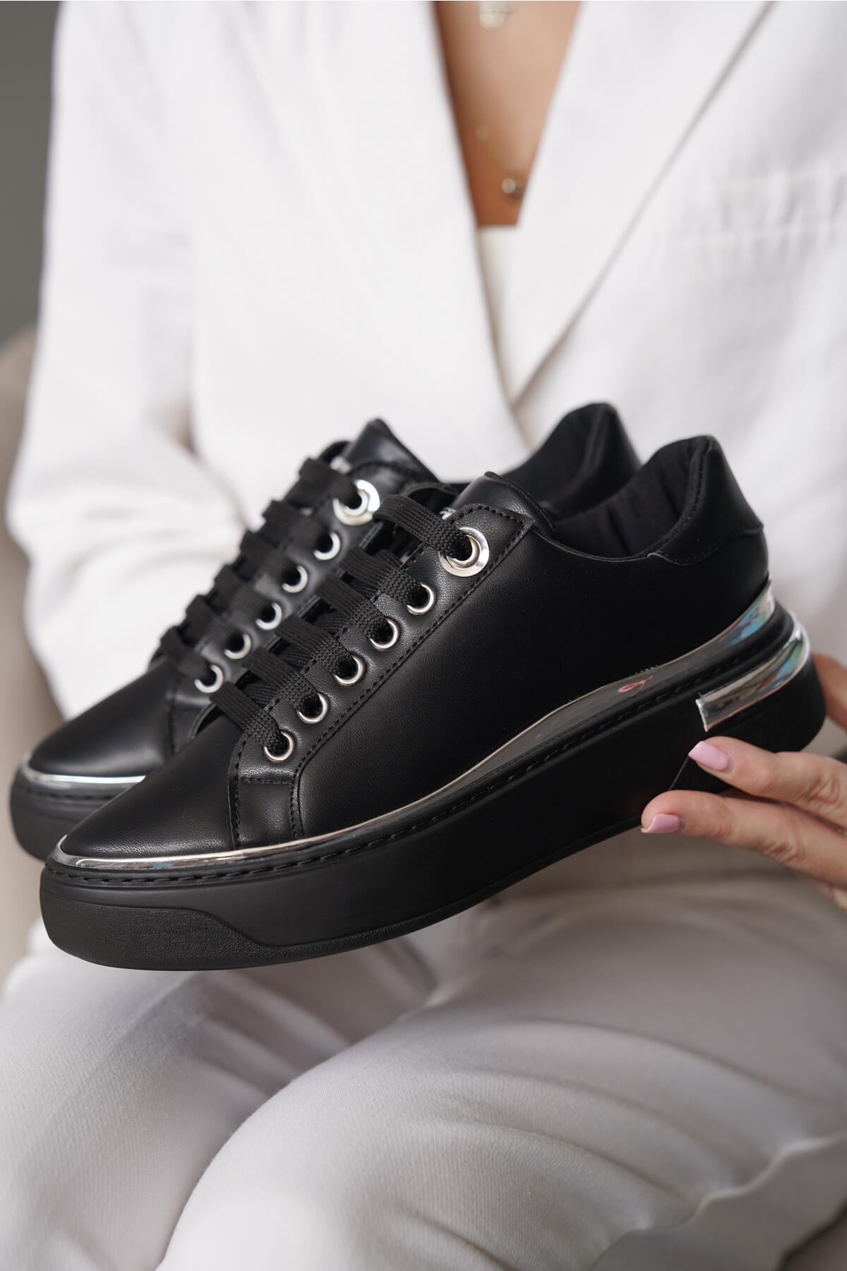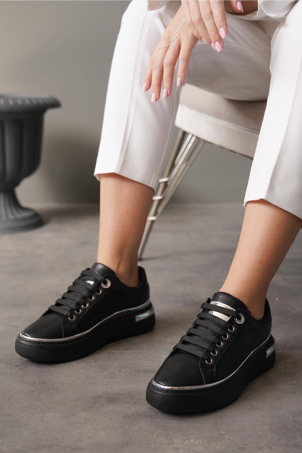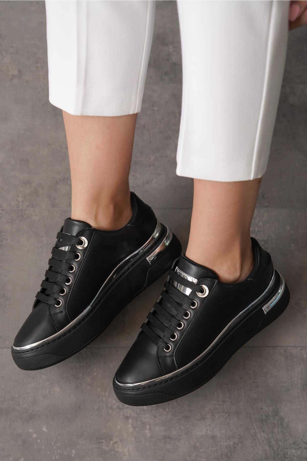 Kadın Yumuşak Taban Bağcıklı Sneaker Ramza Siyah