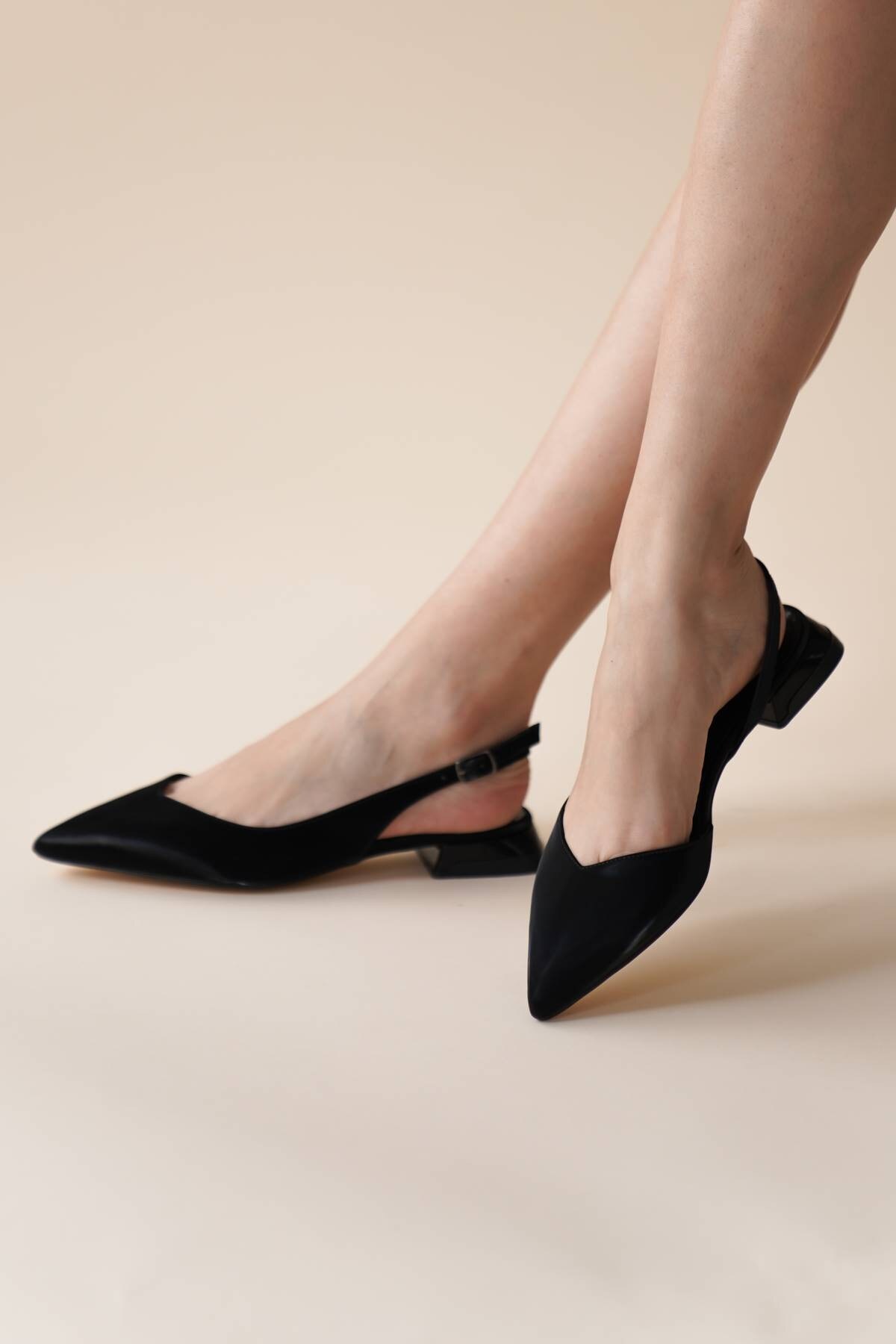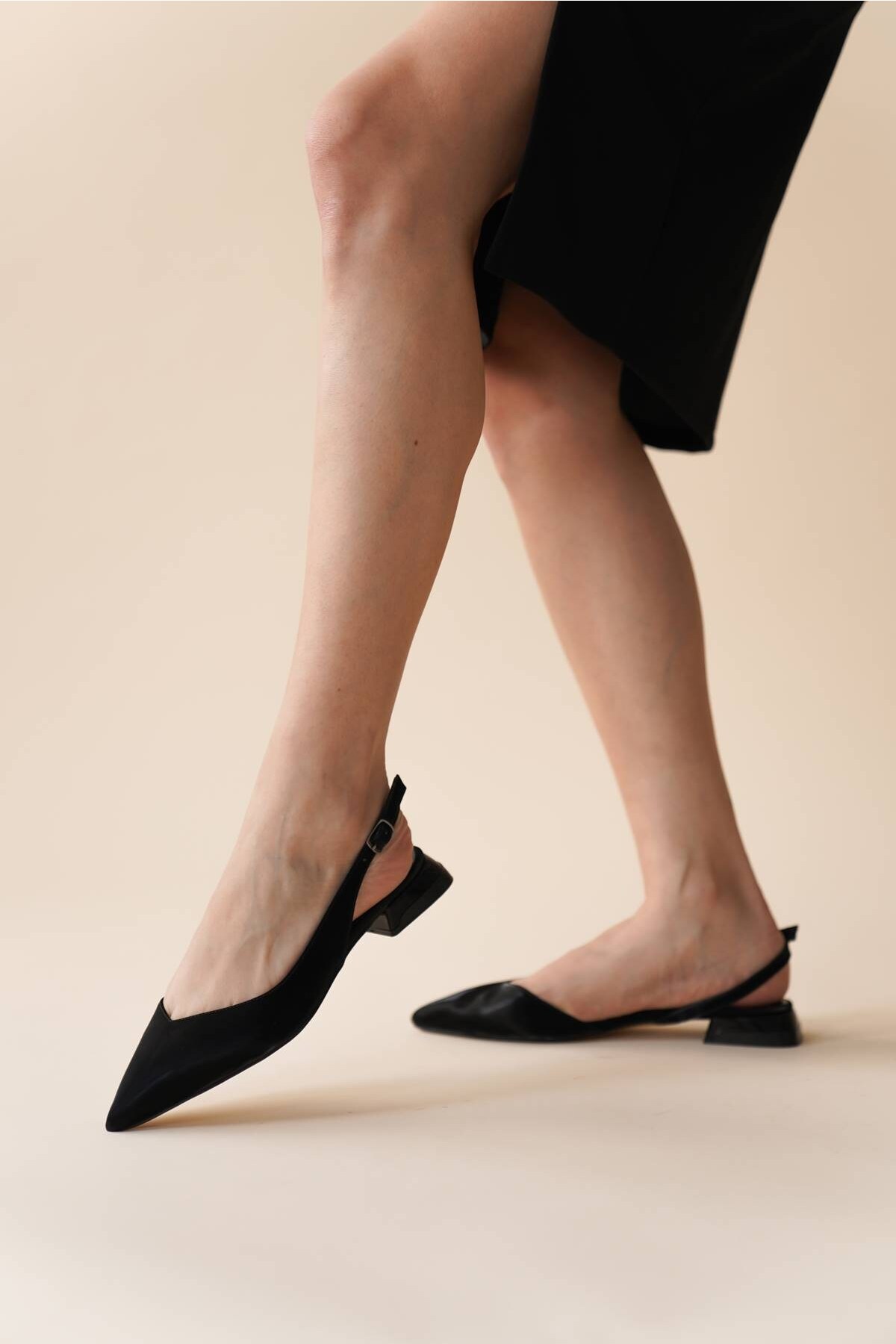 Siyah Saten İçten Lastikli Kadın Kısa Topuklu Ayakkabı Viena Siyah Saten