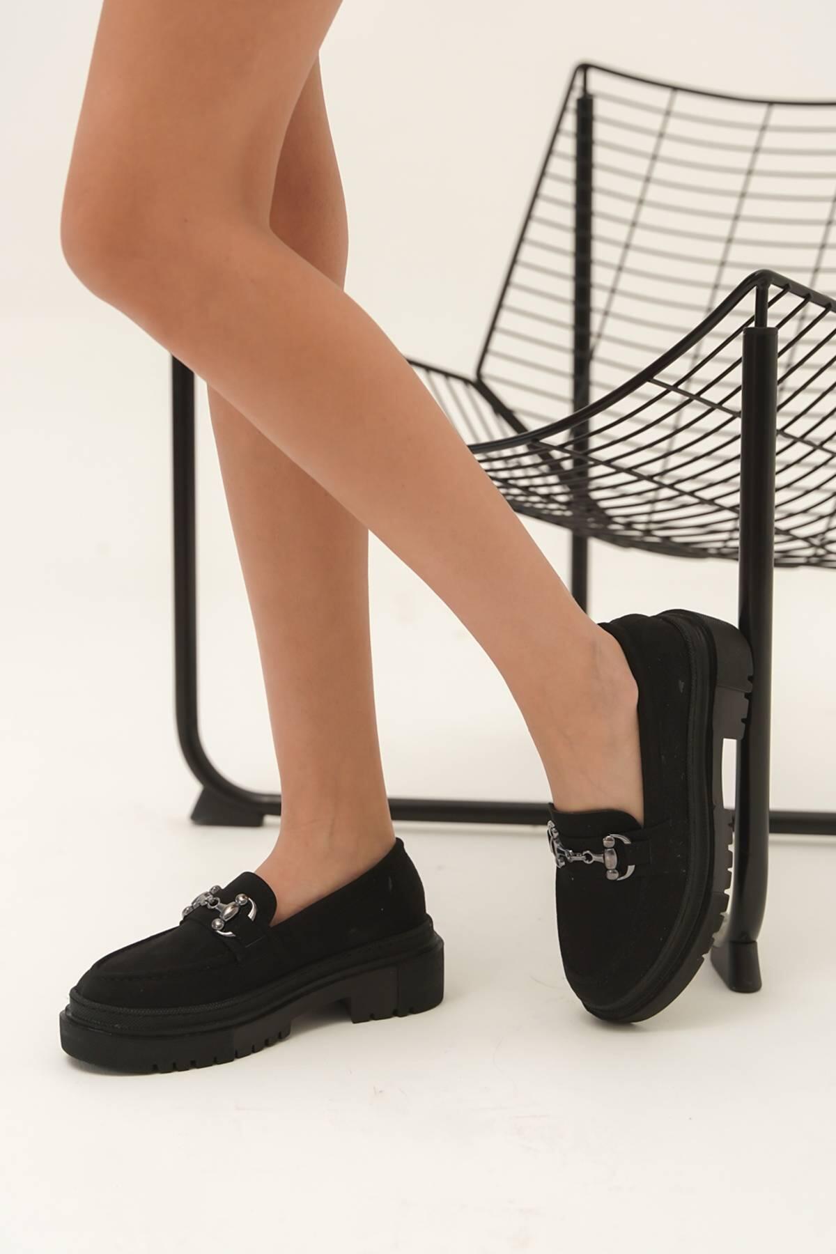 Kadın Toka Detaylı Loafer Clare Siyah Süet