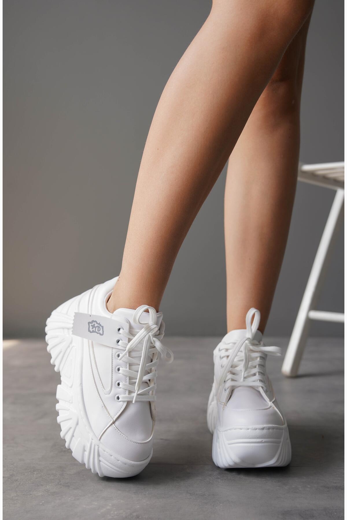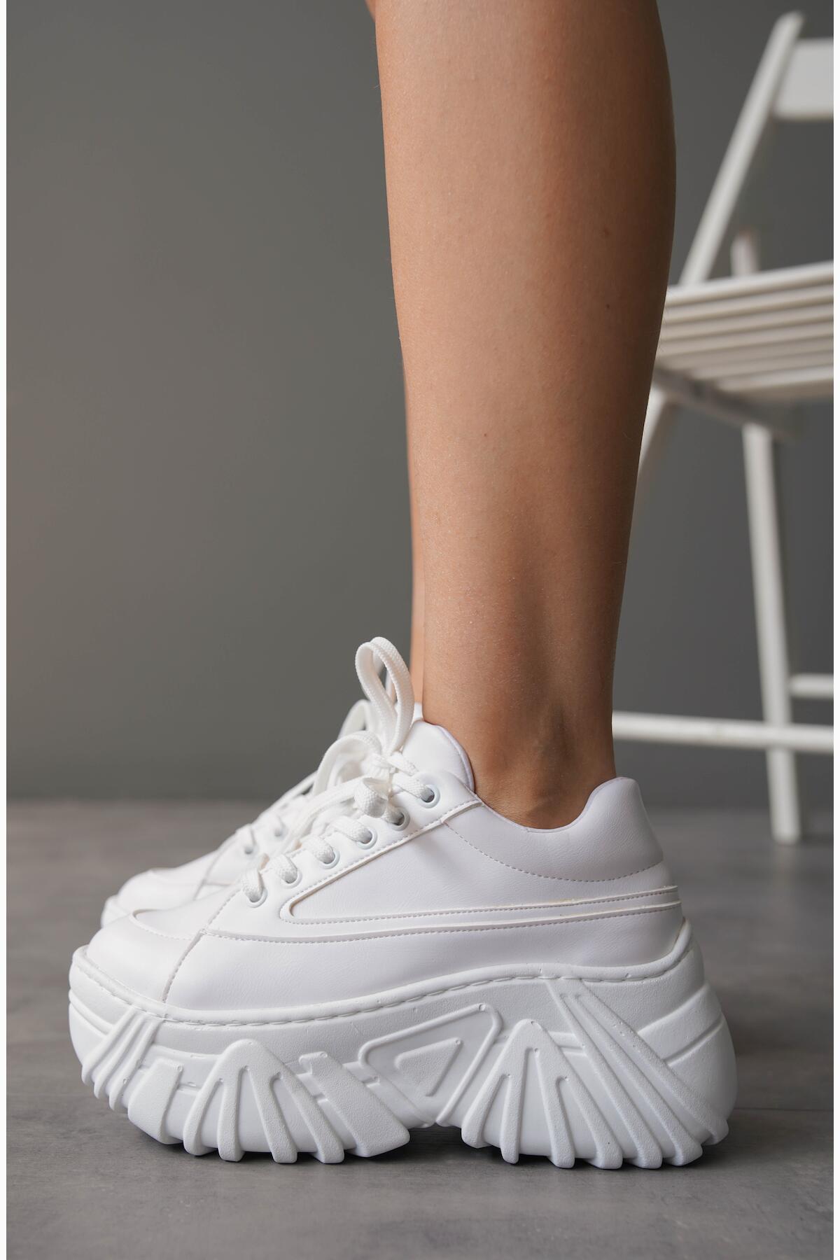 Kadın Kalın Taban Bağcıklı Günlük Ayakkabı Lili Beyaz
