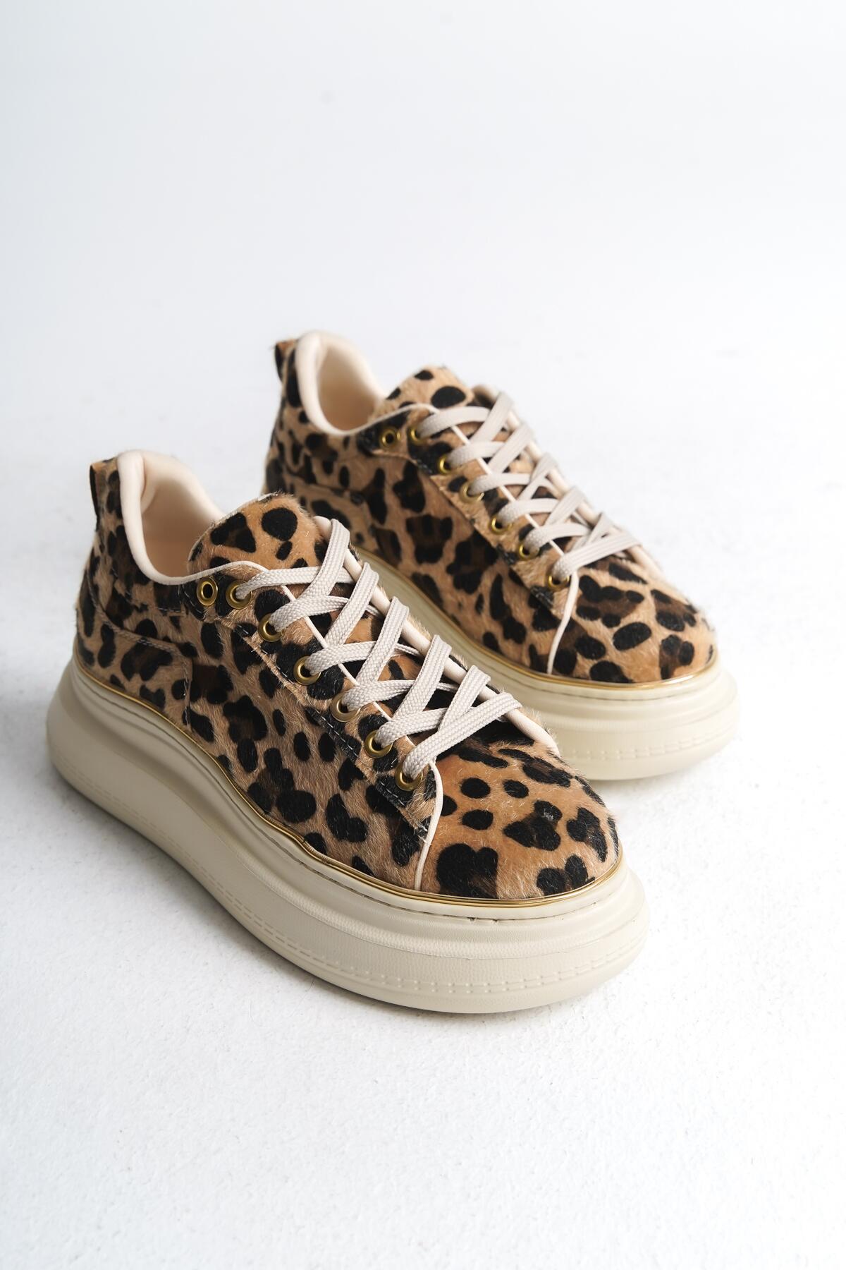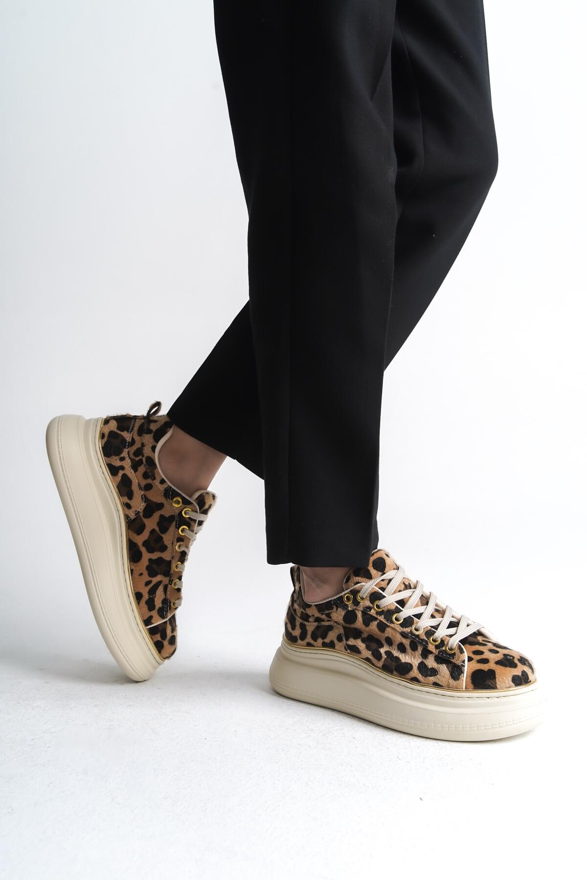 Kadın Kalın Taban Bağcıklı Spor Ayakkabı Cona Leopar