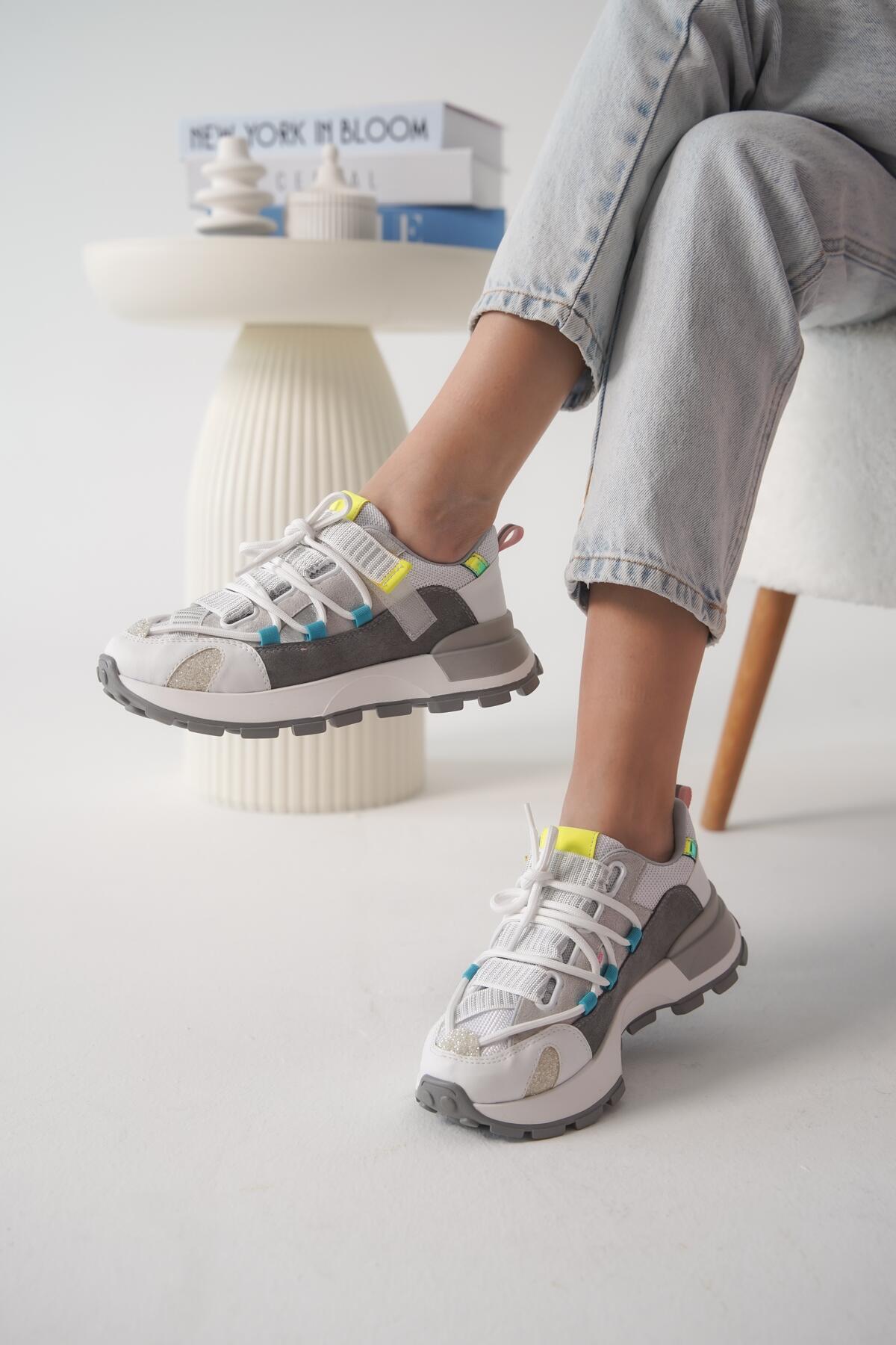 Kadın Tasarım Taban Renkli Sneaker Snena Beyaz