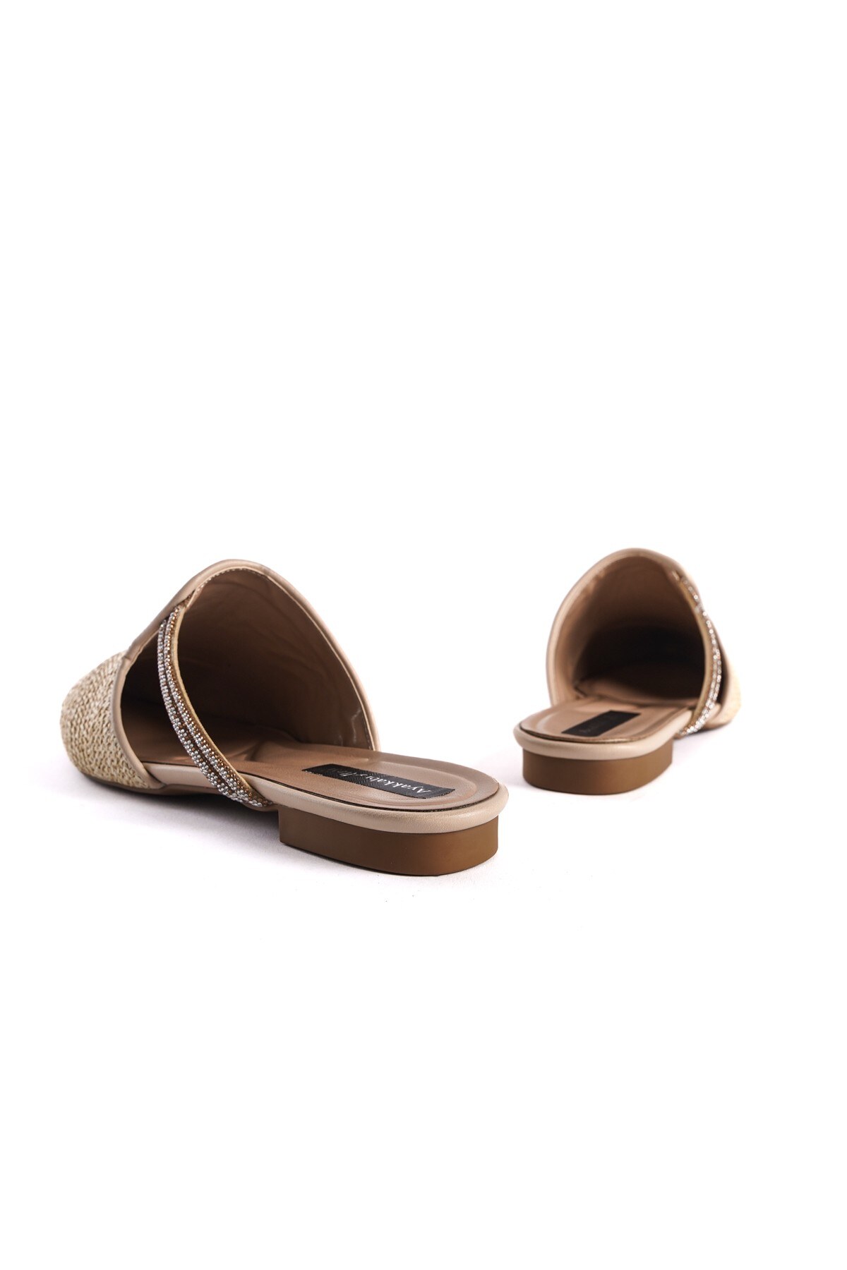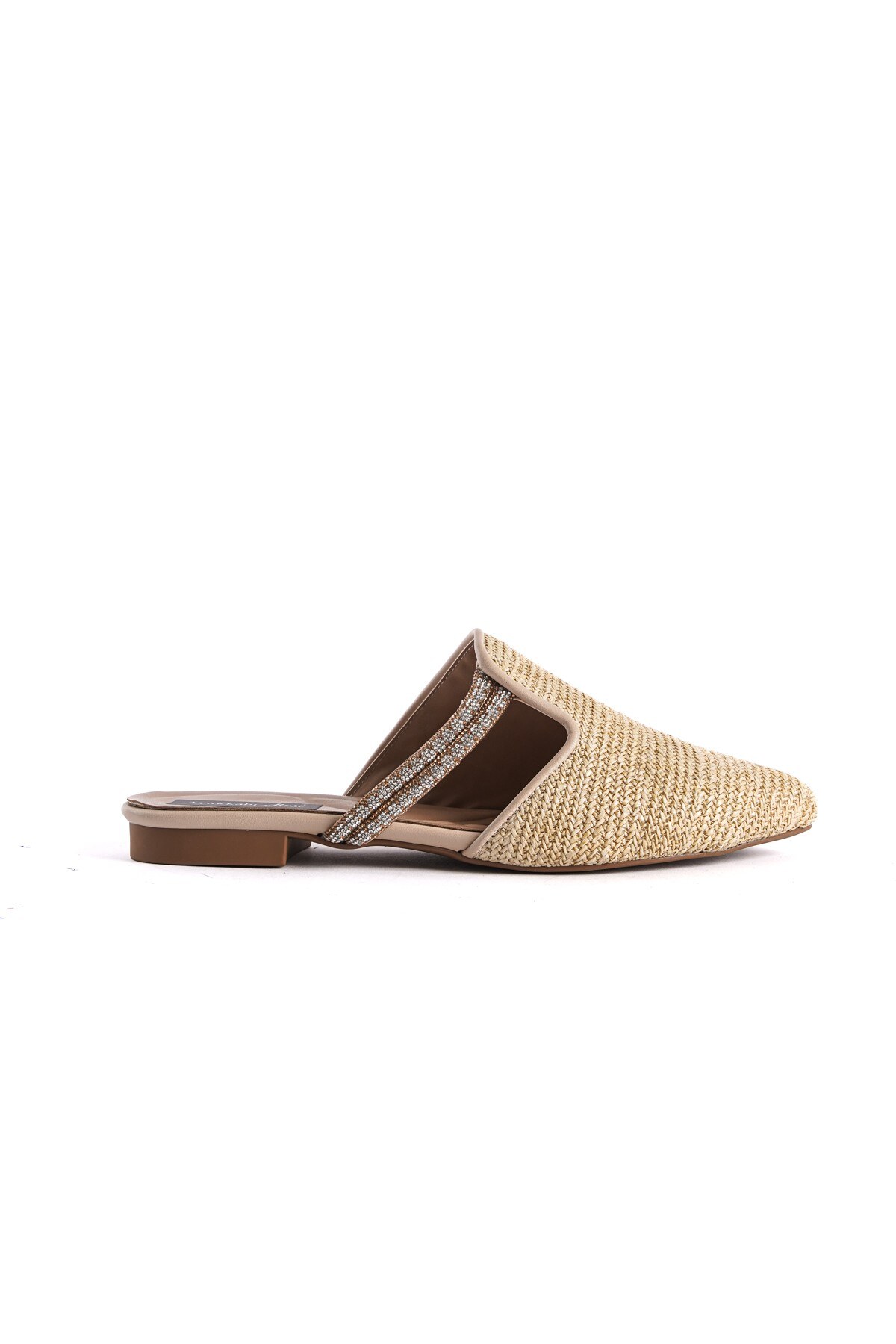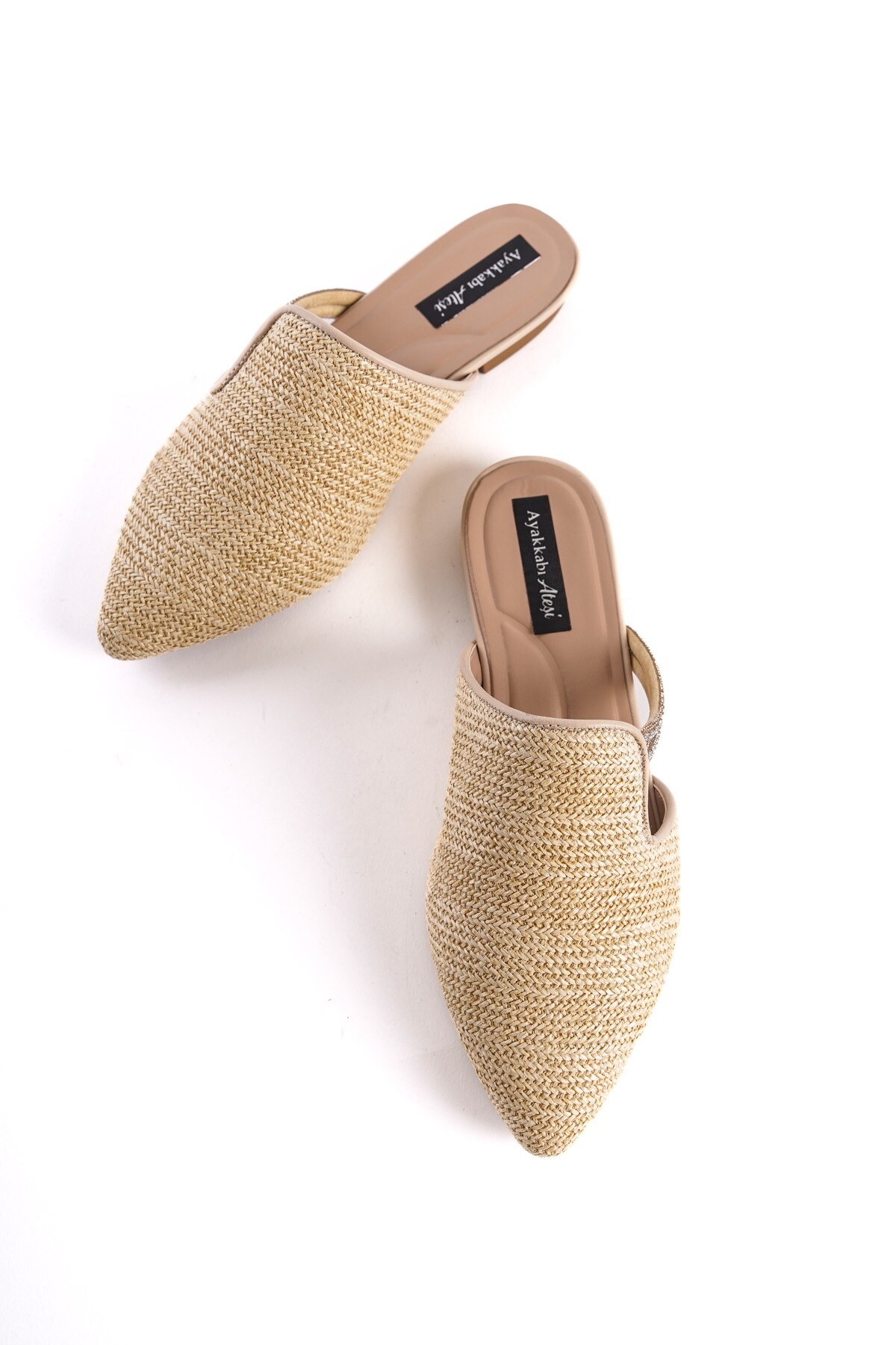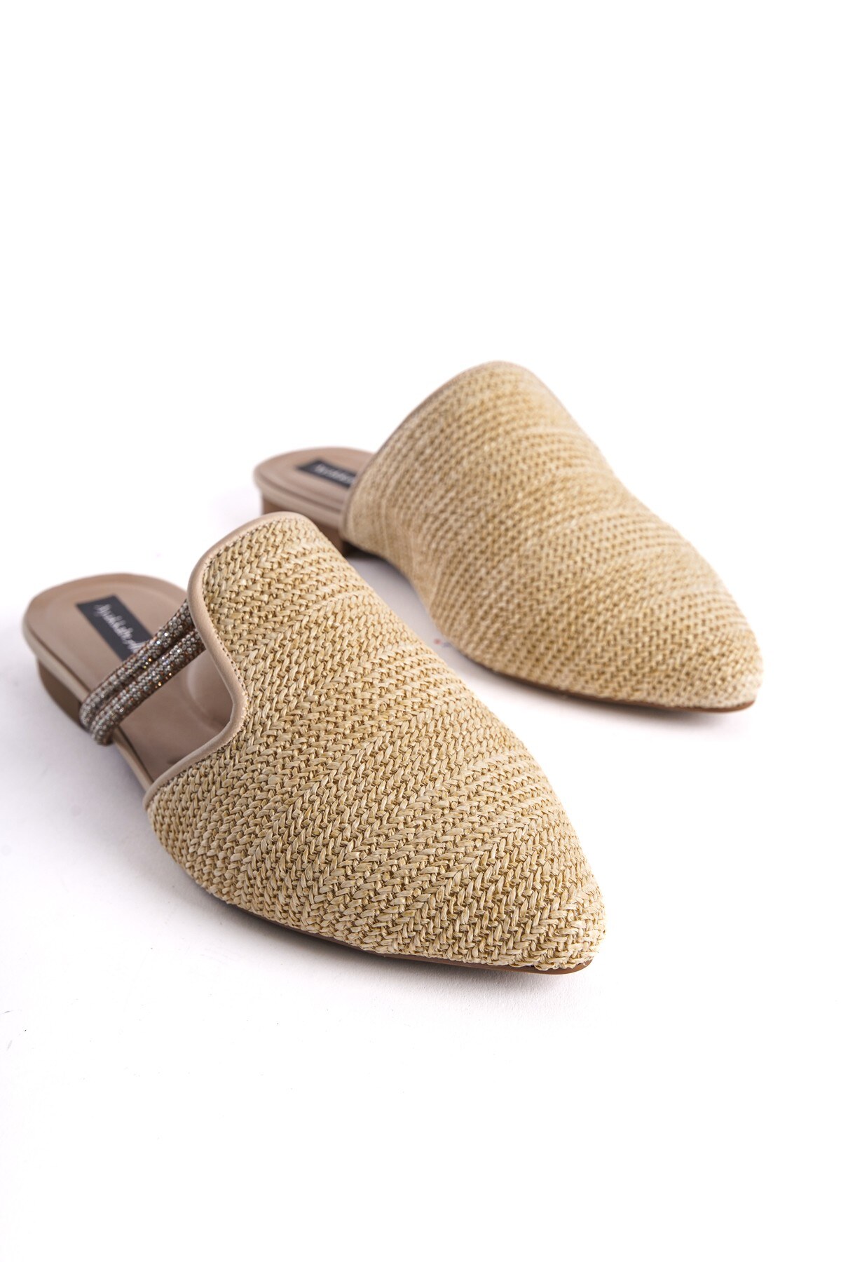 Bej Hasır Sivri Burunlu Kadın Terlik Kinoa Bej