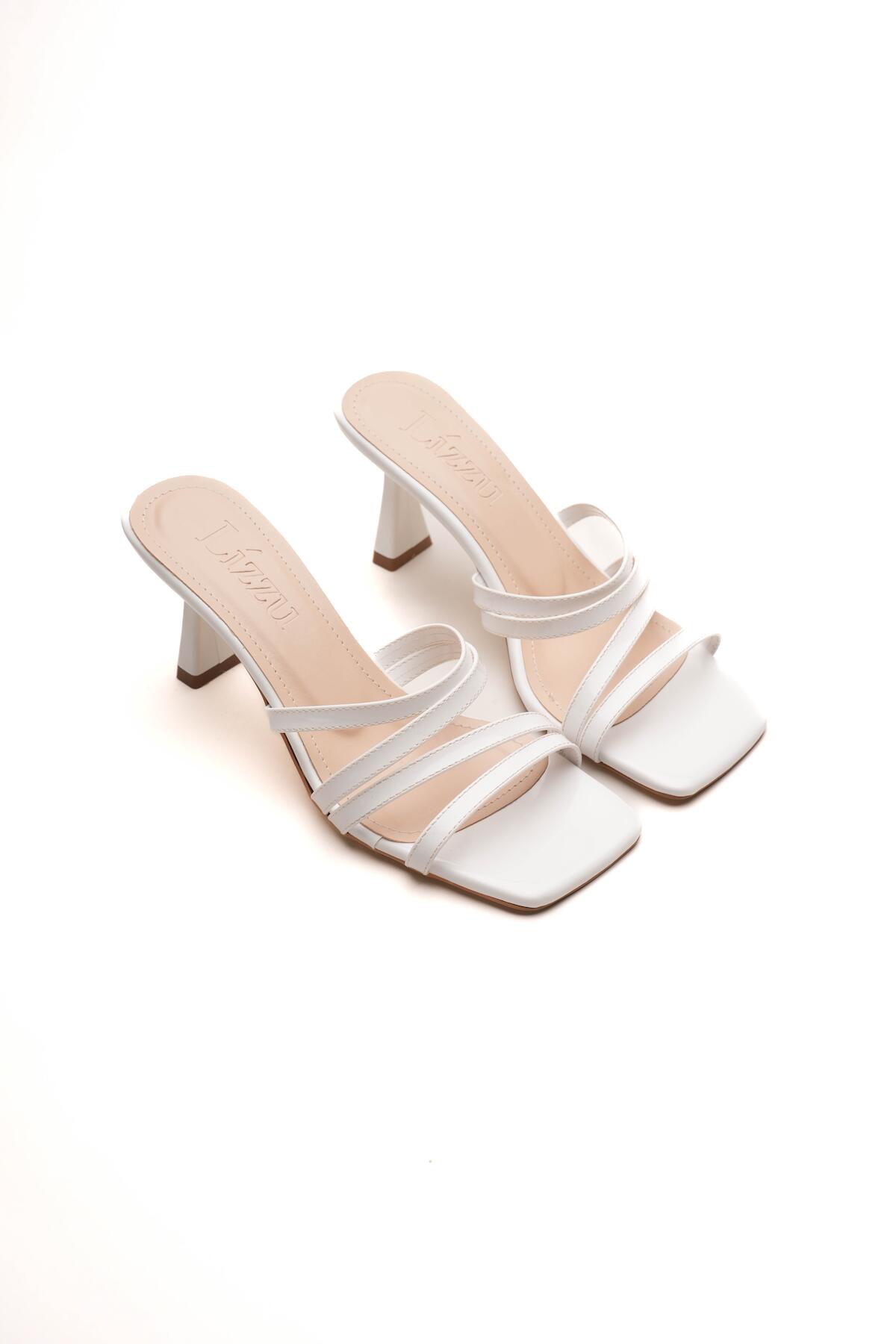 Kadın Küt Butun Tasarım Topuklu Terlik Prana Beyaz Rugan