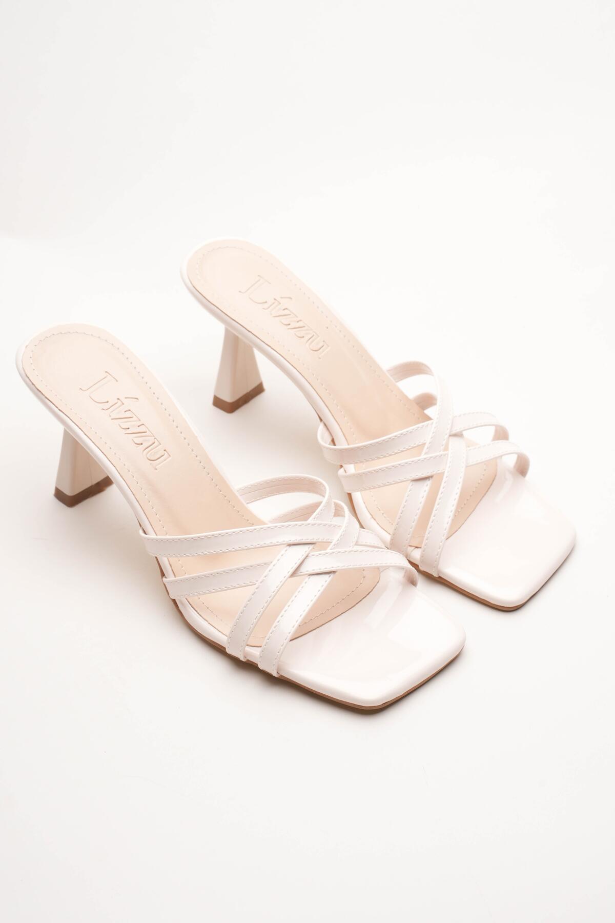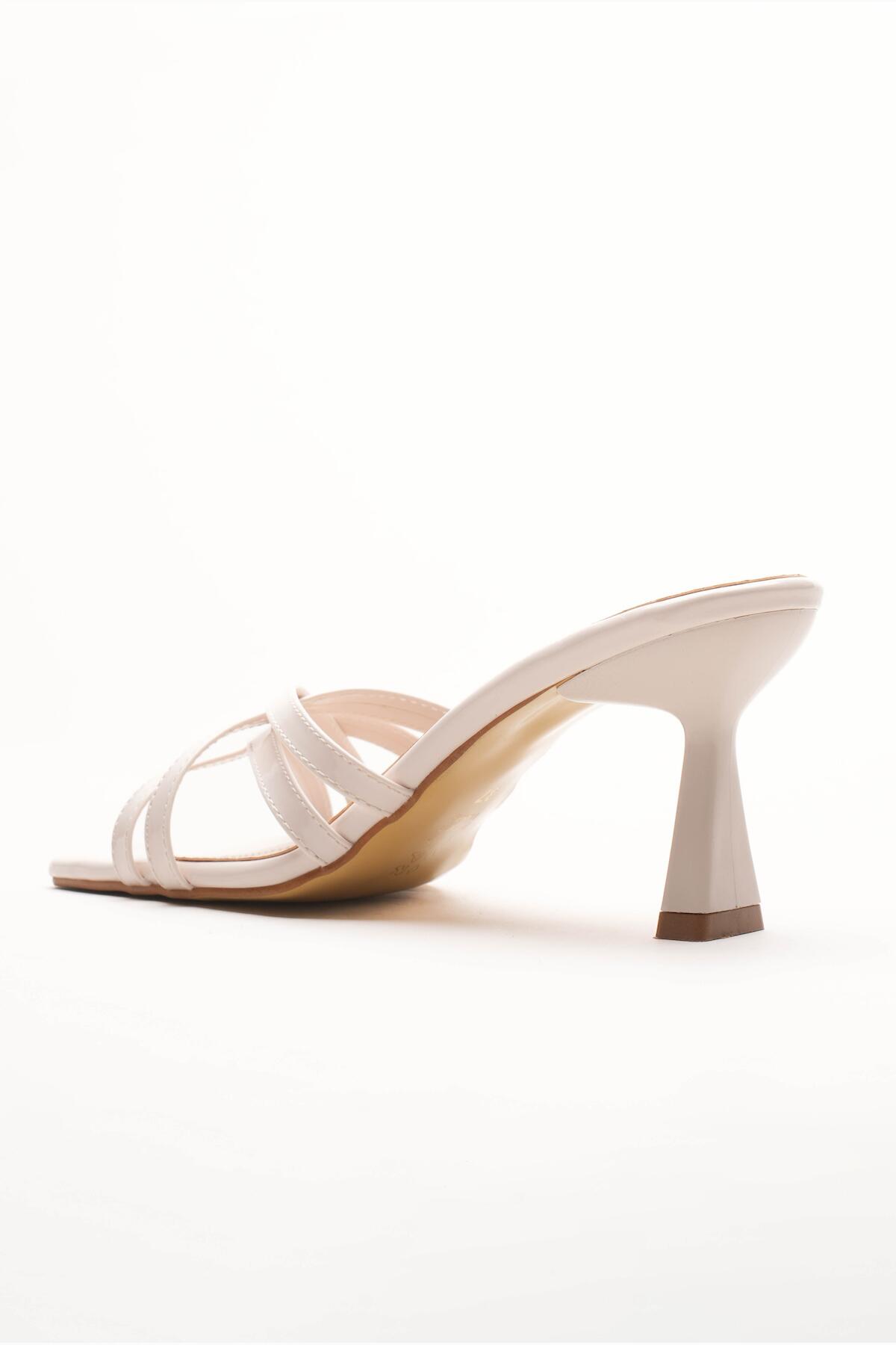 Kadın Bantlı Tasarım Topuklu Terlik Core Bej