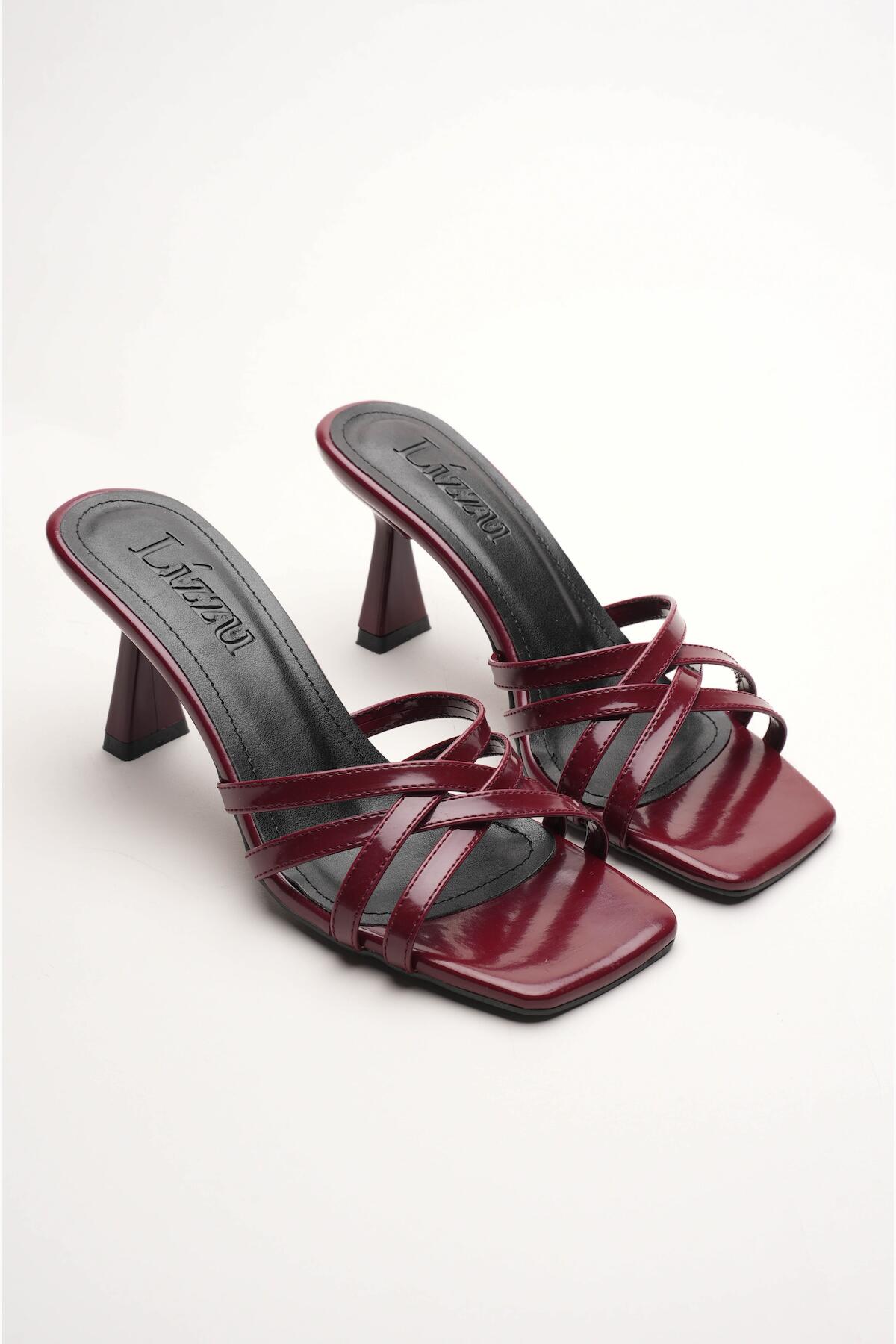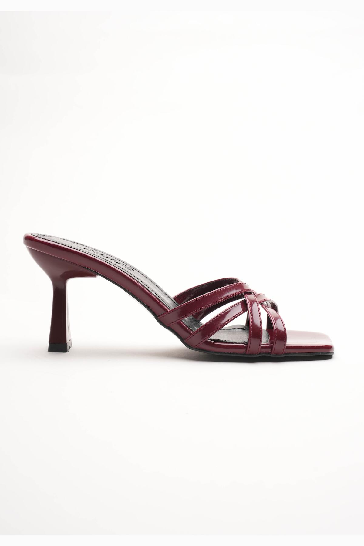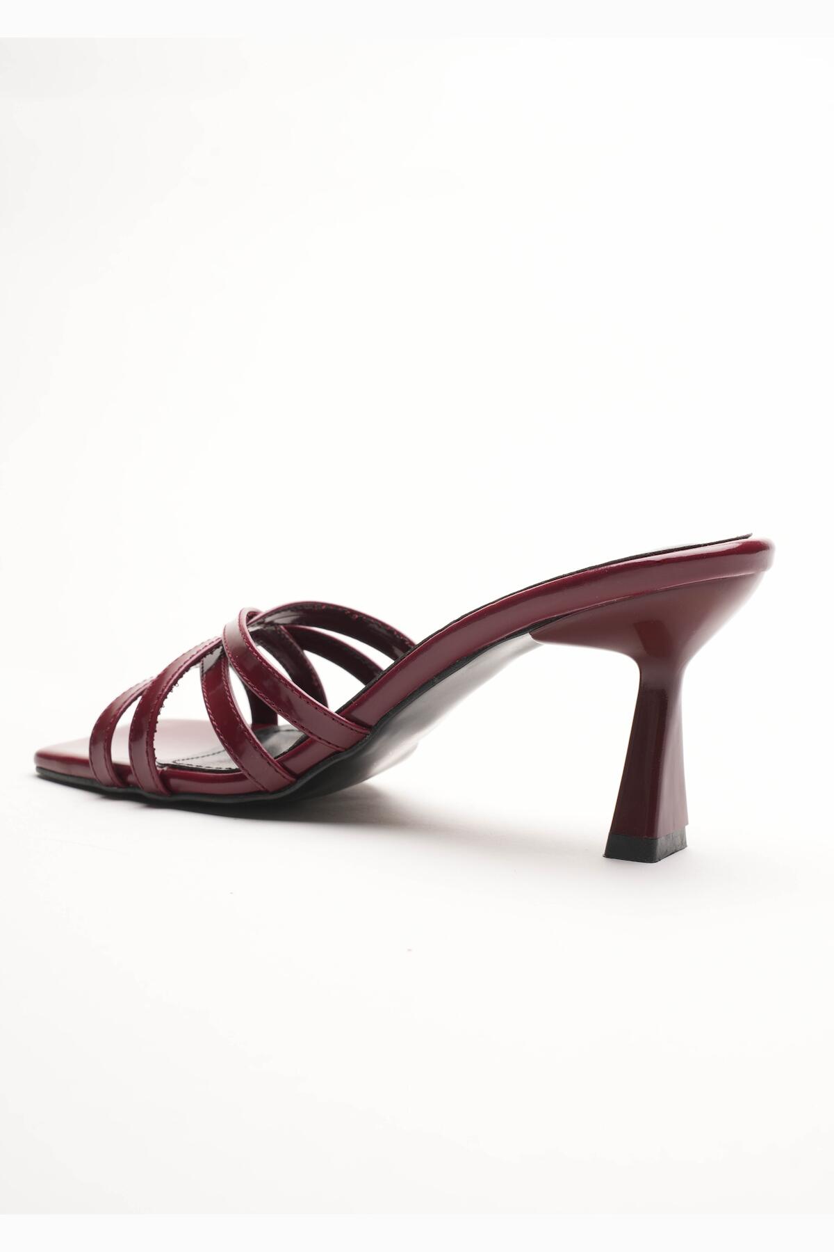 Kadın Bantlı Tasarım Topuklu Terlik Core Bordo