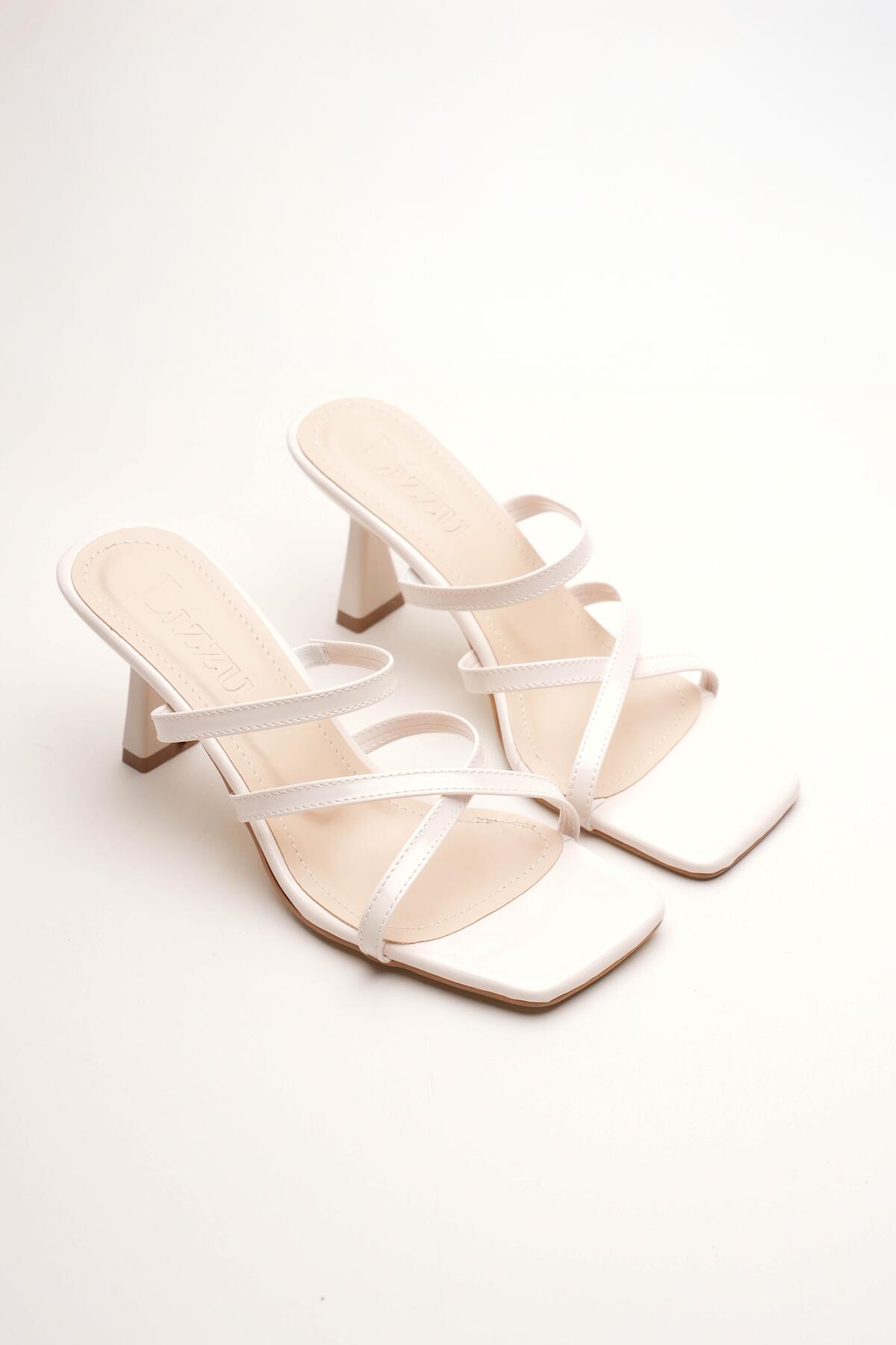 Kadın Çapraz Bantlı Tasarım Topuklu Terlik Carele