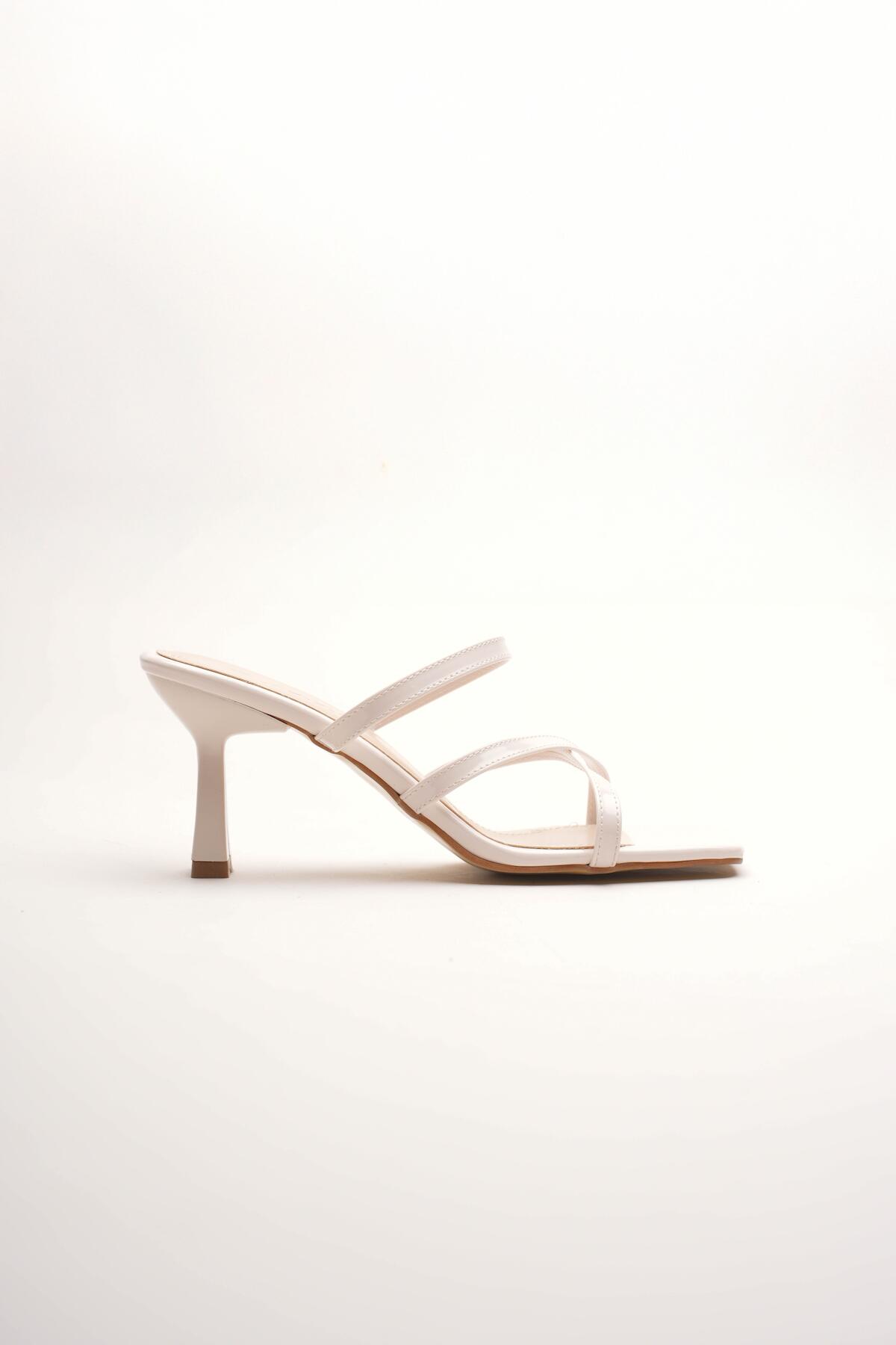 Kadın Çapraz Bantlı Tasarım Topuklu Terlik Carele Bej