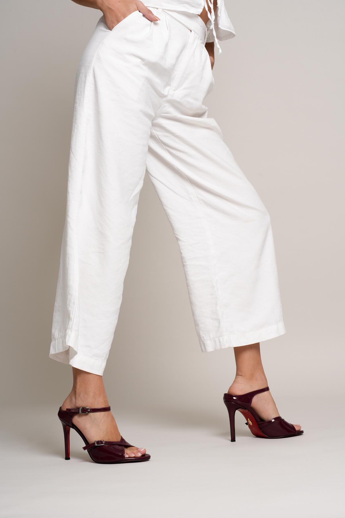 Kadın Çift Bantlı Tasarım Topuklu Ayakkabı Liona Bordo