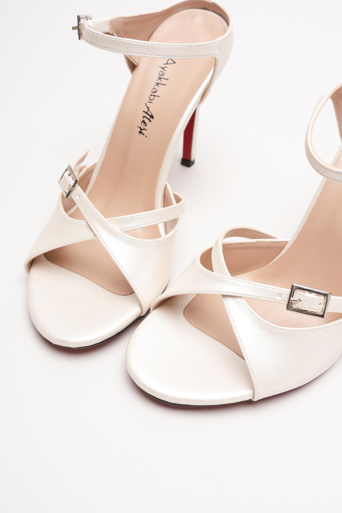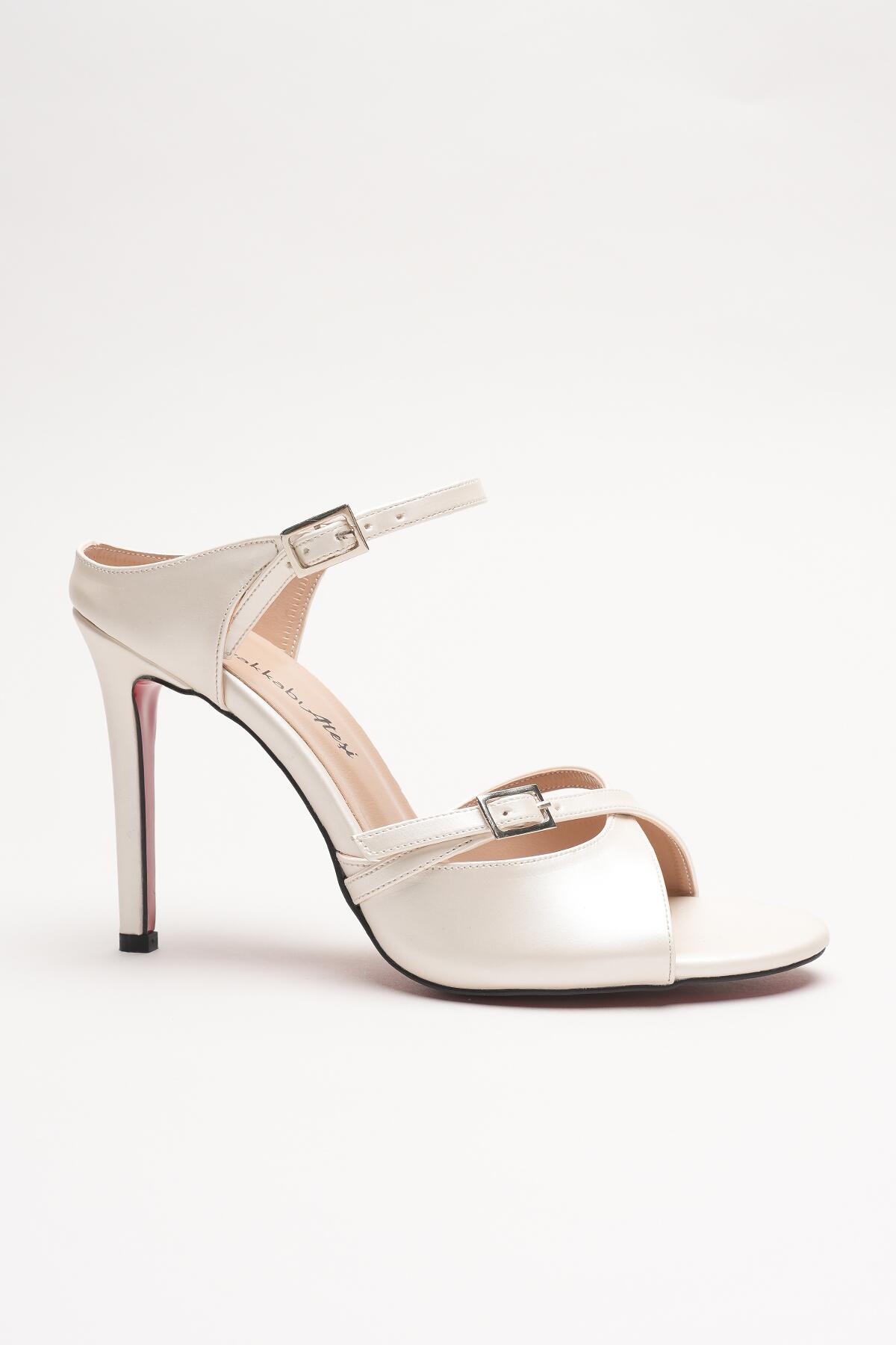 Kadın Çift Bantlı Tasarım Topuklu Ayakkabı Liona Sedef