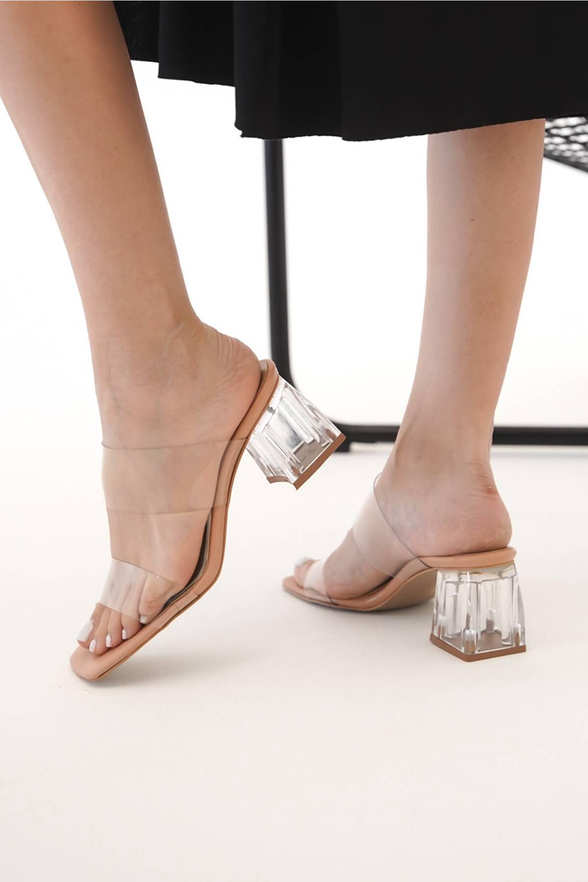 Kadın Şeffaf Bant Topuklu Terlik Saine Nude Cilt