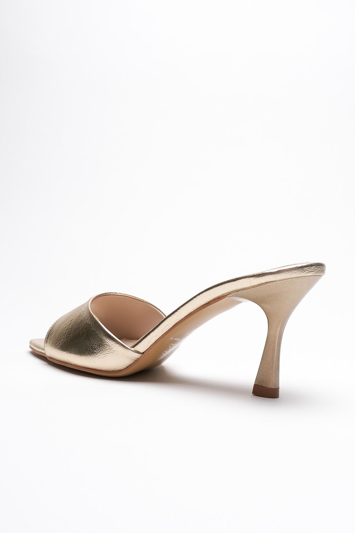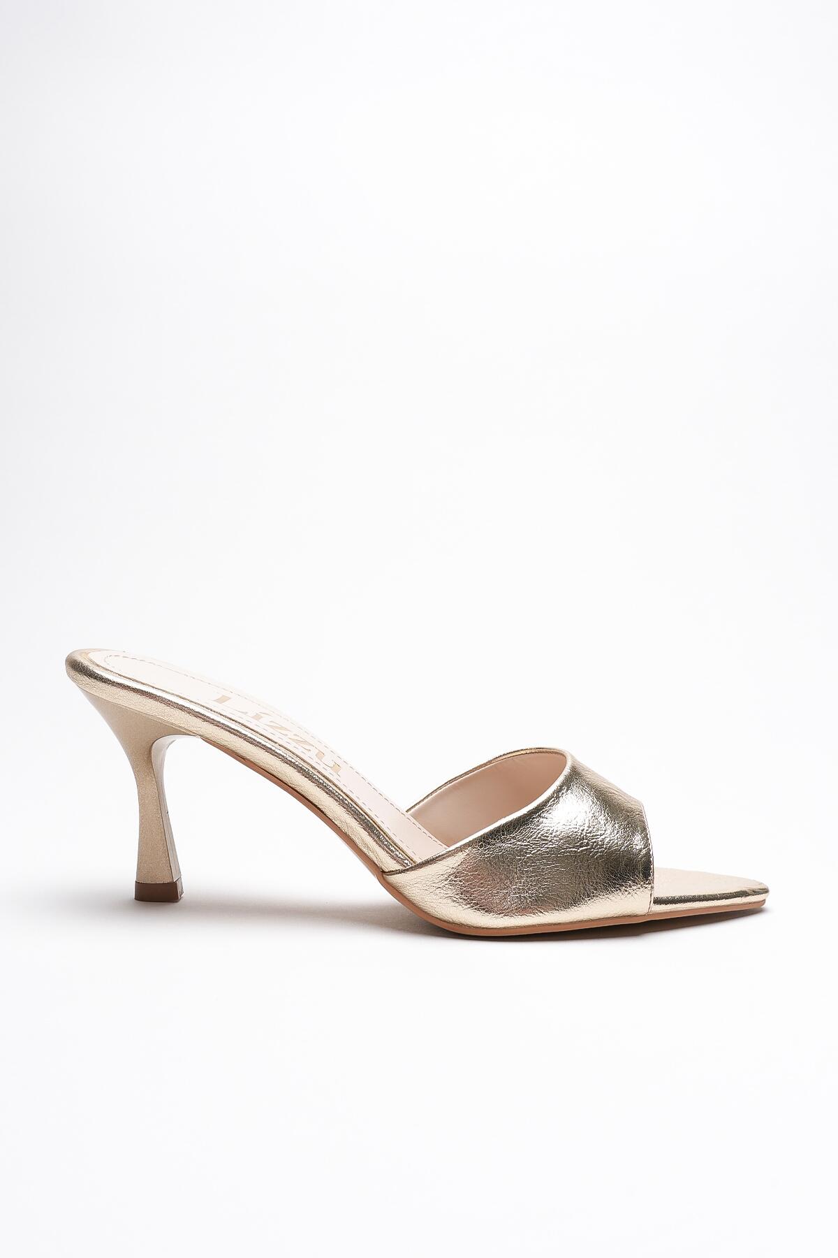 Kadın Sivri Burun Açık Topuklu Terlik Leni Altın