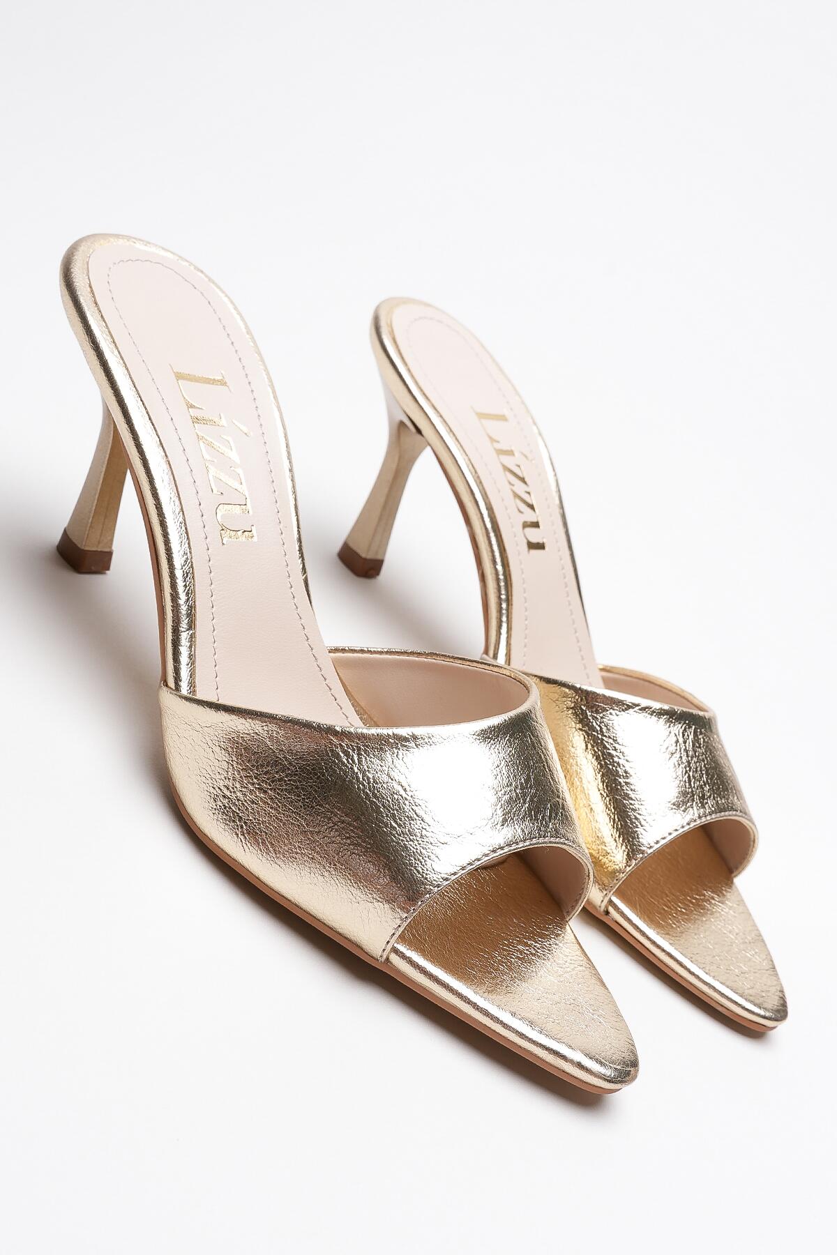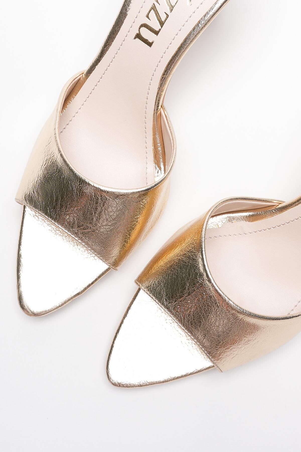 Kadın Sivri Burun Açık Topuklu Terlik Leni Altın