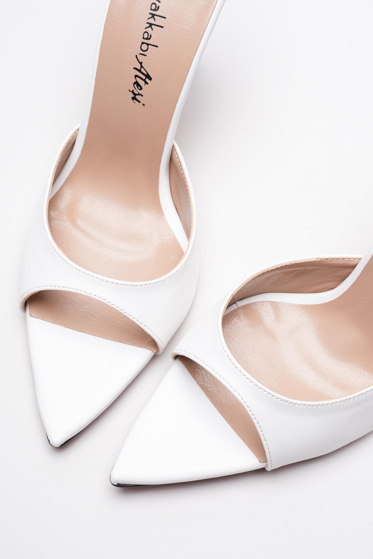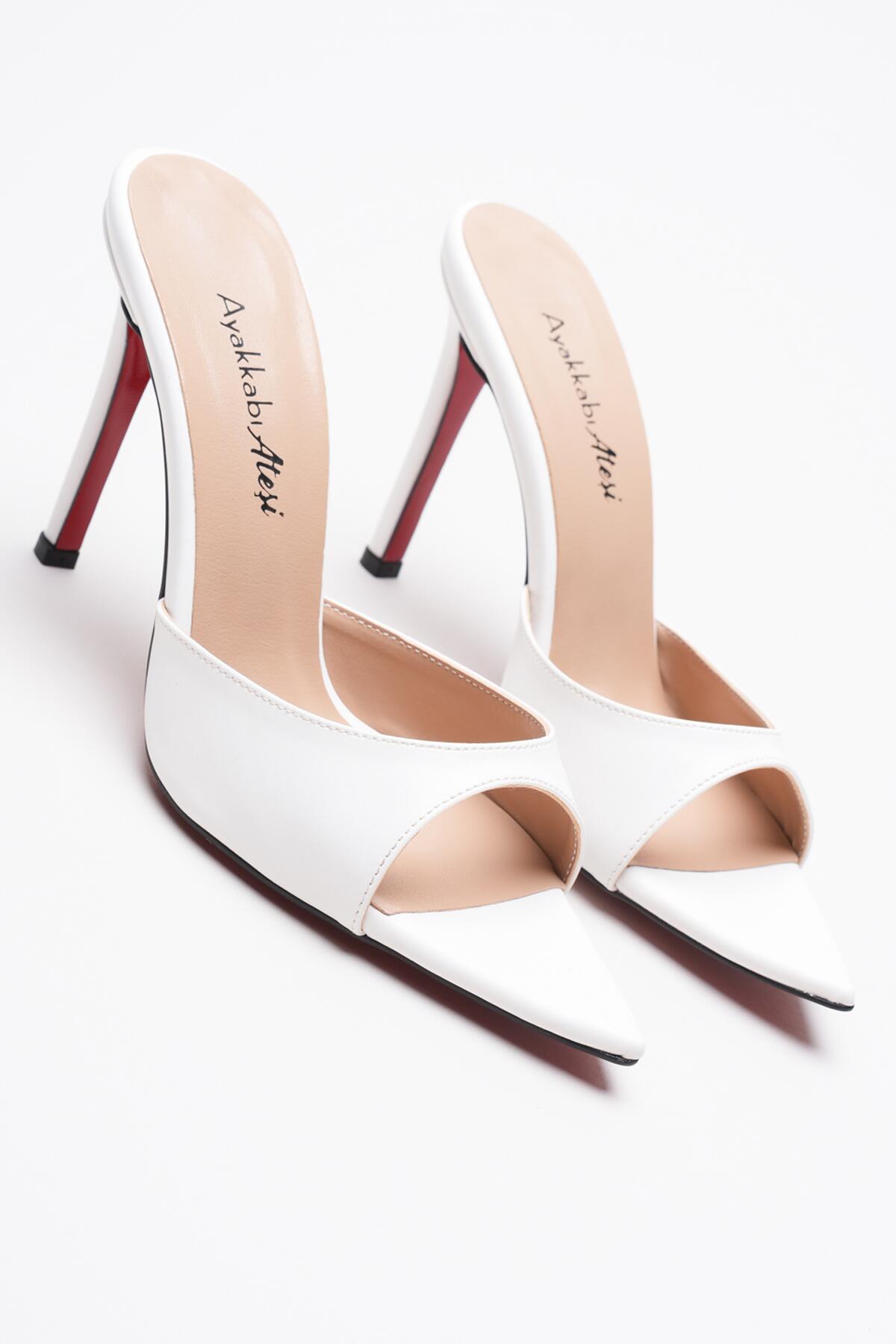 Kadın Sivri Burun İnce Topuklu Terlik Sona Beyaz Cilt