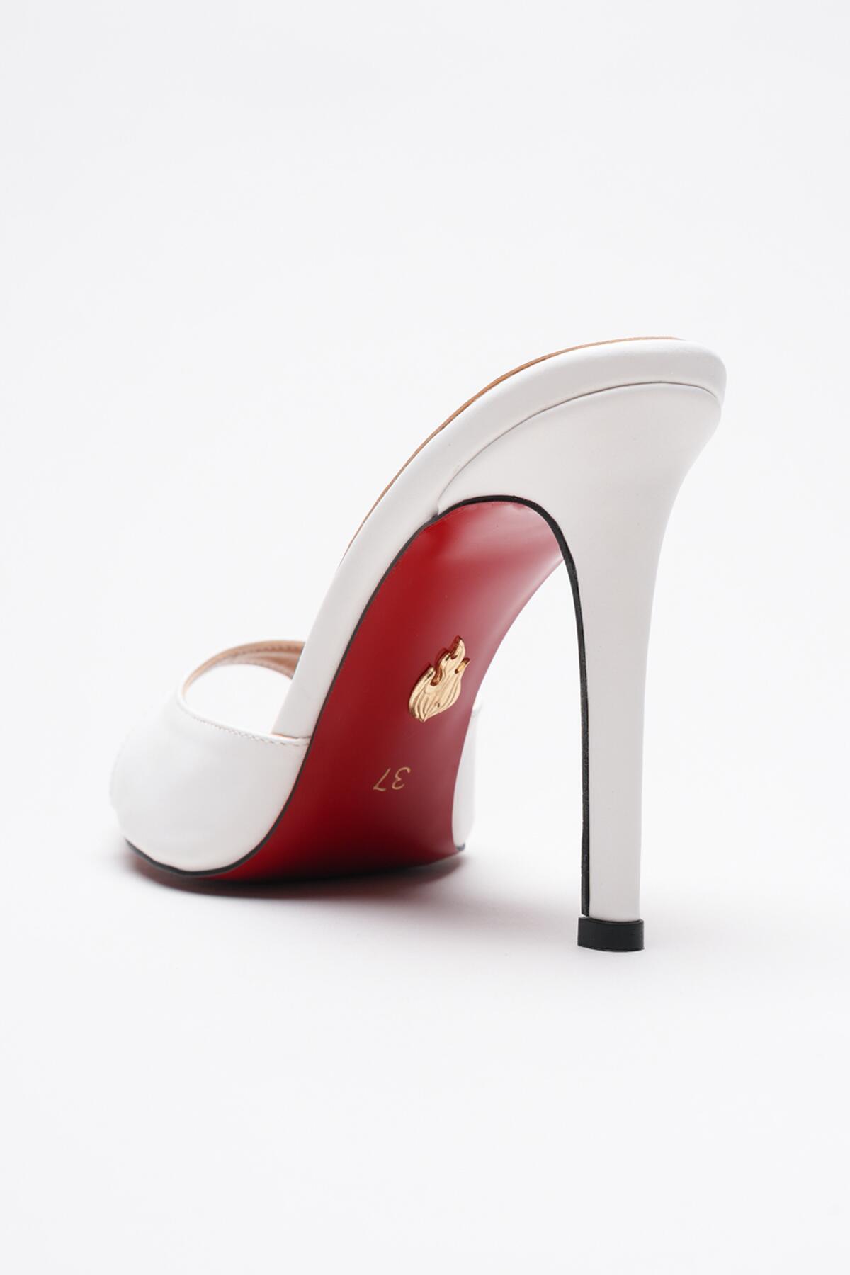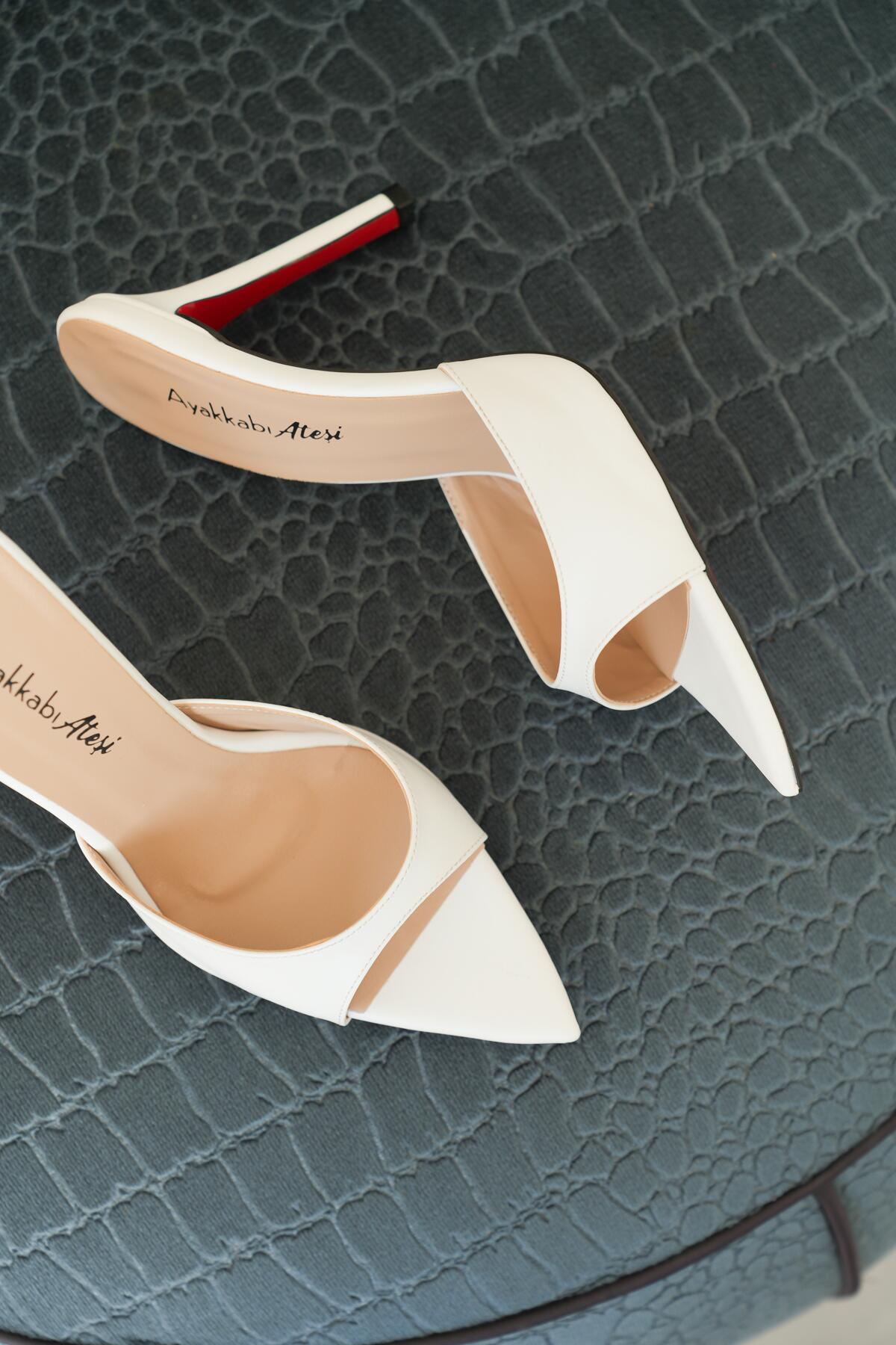 Kadın Sivri Burun İnce Topuklu Terlik Sona Beyaz Cilt
