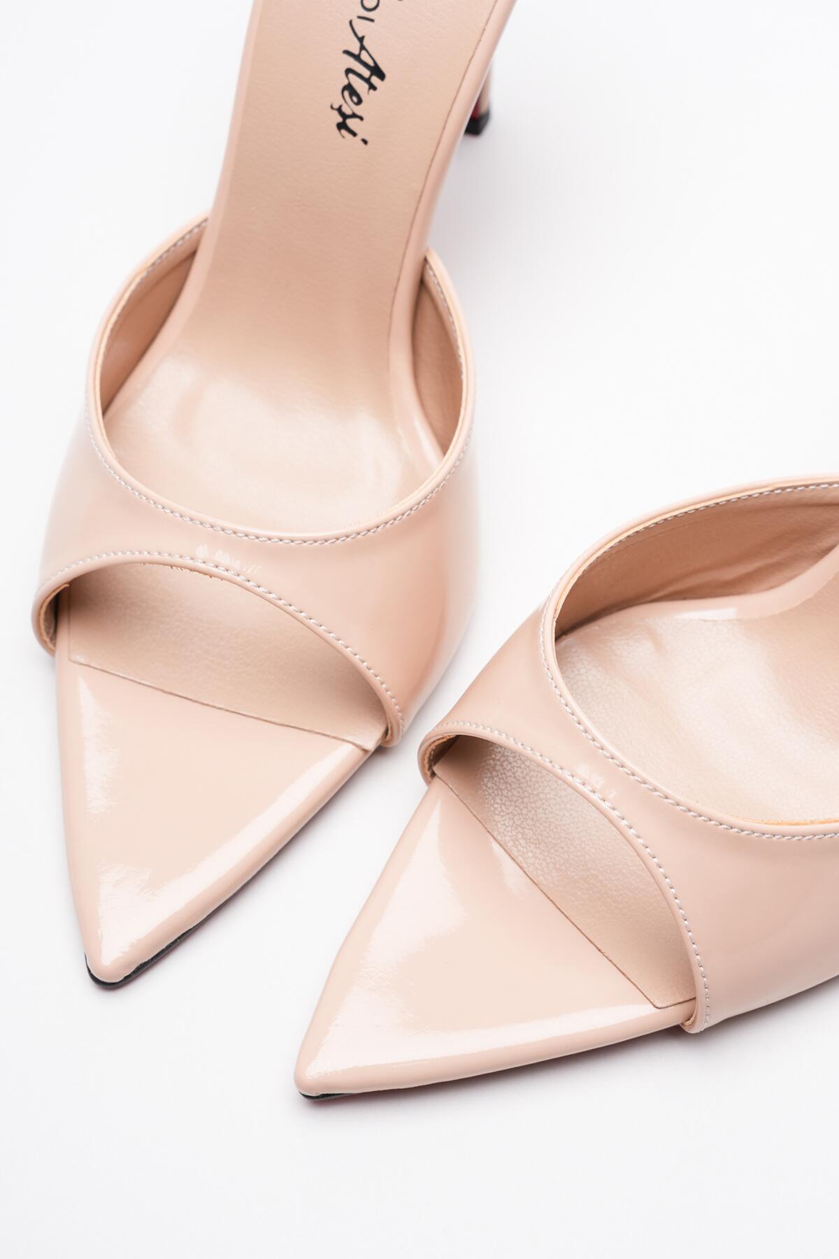 Kadın Sivri Burun İnce Topuklu Terlik Sona Nude Rugan