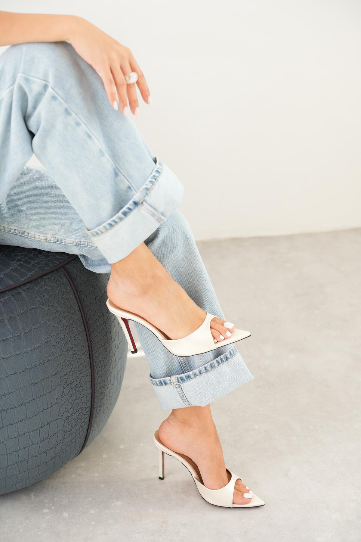 Kadın Sivri Burun İnce Topuklu Terlik Sona Sedef