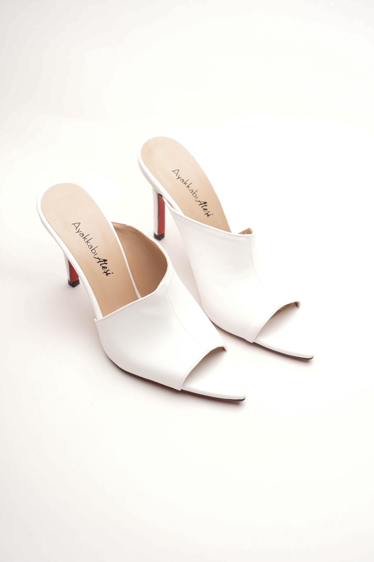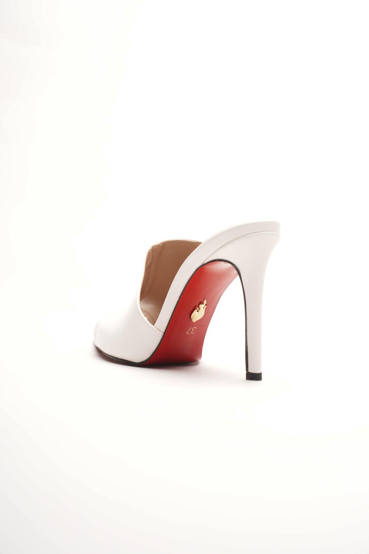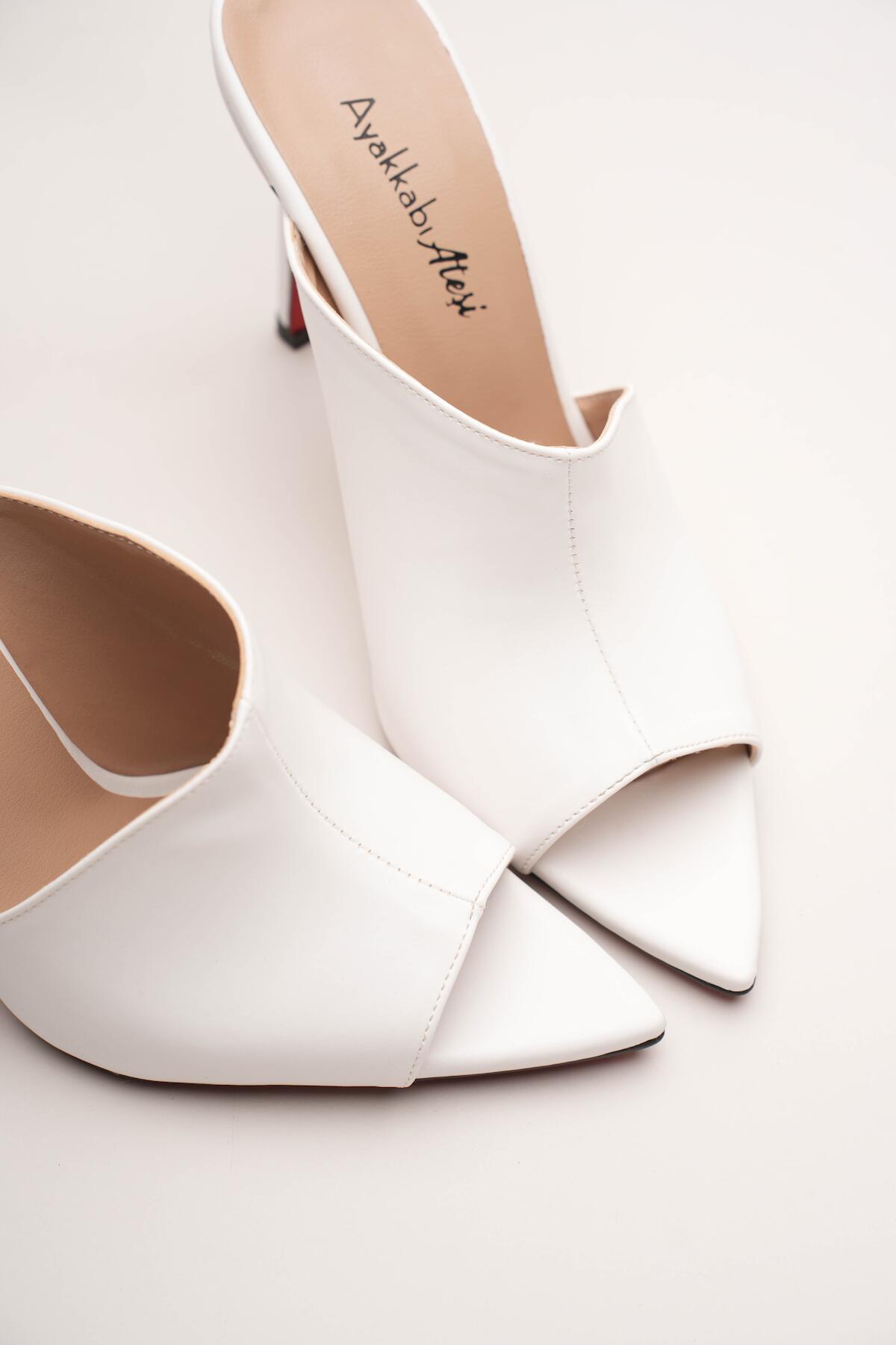 Kadın Tasarım İnce Topuklu Terlik Carolina Beyaz Cilt
