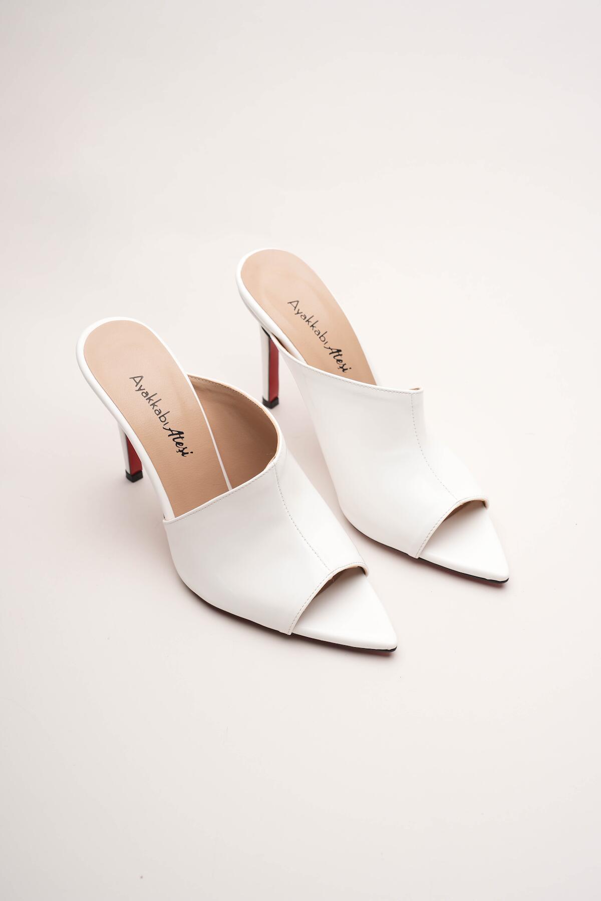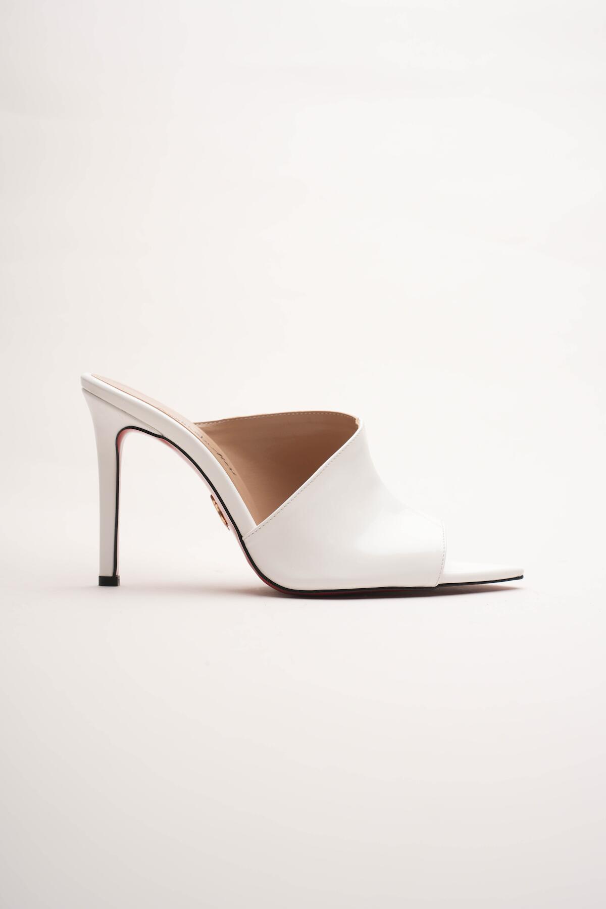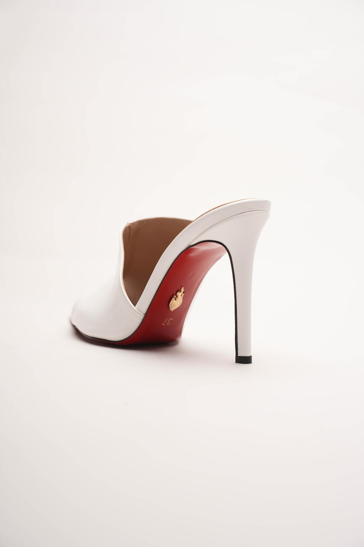 Kadın Tasarım İnce Topuklu Terlik Carolina Beyaz Rugan