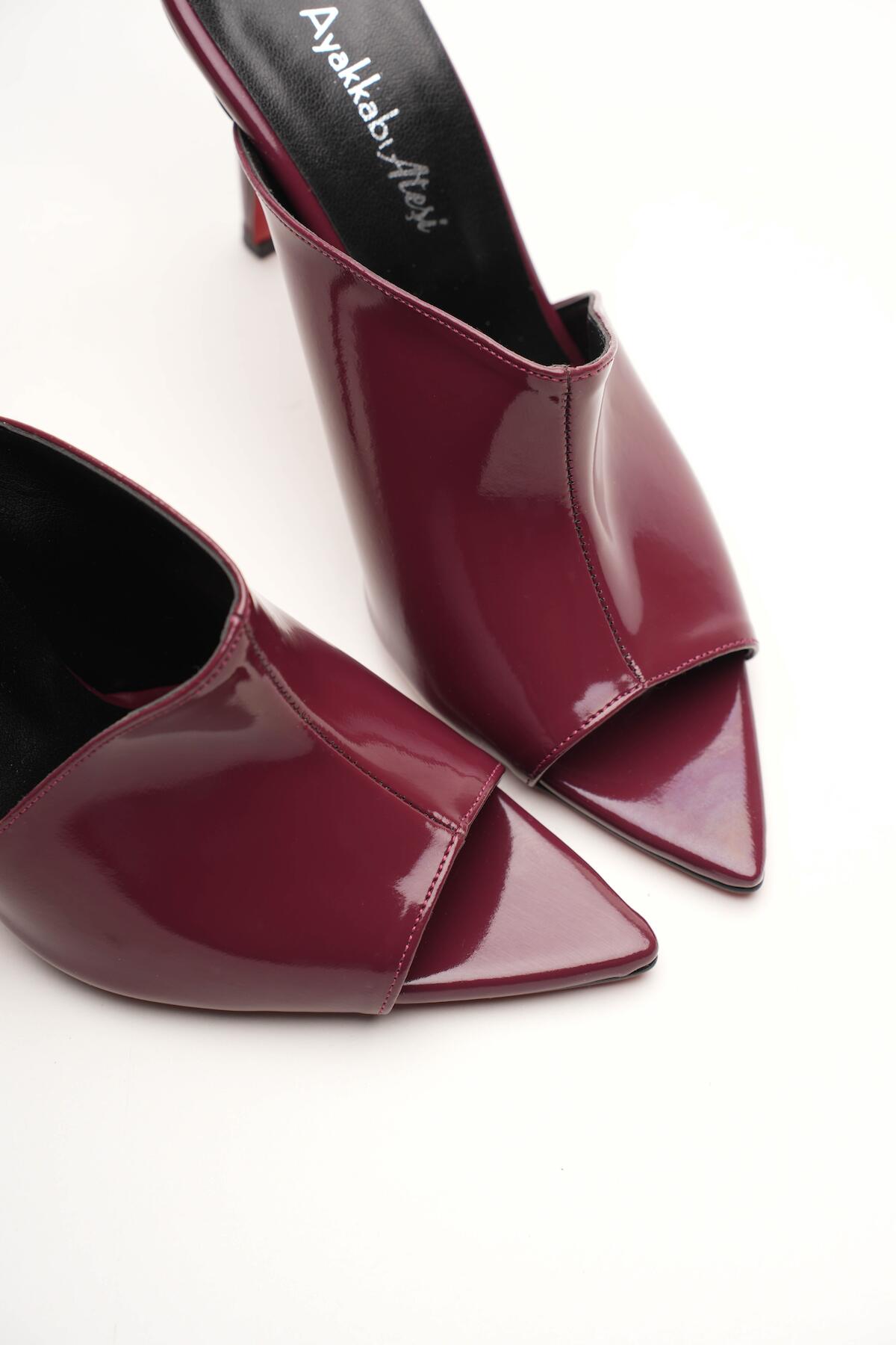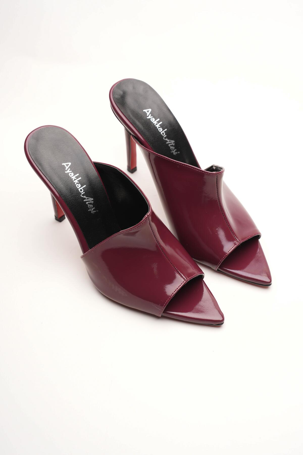 Kadın Tasarım İnce Topuklu Terlik Carolina Bordo