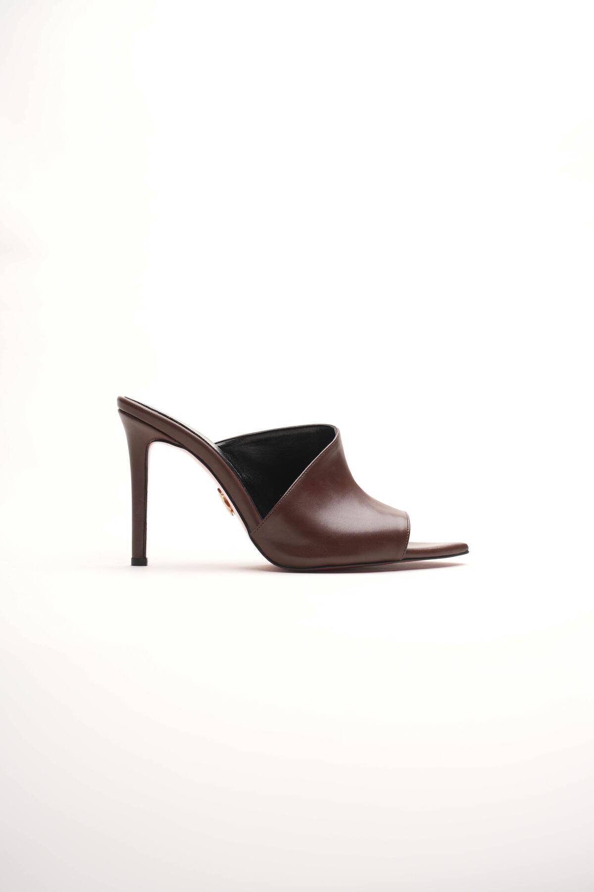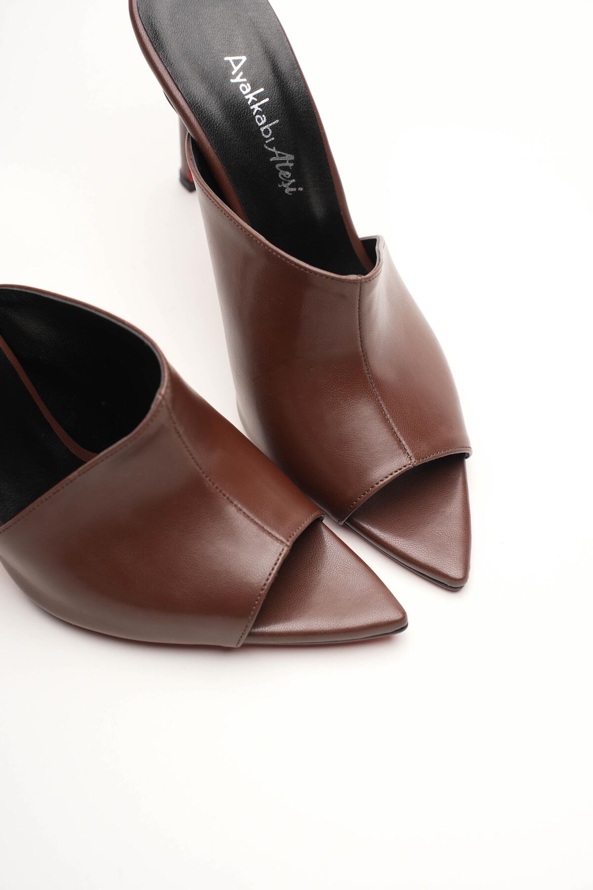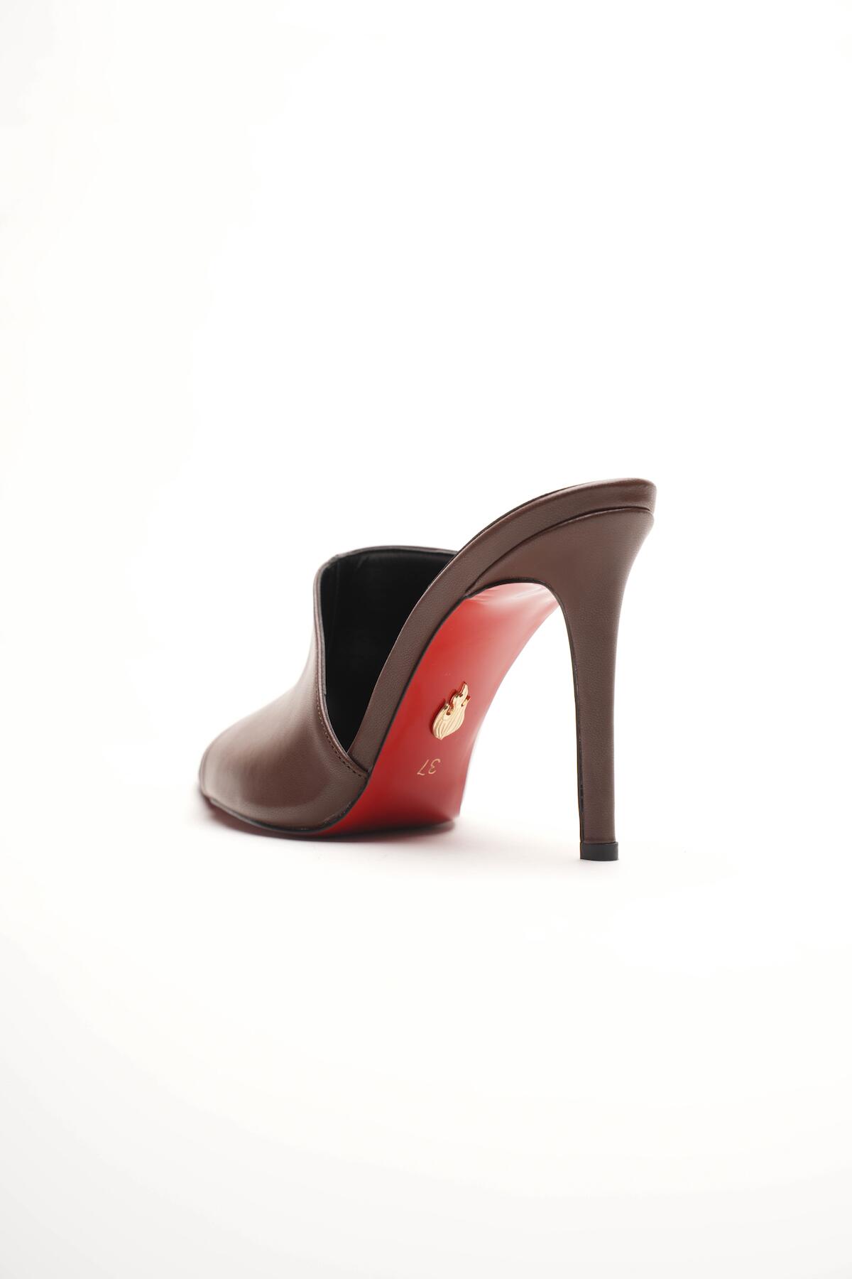 Kadın Tasarım İnce Topuklu Terlik Carolina Kahverengi