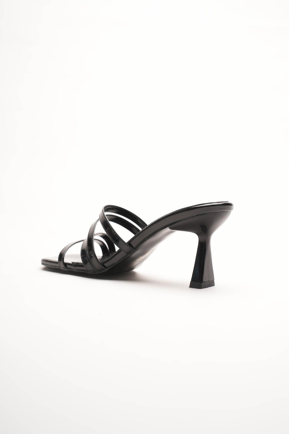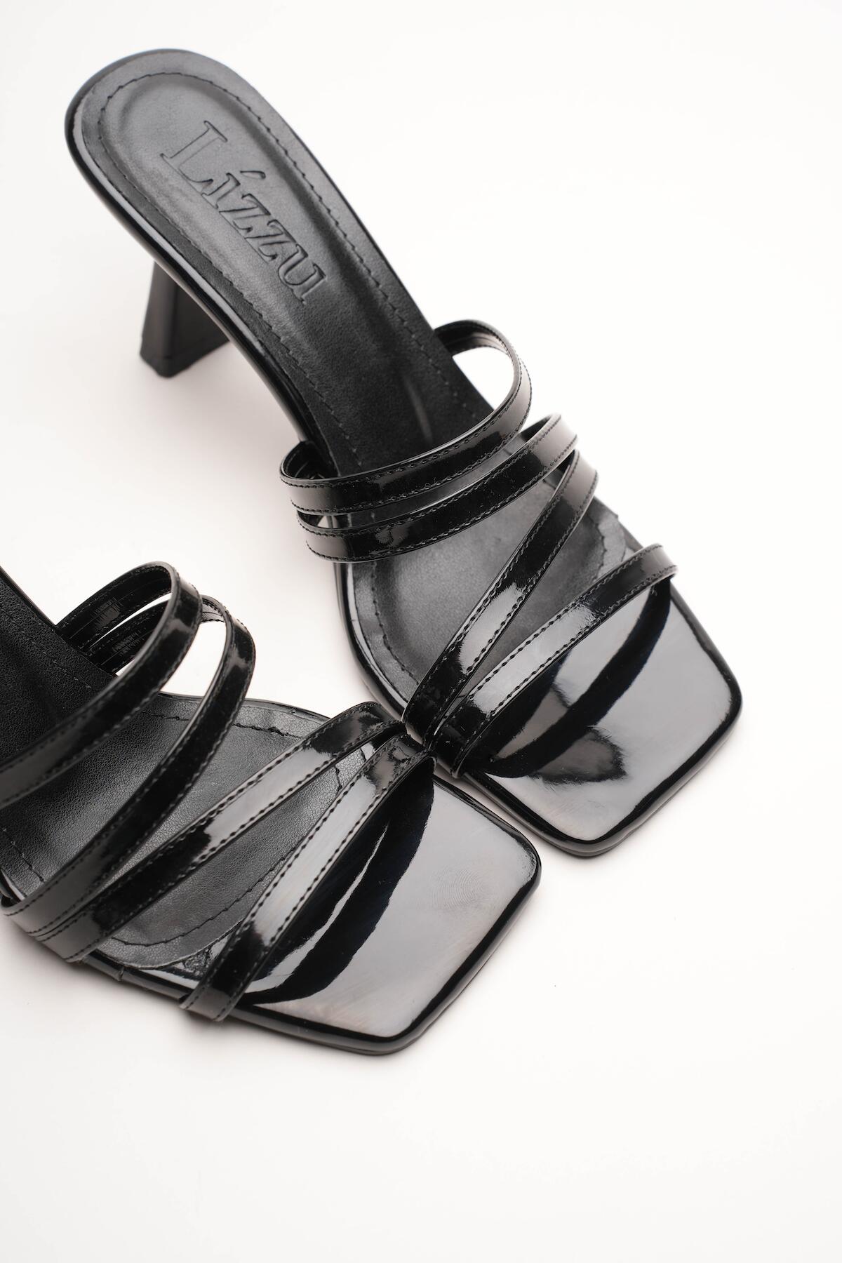 Kadın Küt Butun Tasarım Topuklu Terlik Prana Siyah Rugan