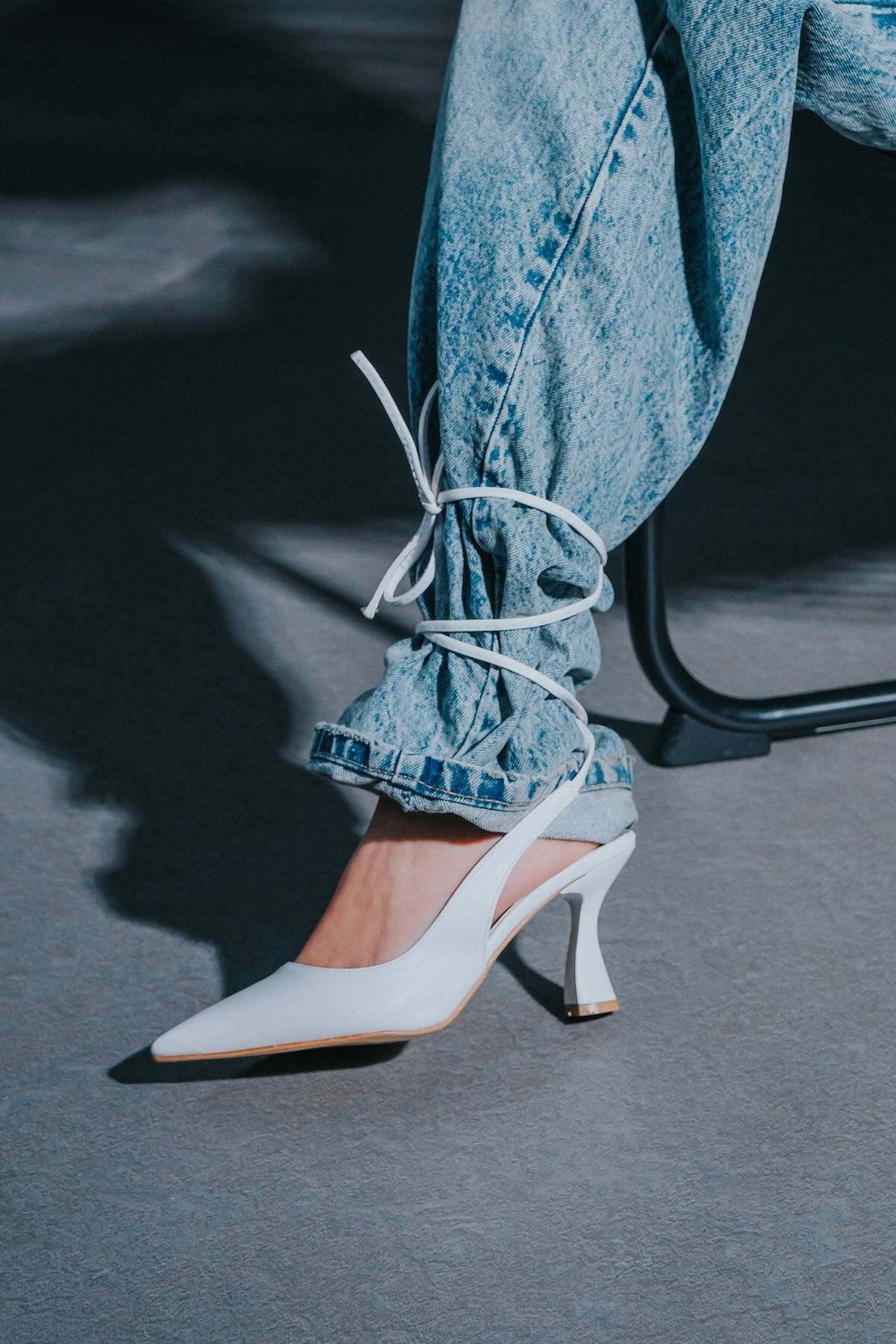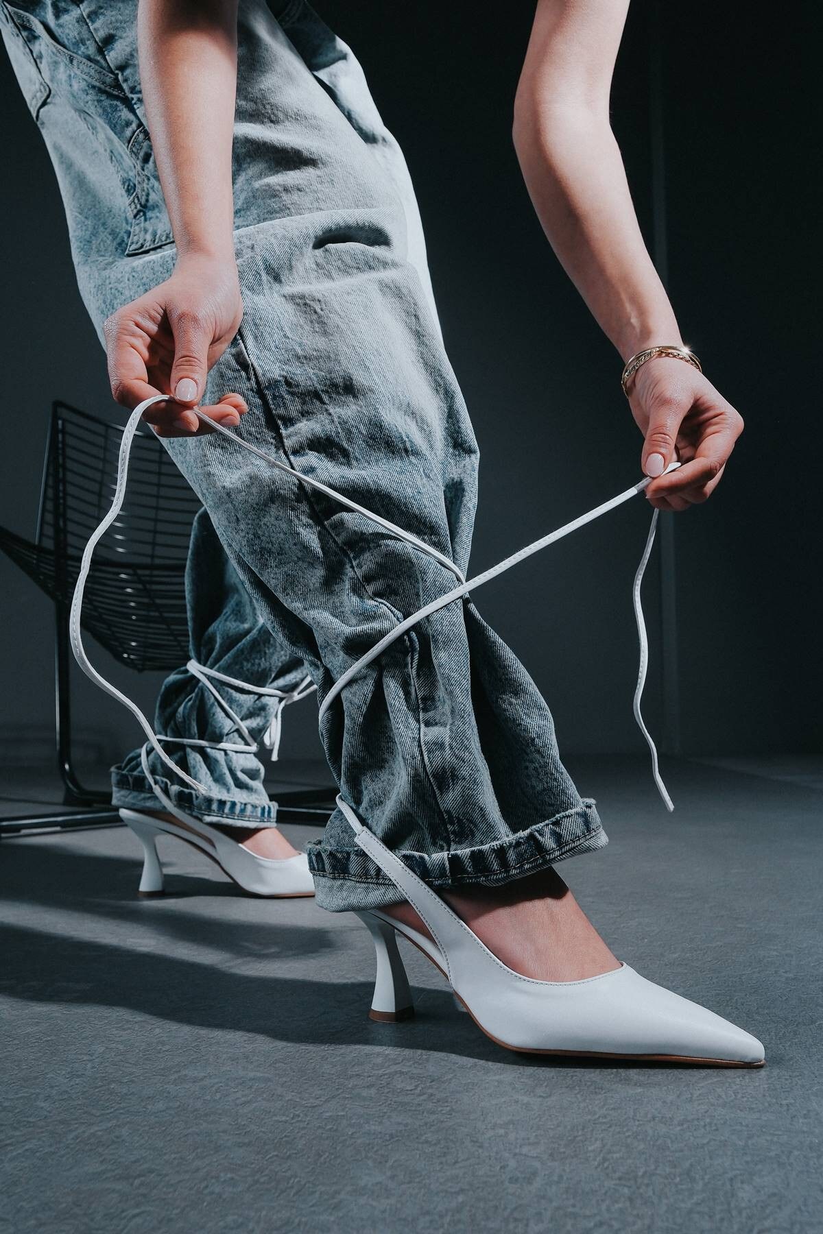 Beyaz Cilt Bilekten Bağlamalı Kadın Topuklu Ayakkabı Sise Beyaz Cilt