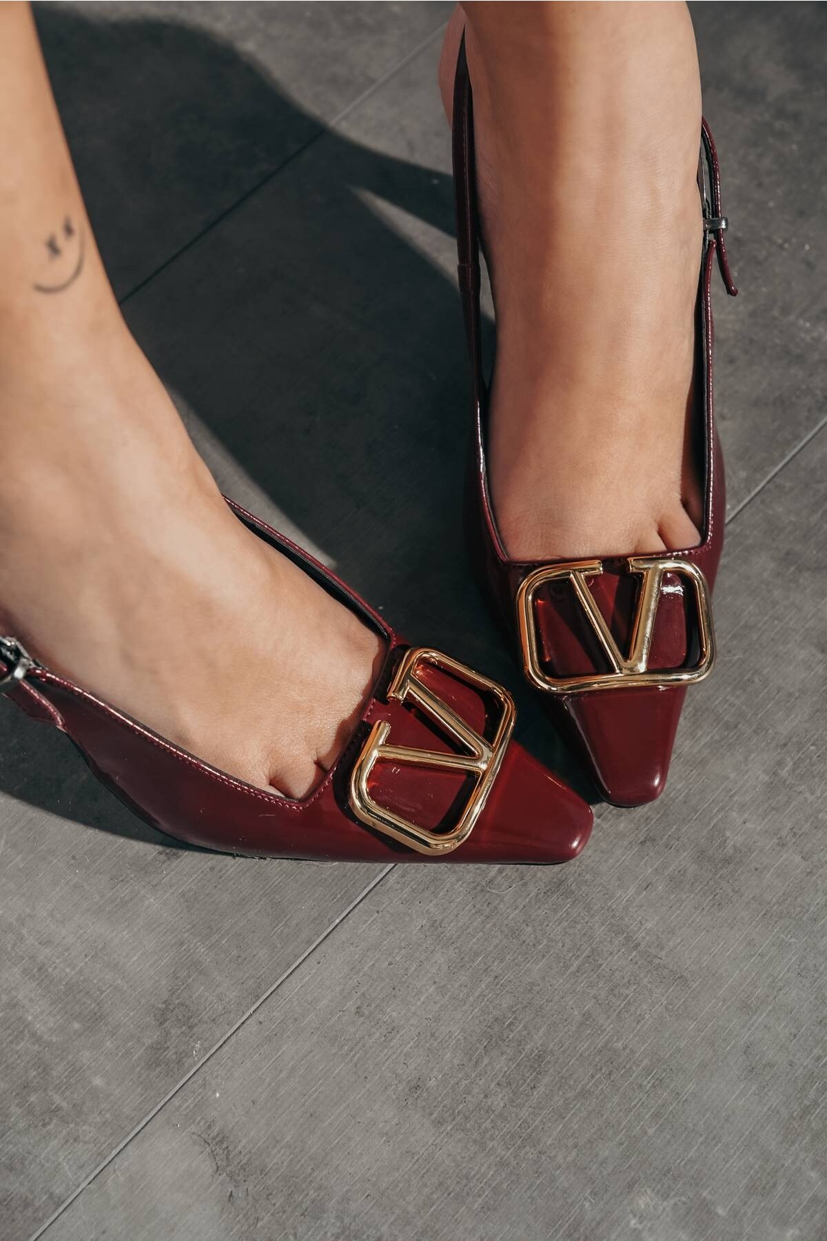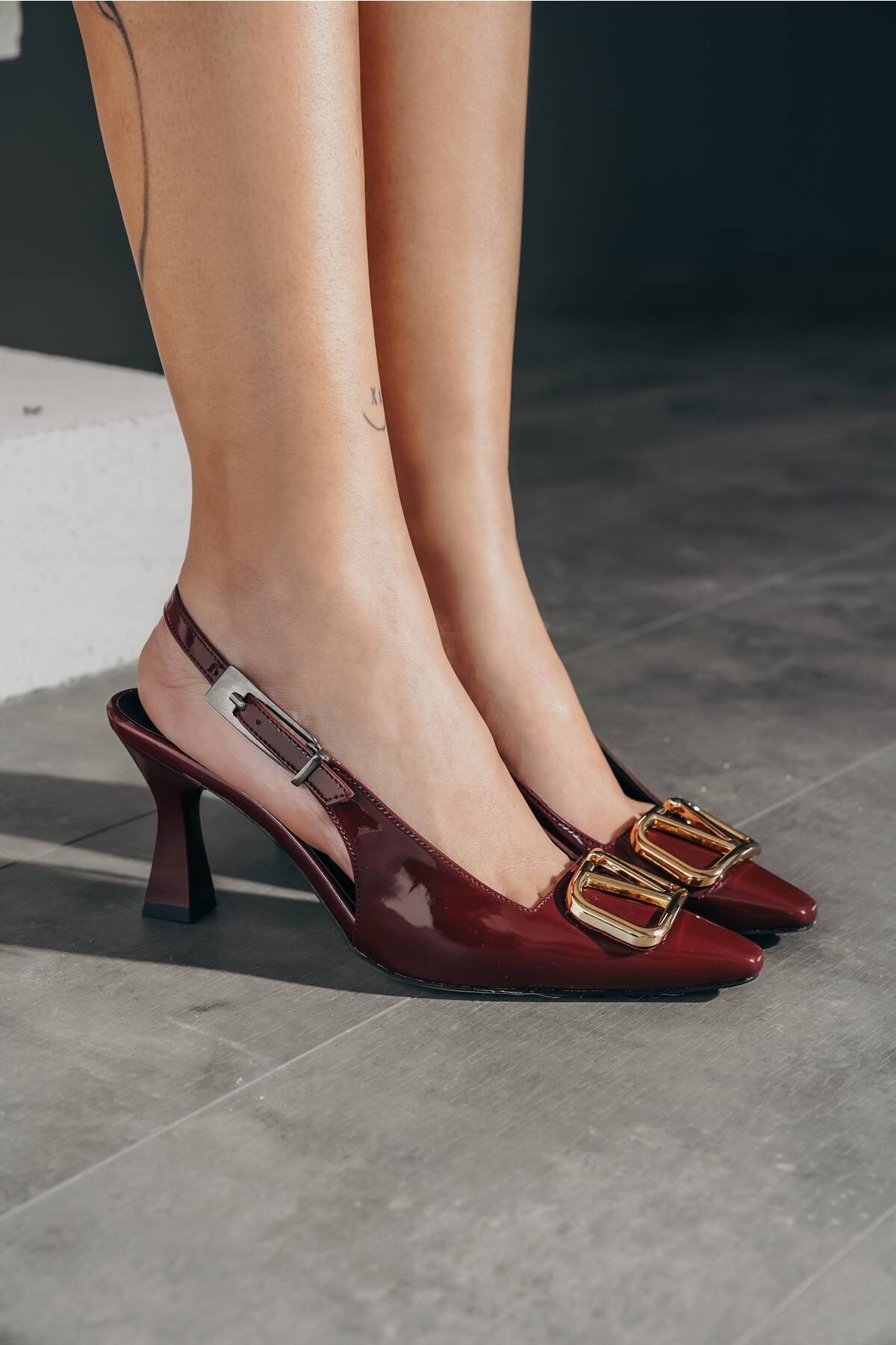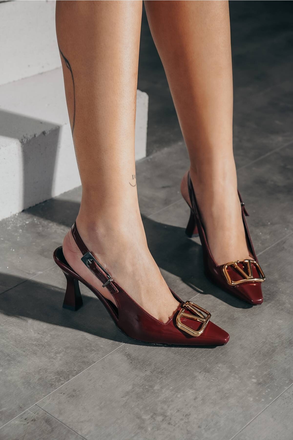 Bordo Rugan V Toka Detaylı Kadın Topuklu Ayakkabı Niolas Bordo