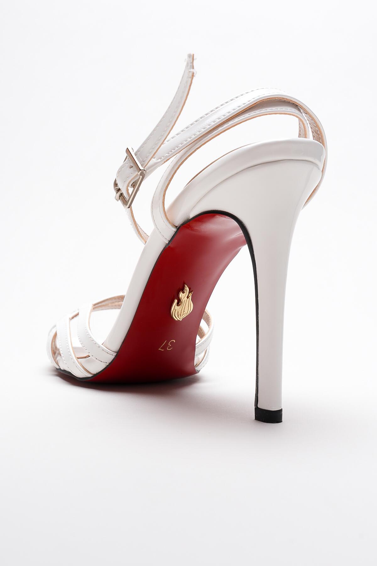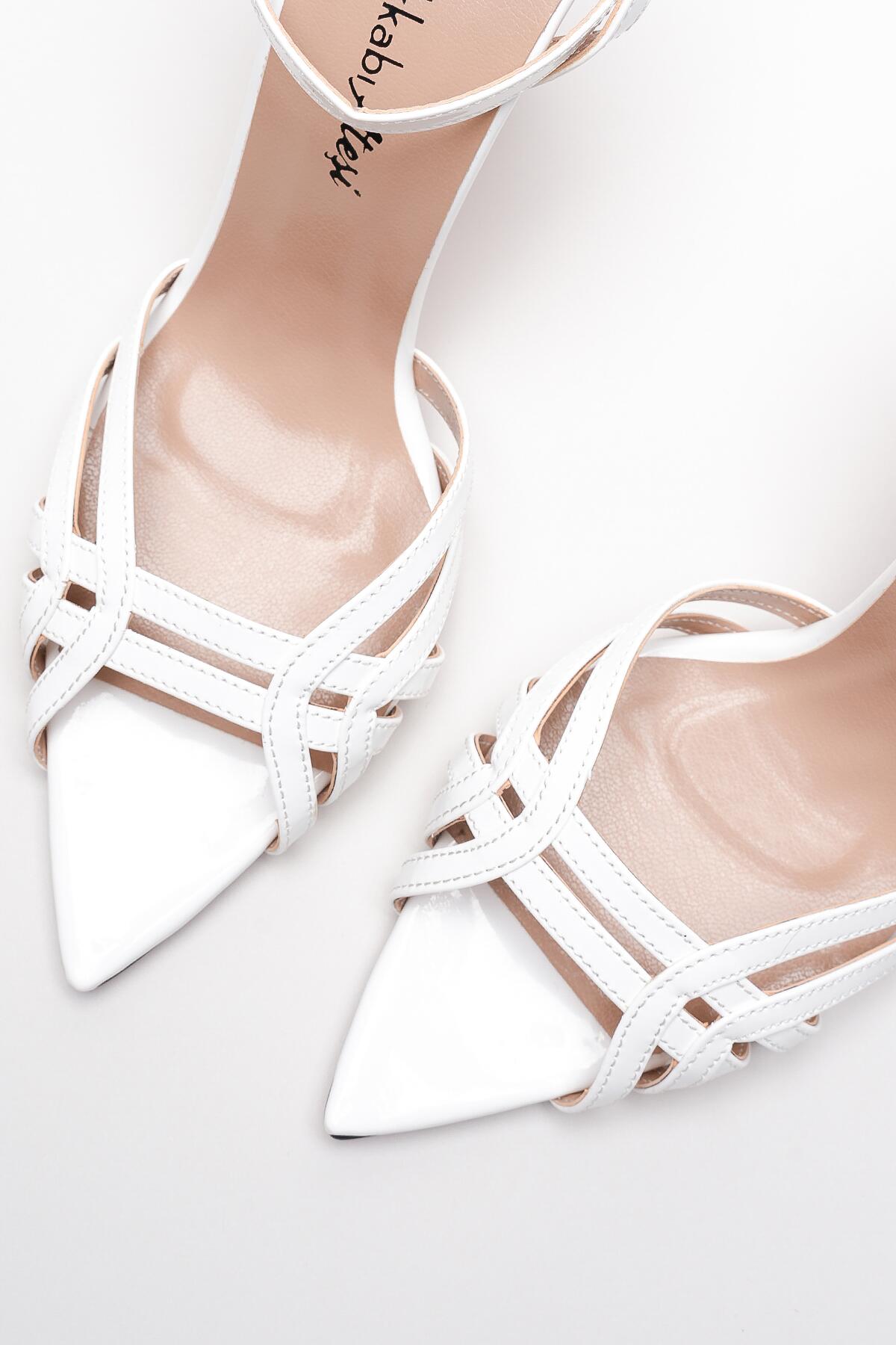 Kadın Açık Kafes Burun Tasarım İnce Topuklu Ayakkabı Prona Beyaz Rugan