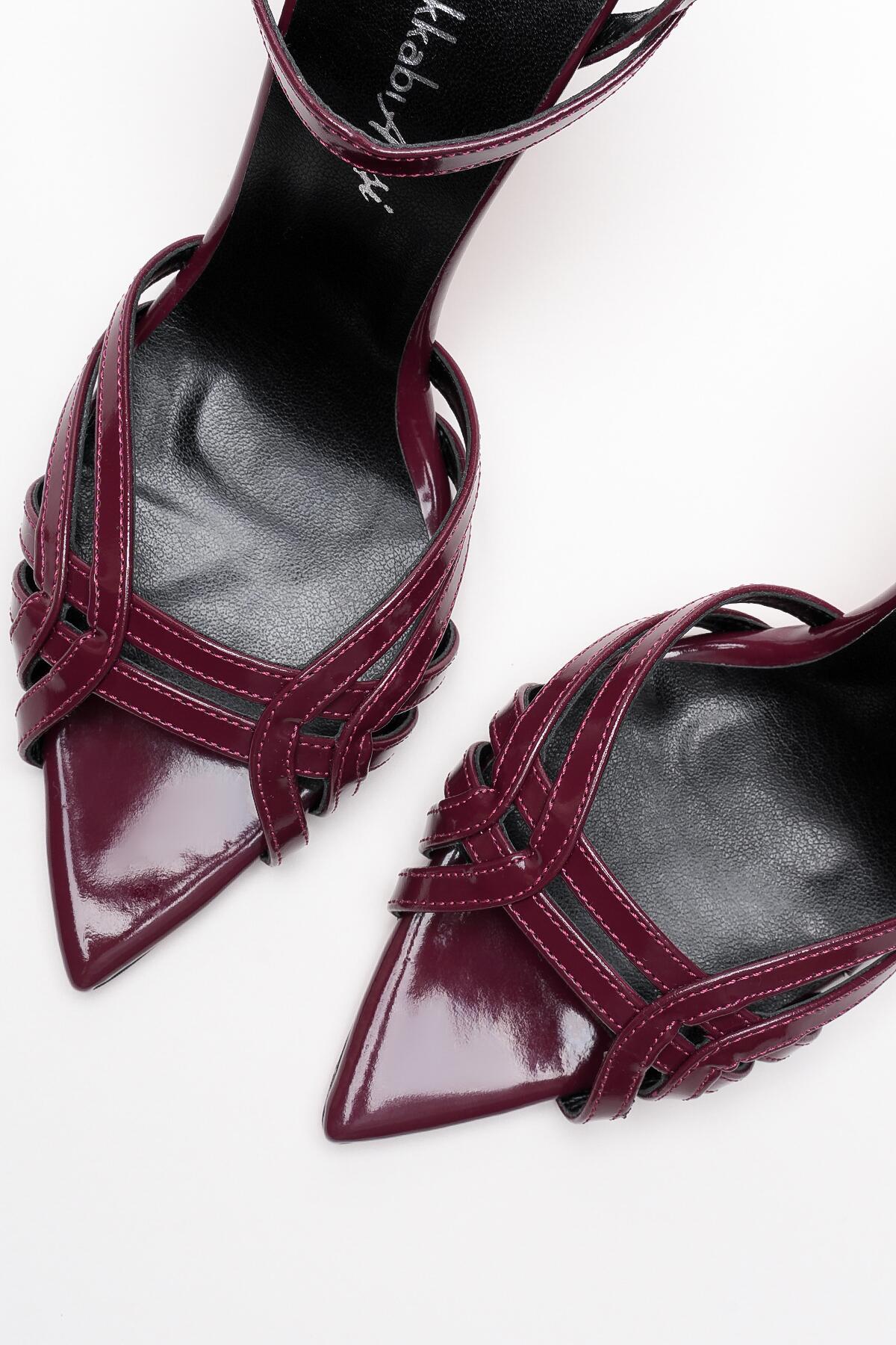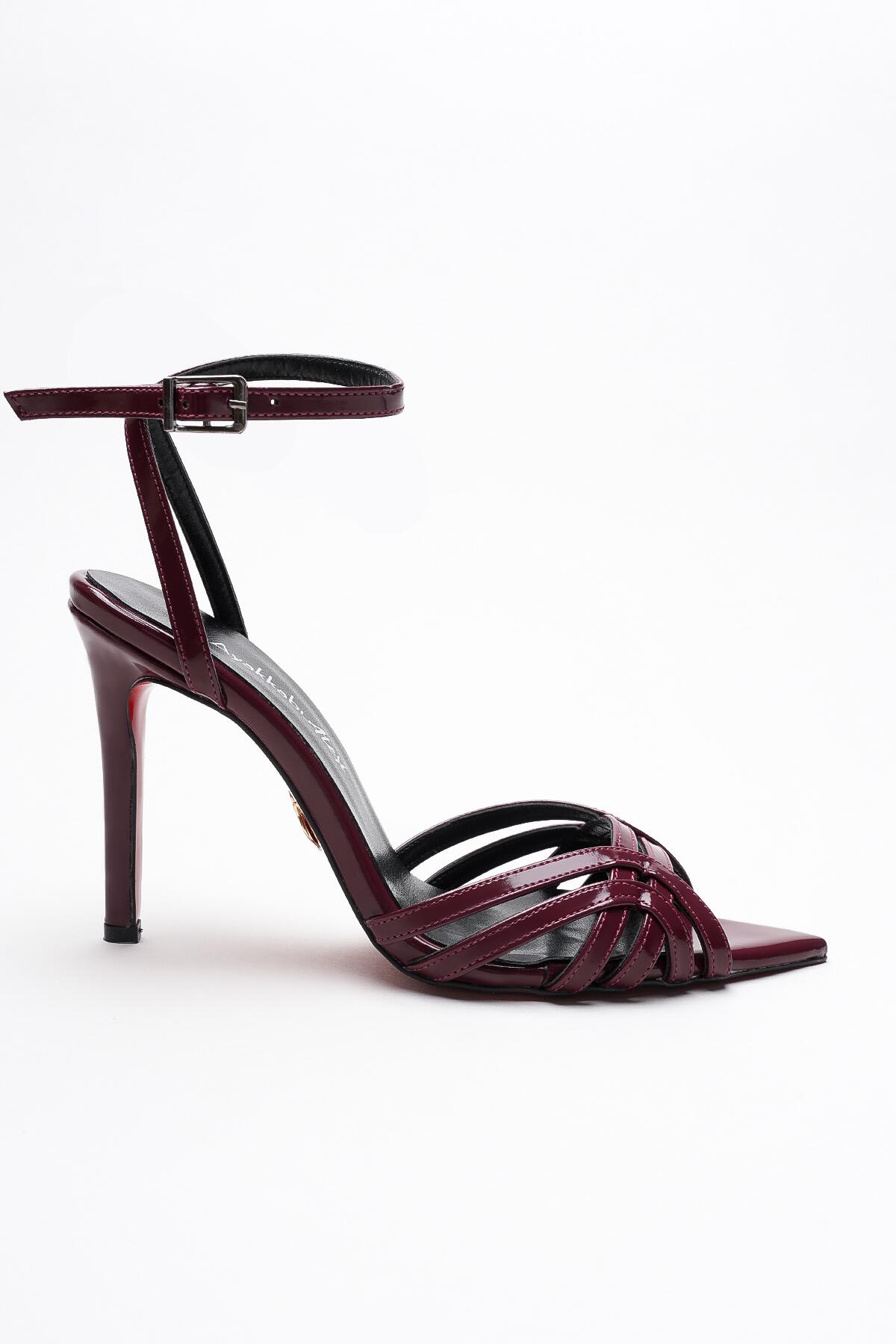 Kadın Açık Kafes Burun Tasarım İnce Topuklu Ayakkabı Prona Bordo