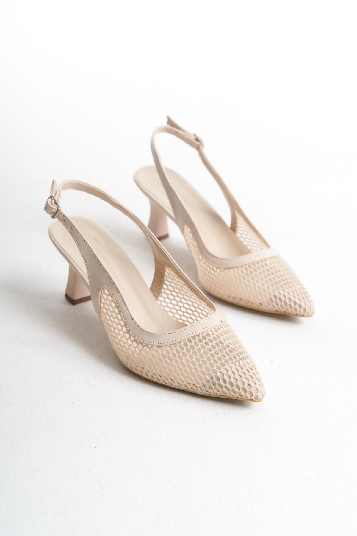 Kadın Arka Açık Fileli Kısa Topuklu Ayakkabı Siena Bej
