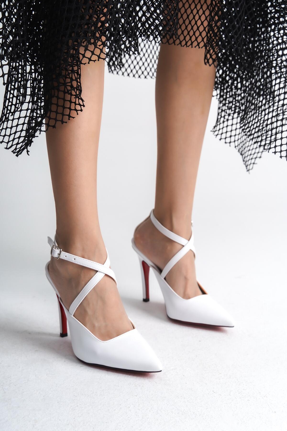Kadın Arka Açık Tasarım İnce Topuklu Ayakkabı Rileyya Beyaz Rugan