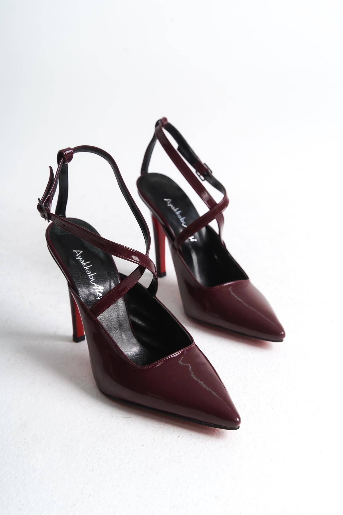 Kadın Arka Açık Tasarım İnce Topuklu Ayakkabı Rileyya Bordo