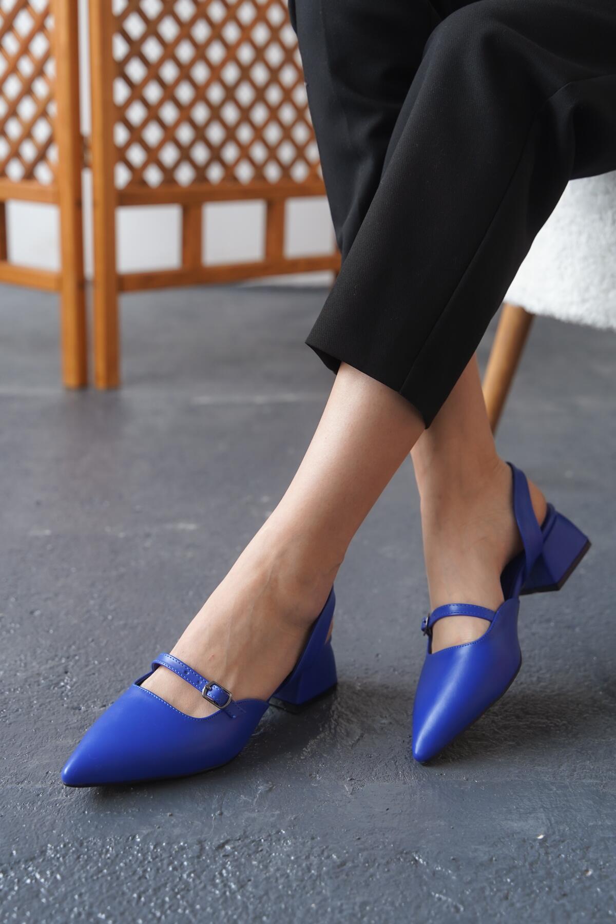 Kadın Arka Açık Tek Baret Kısa Topuklu Ayakkabı Alfa Sax Cilt