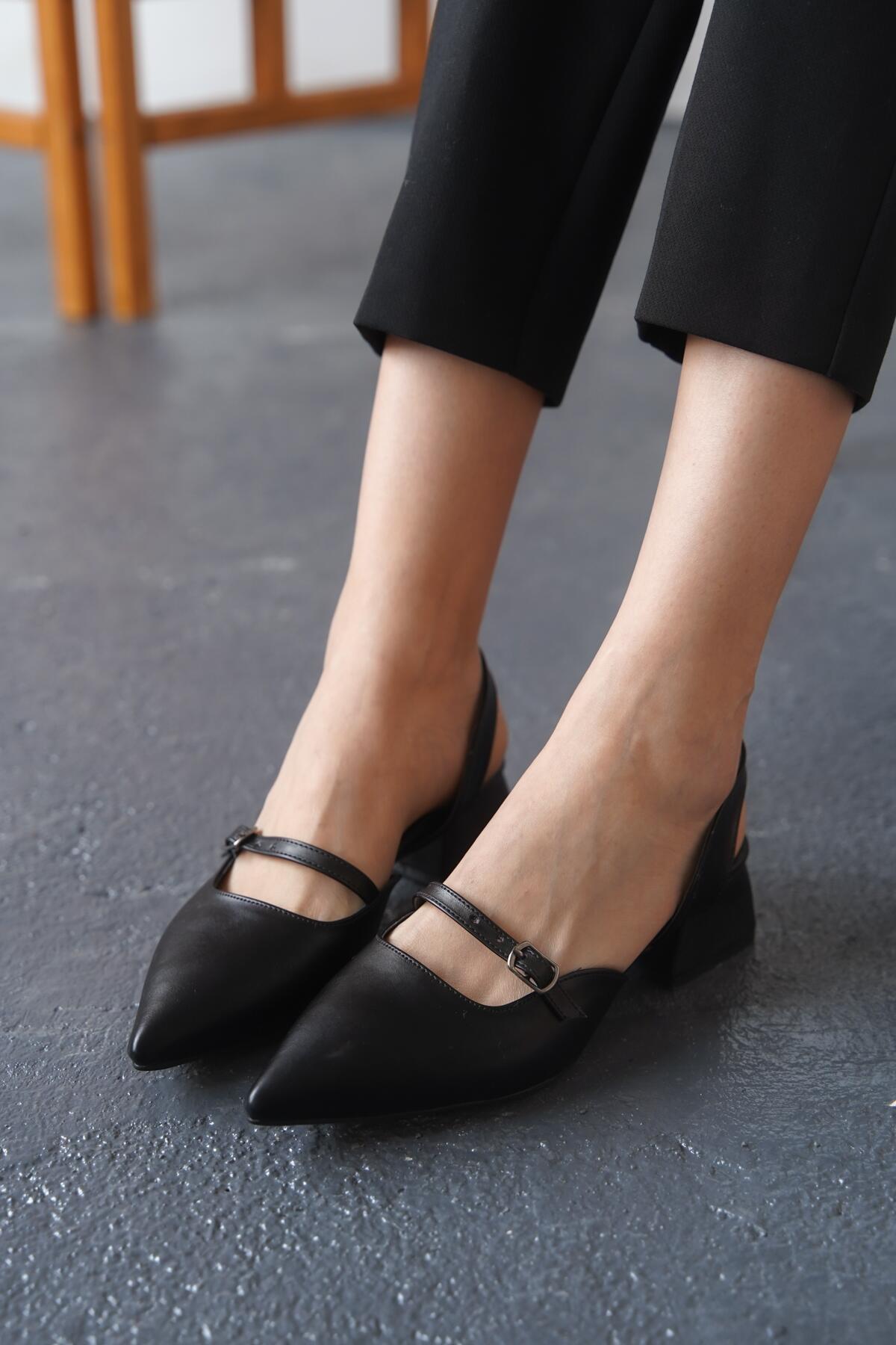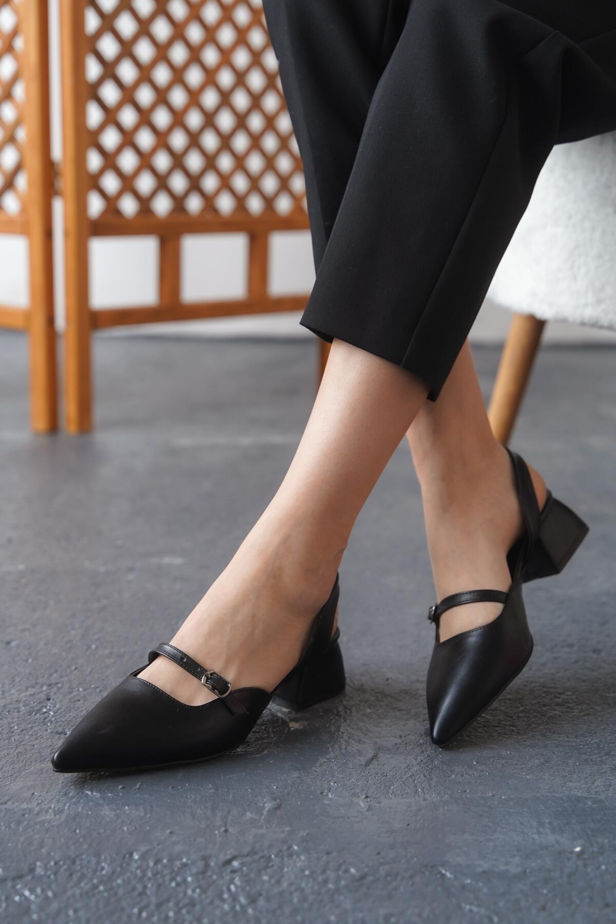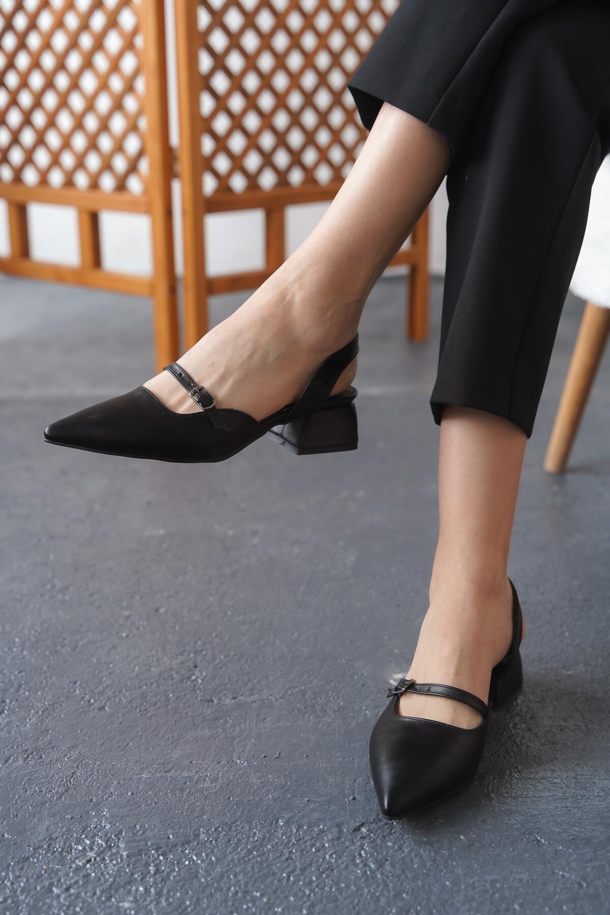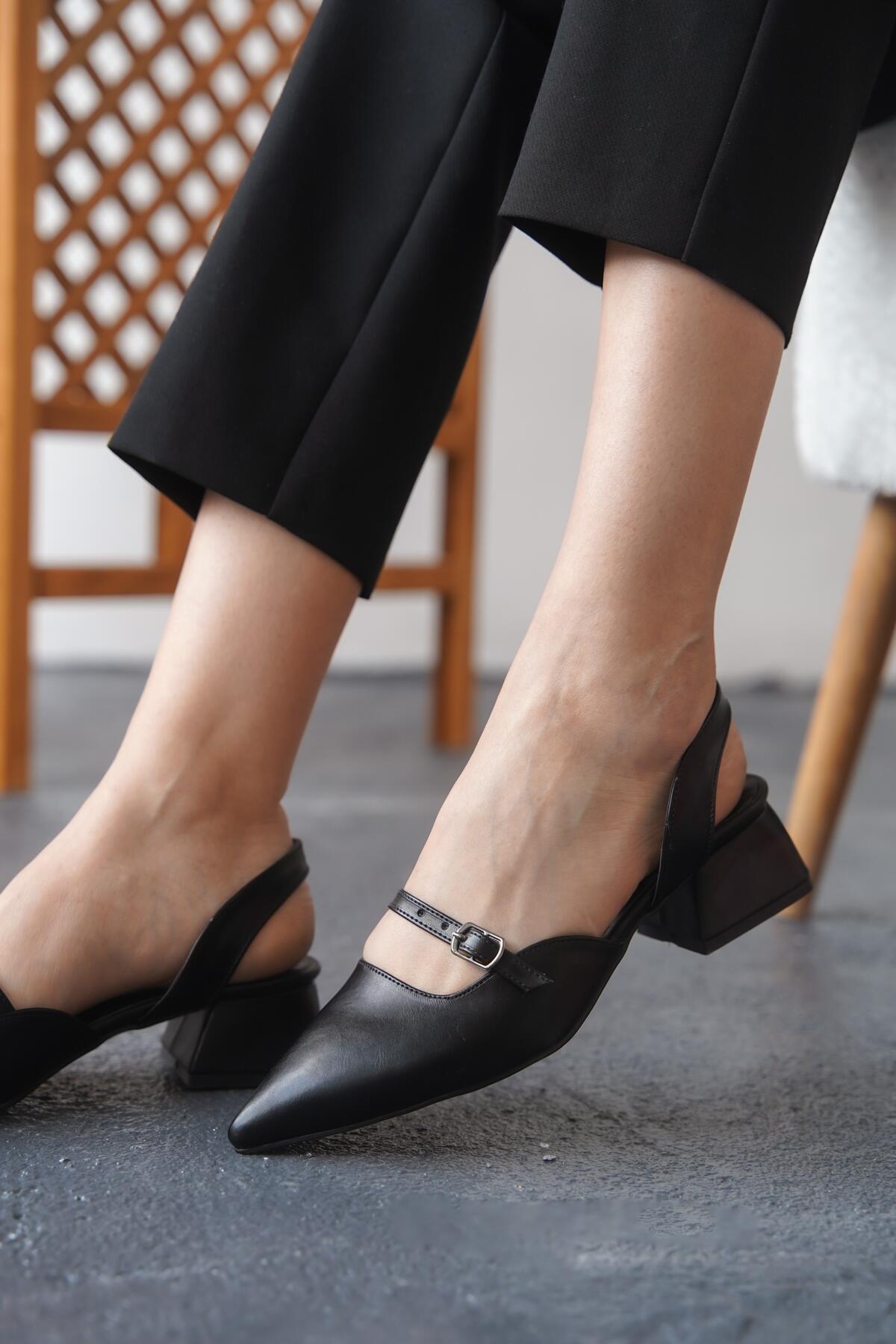 Kadın Arka Açık Tek Baret Kısa Topuklu Ayakkabı Alfa Siyah Cilt