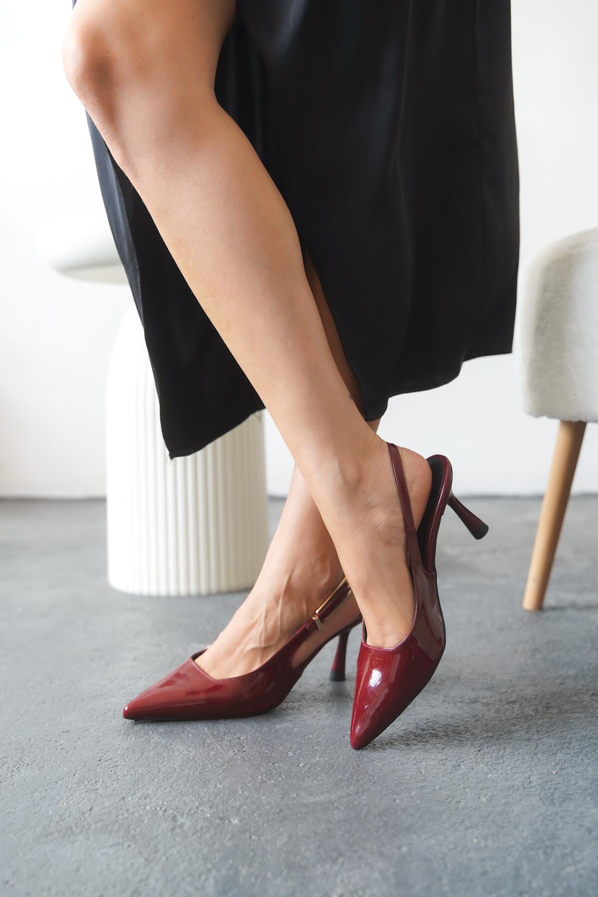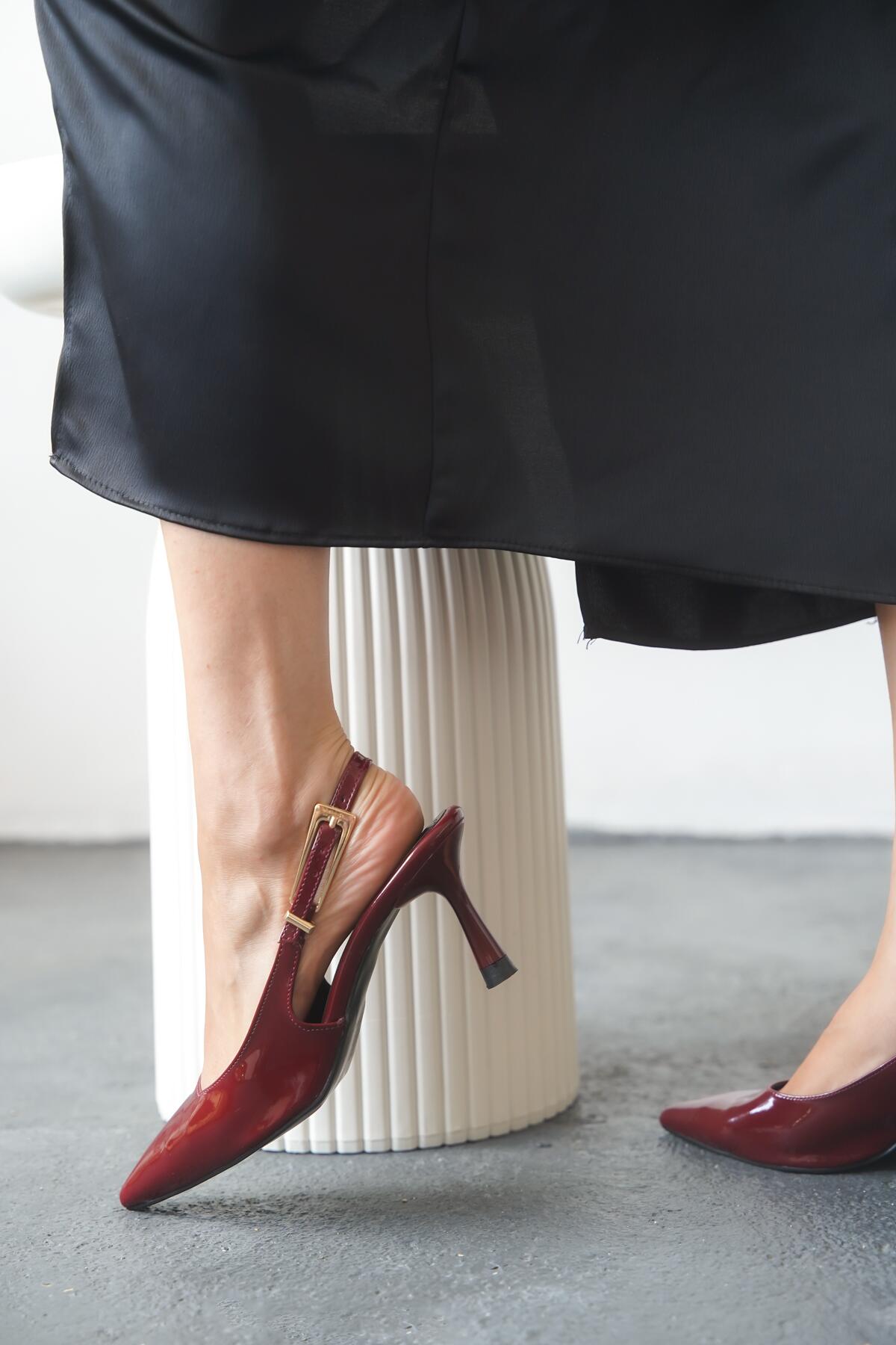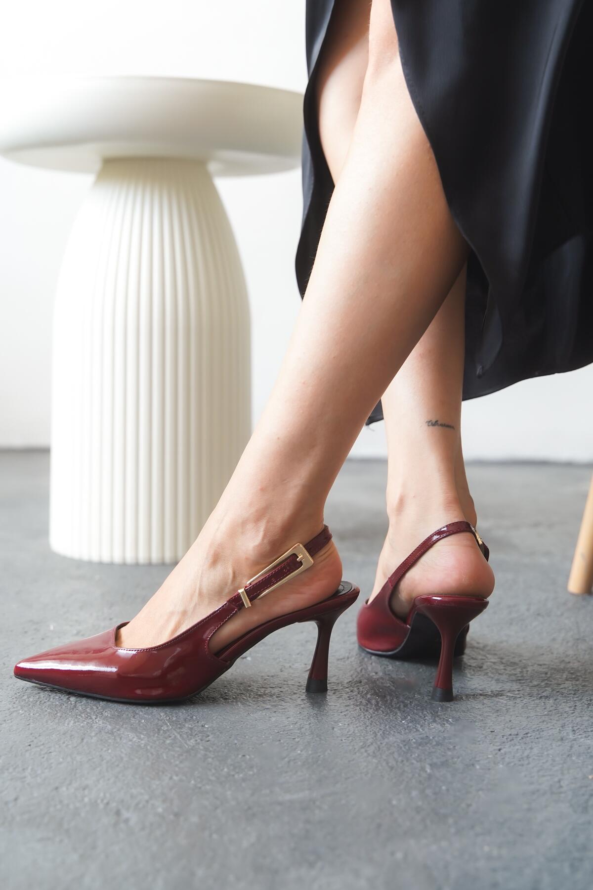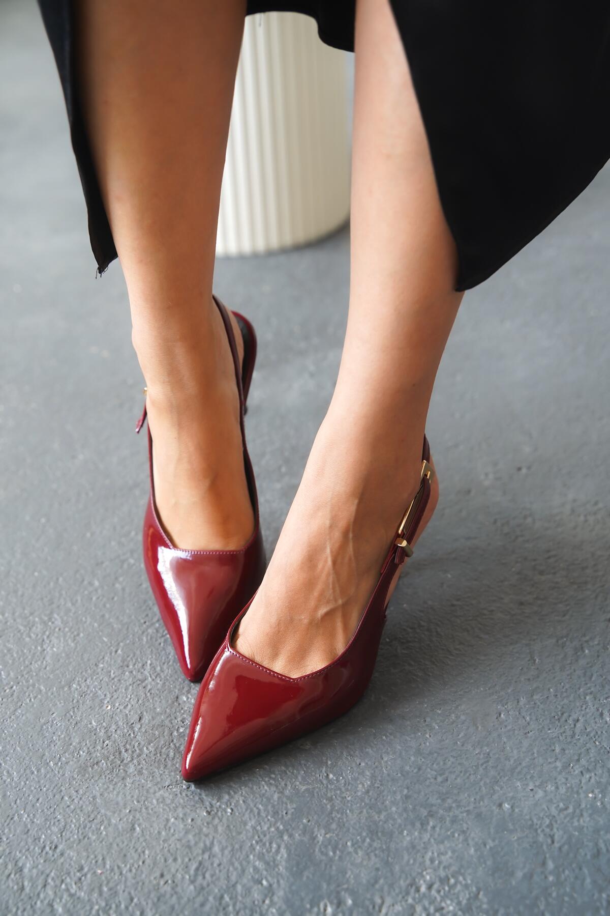 Kadın Arkası Açık Tasarım Tokalı Topuklu Ayakkabı Claria Bordo