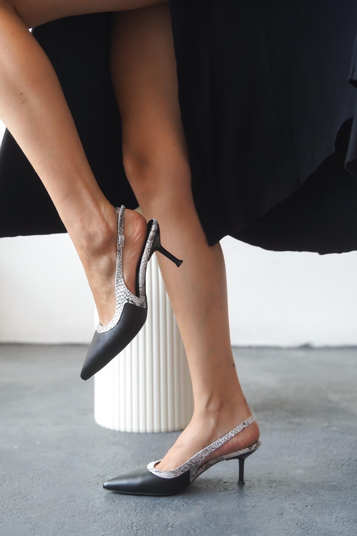 Kadın Arkası Açık Tasarım Tokalı Topuklu Ayakkabı Claria